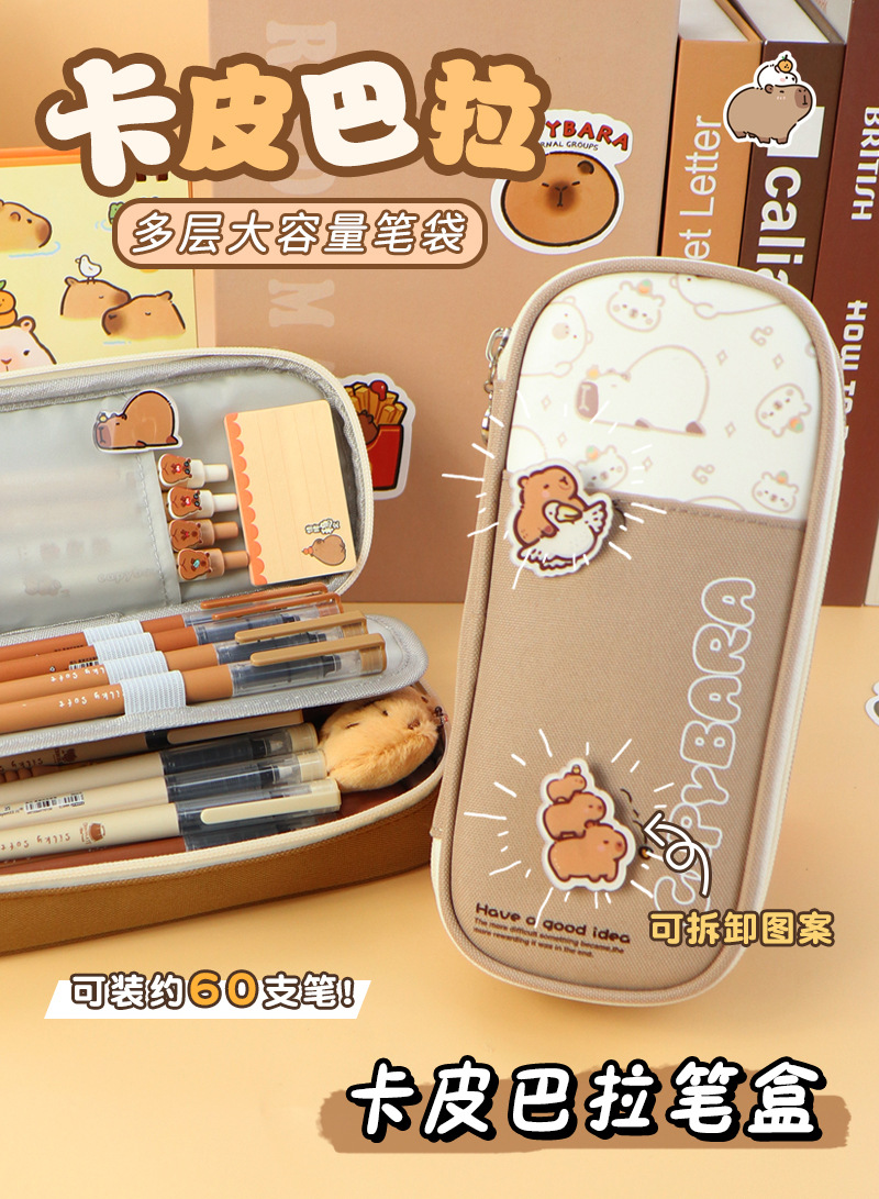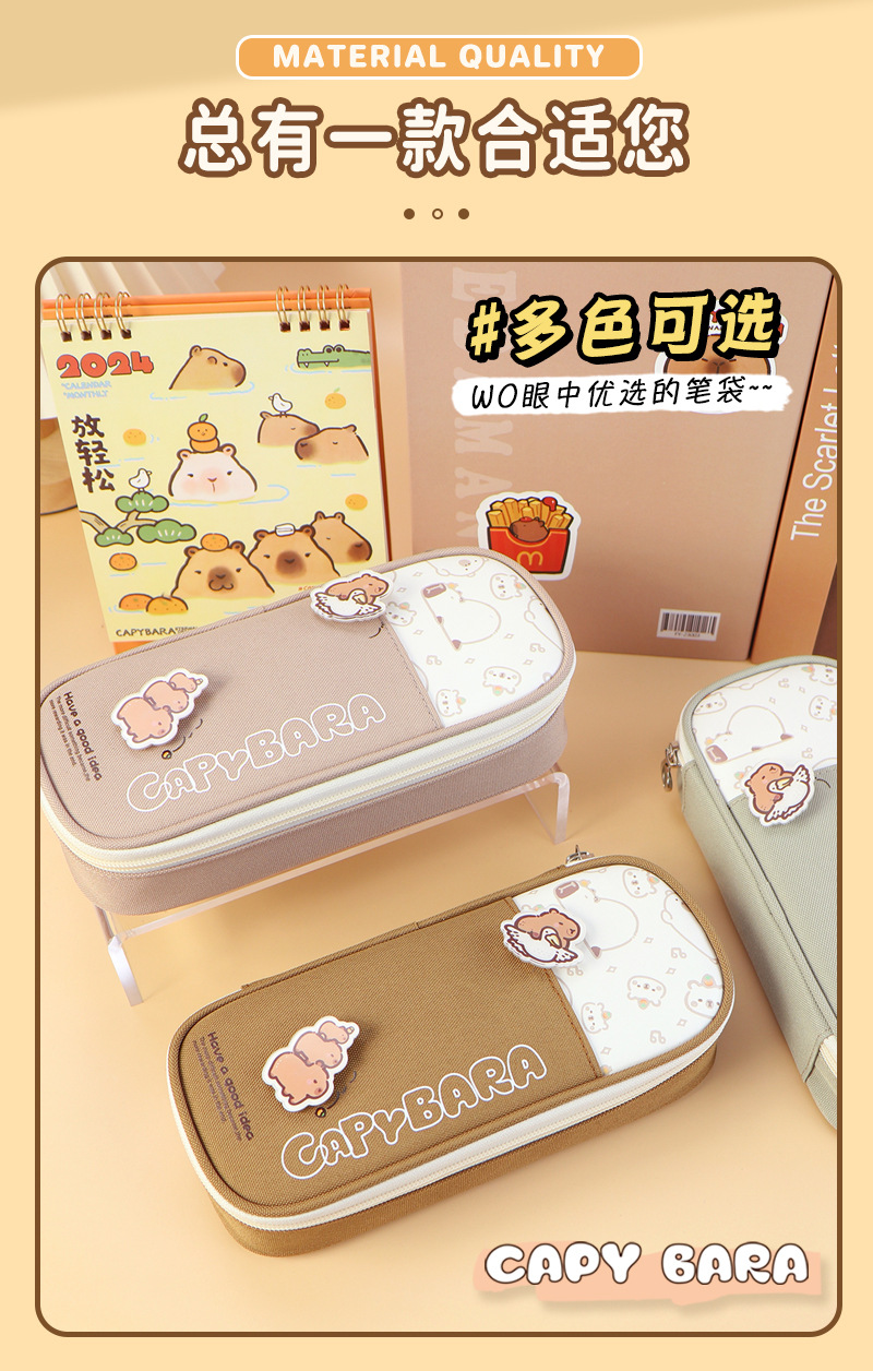 新款卡皮巴拉大容量笔袋高颜值女小学生文具盒初中女孩可爱铅笔盒