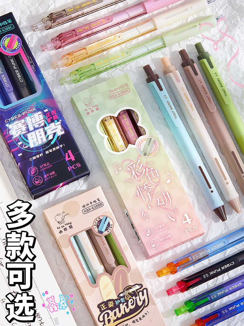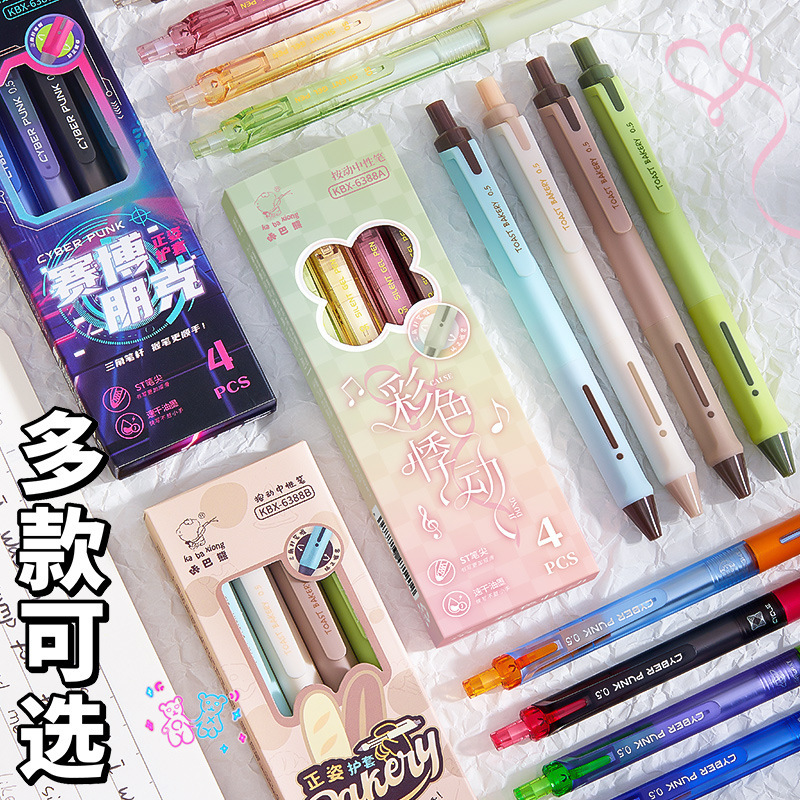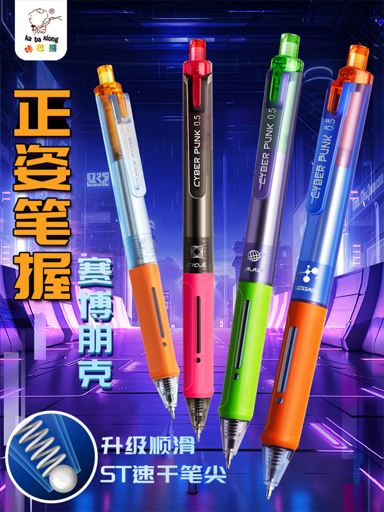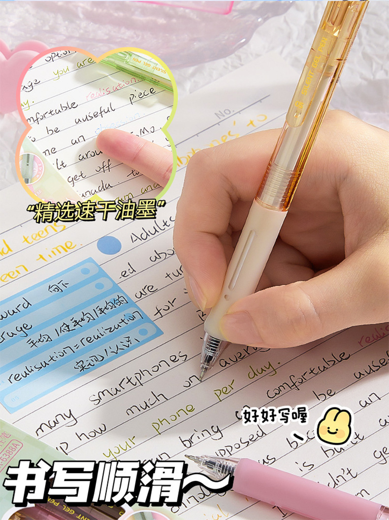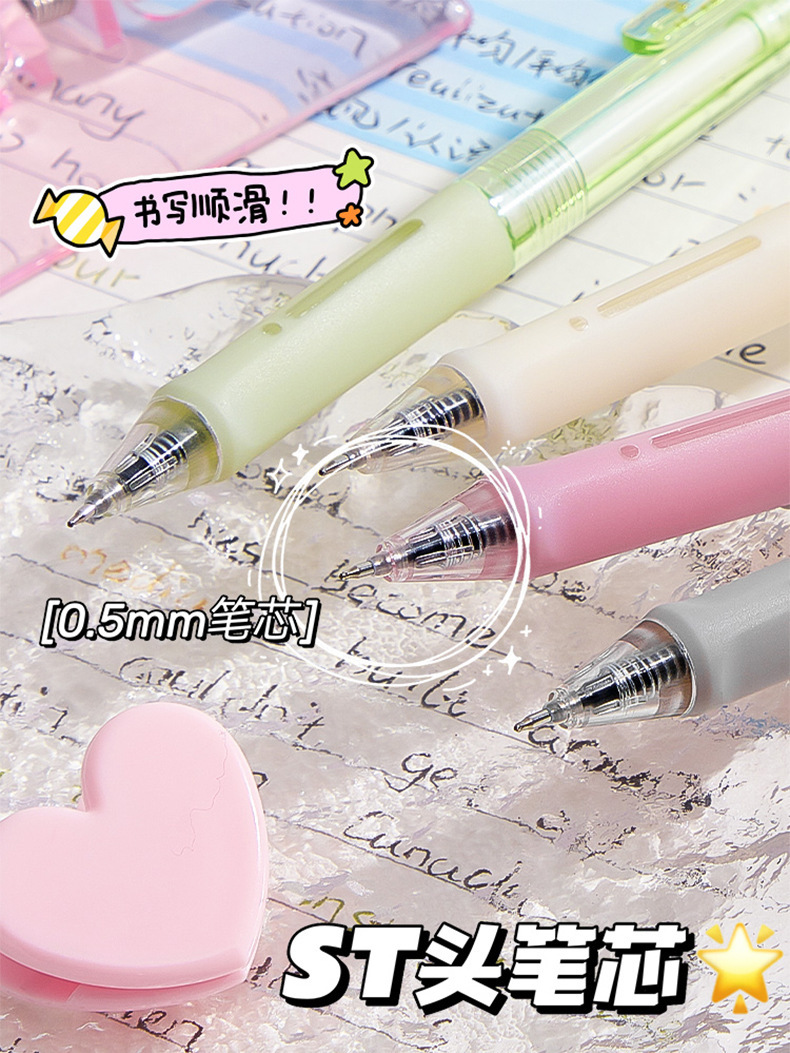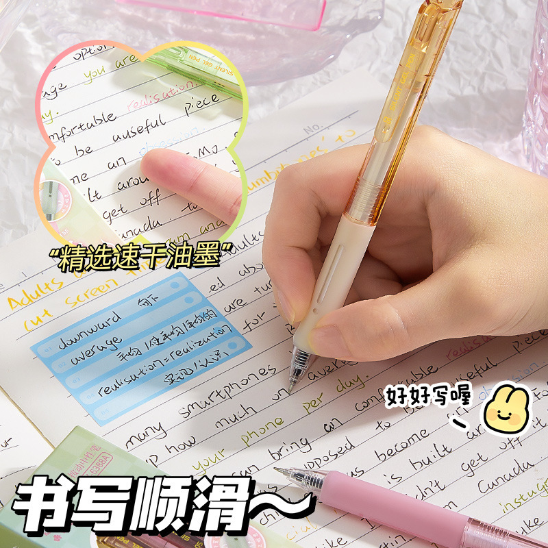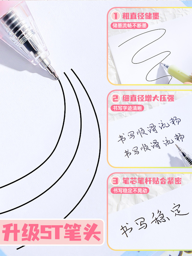 高颜值学生考试刷题专用黑色CS精密笔尖书写速干不断墨按动中性笔