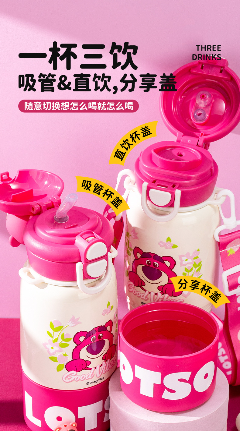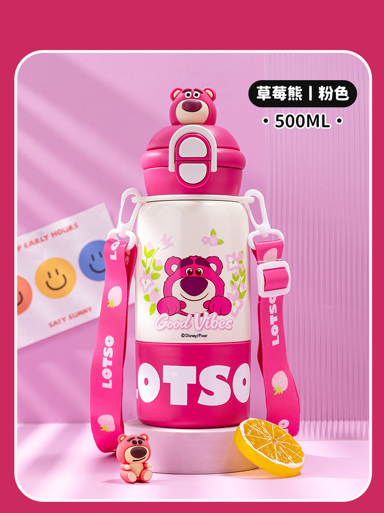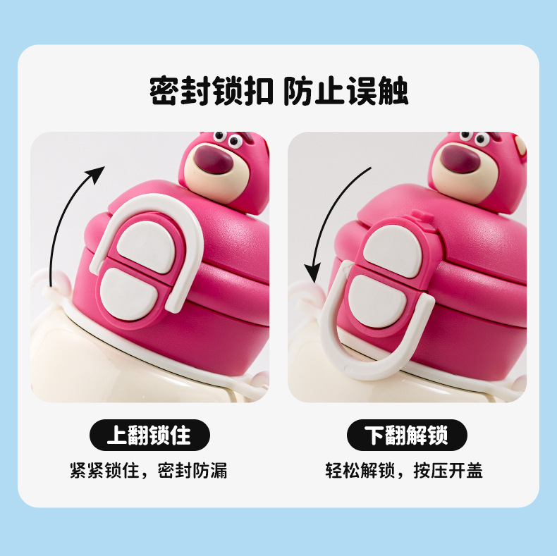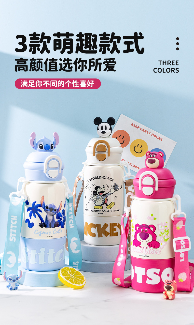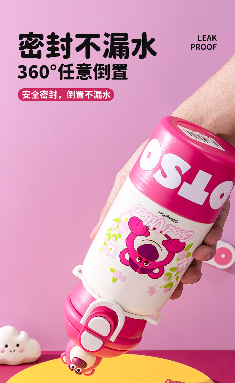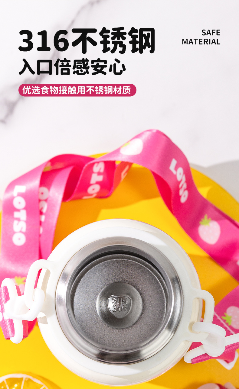 公仔吸管水杯弹跳盖儿童壶带杯套萌宠图案学生316不锈钢保温杯批
