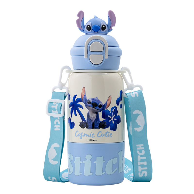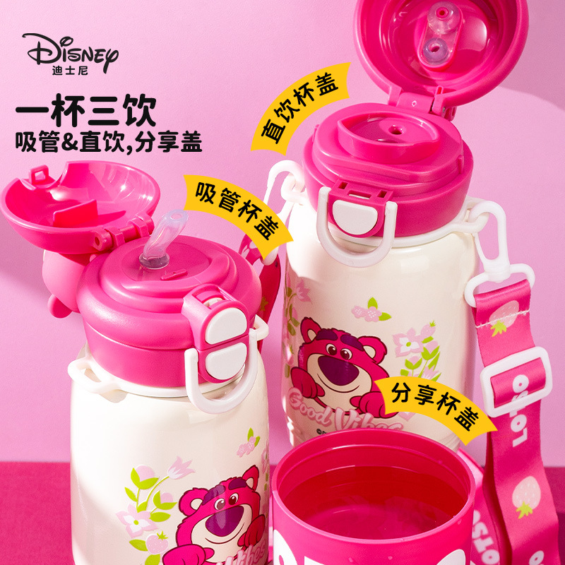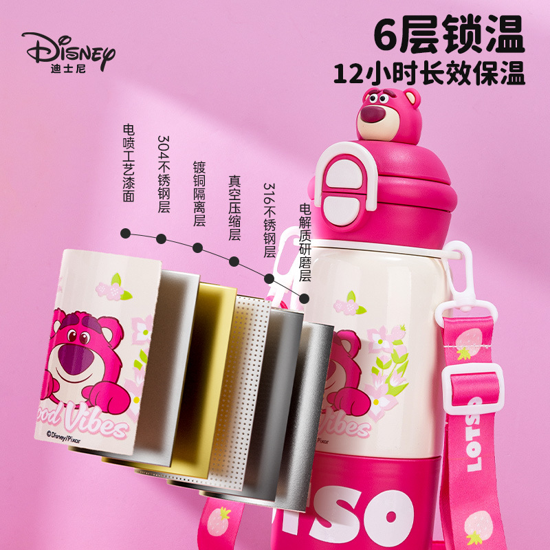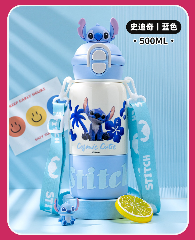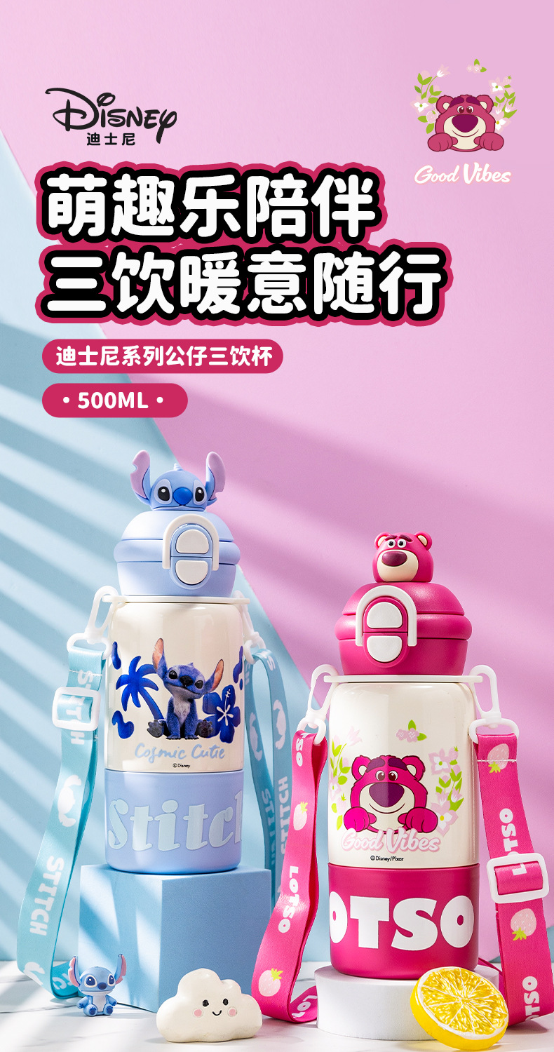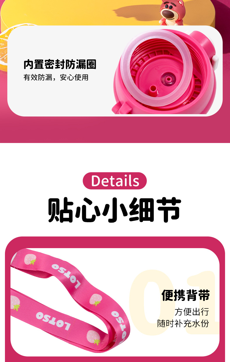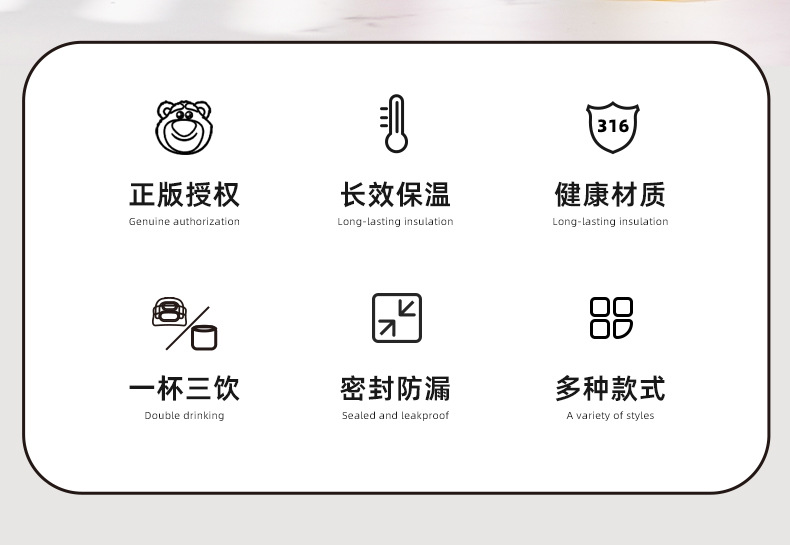公仔吸管水杯弹跳盖儿童壶带杯套萌宠图案学生316不锈钢保温杯批
