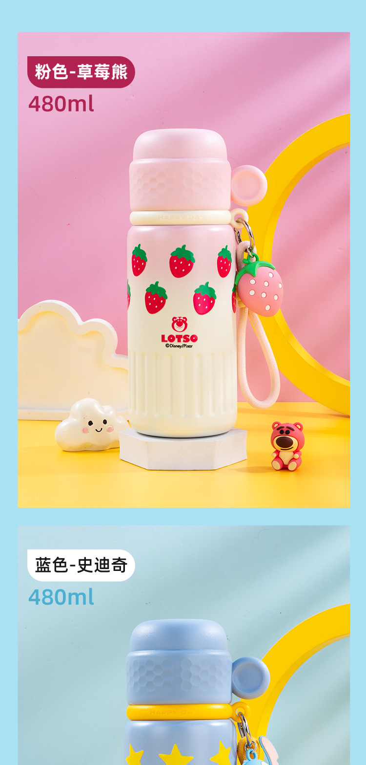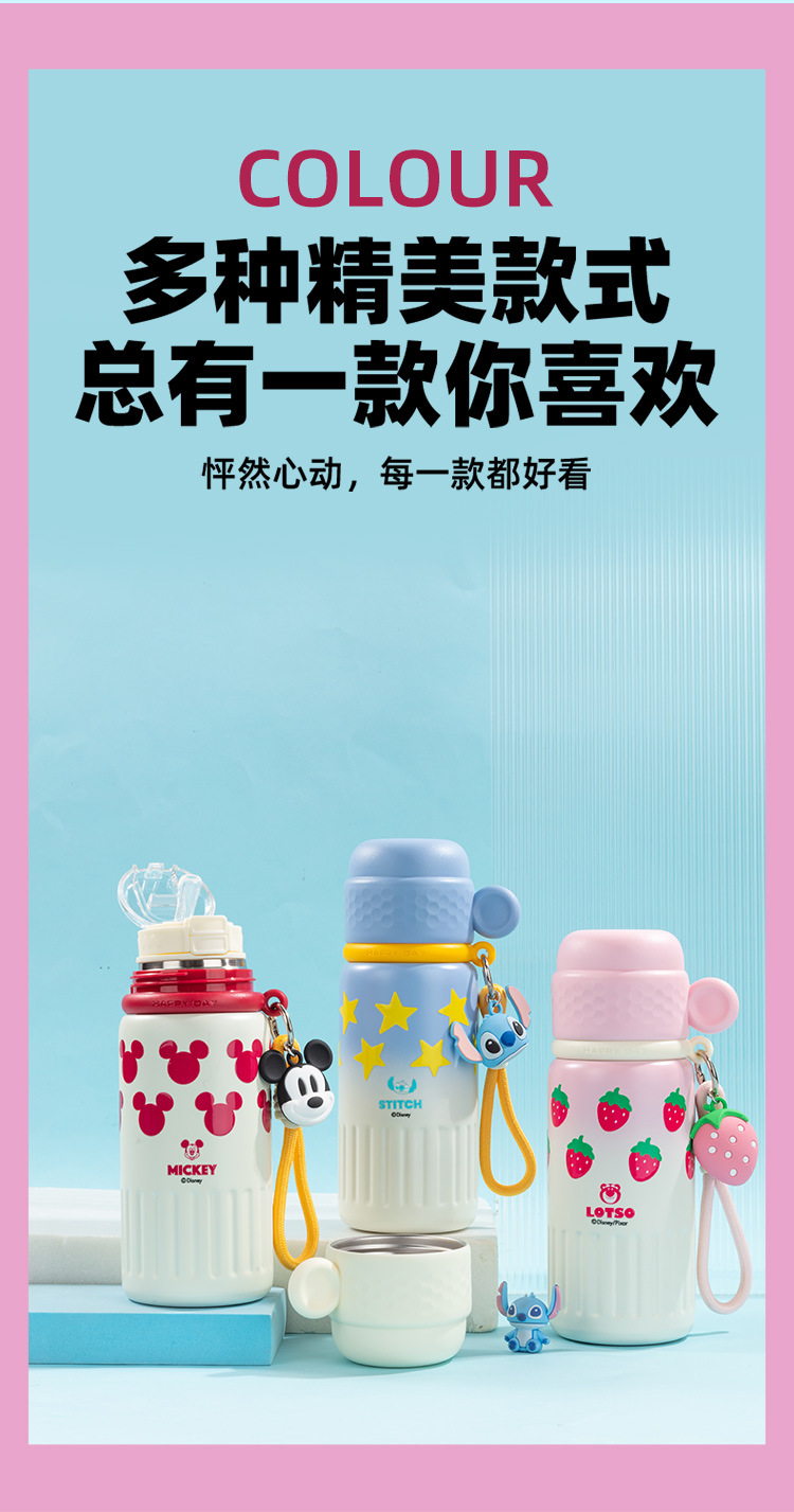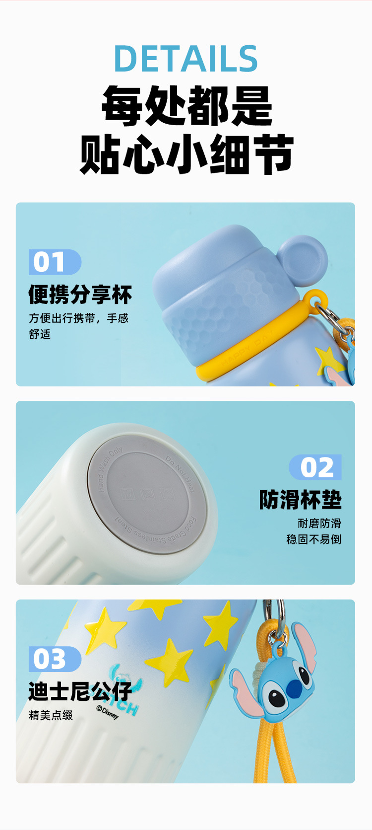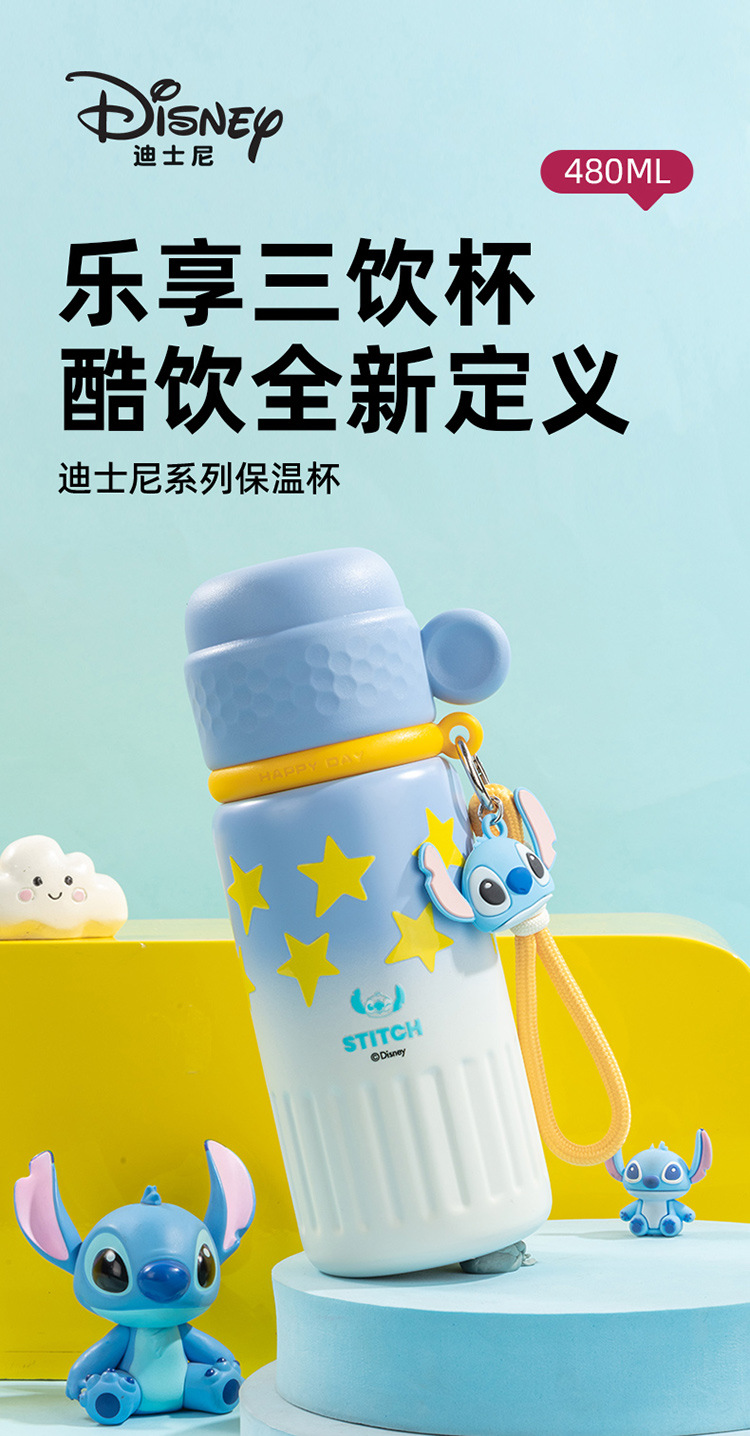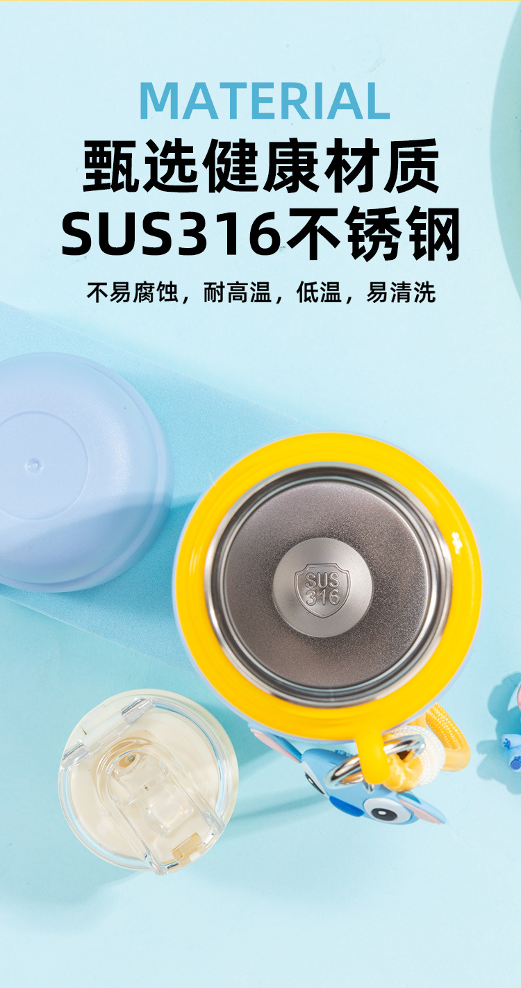 史迪仔可爱保温杯2025新款高颜值大容量吸管水杯三饮儿童保温杯批