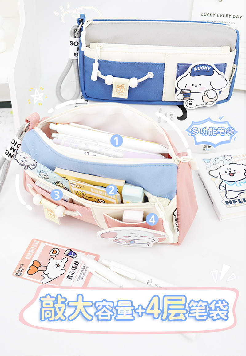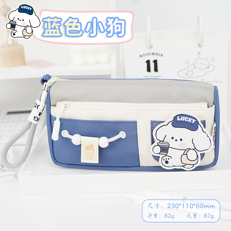 萌趣可爱小狗大容量笔袋双层文具铅笔盒小学生高颜值文具盒设计感