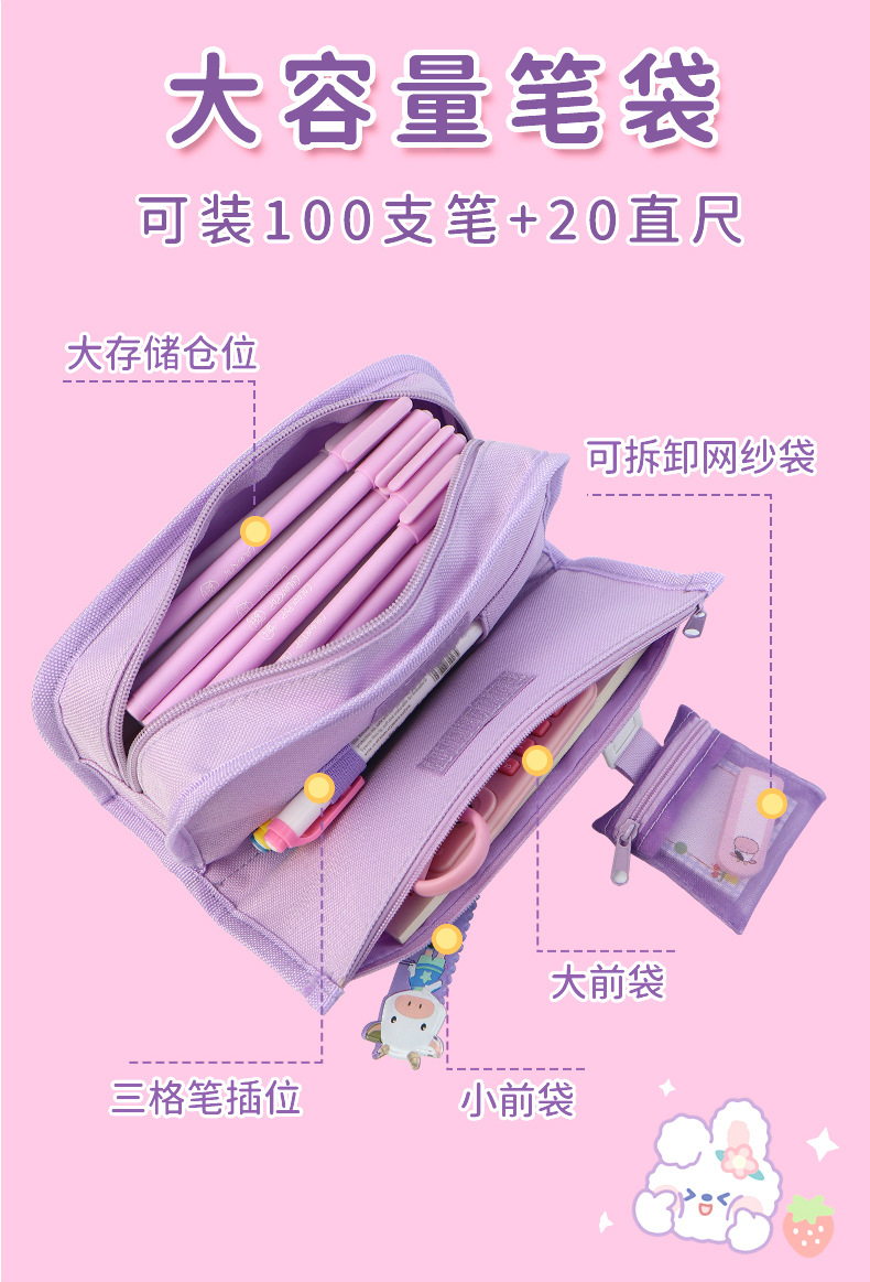 定制笔袋ins风小众中小学生大容量女孩款卡通文具袋高颜值铅笔袋