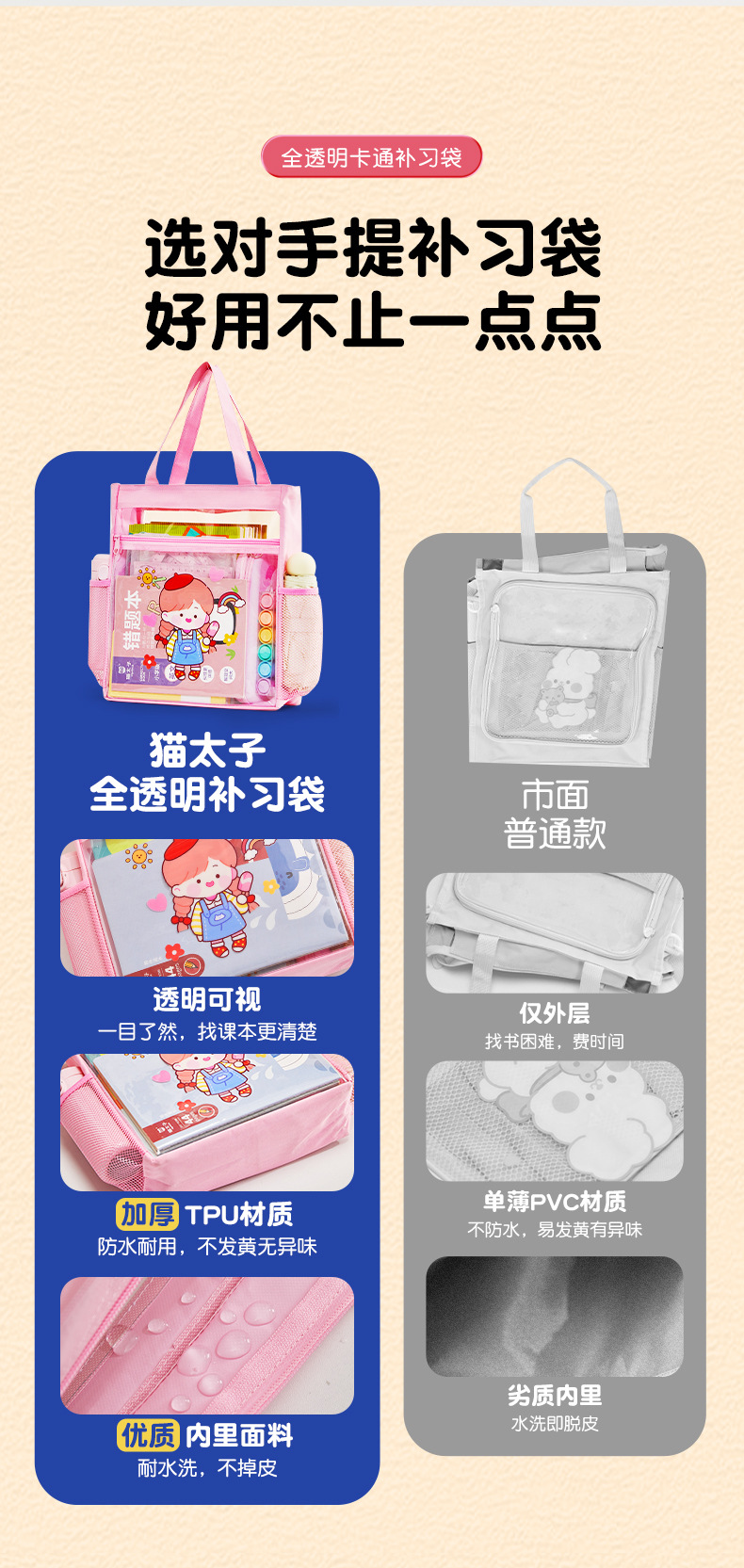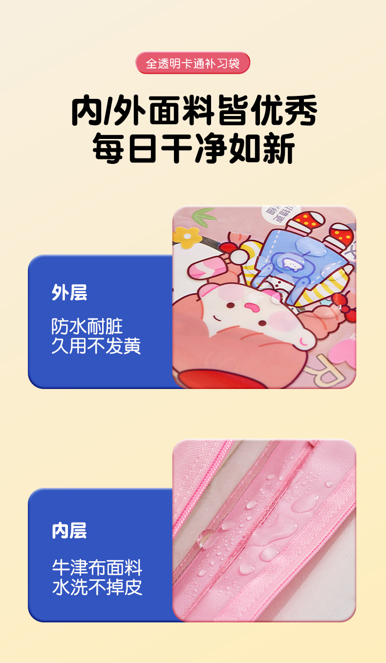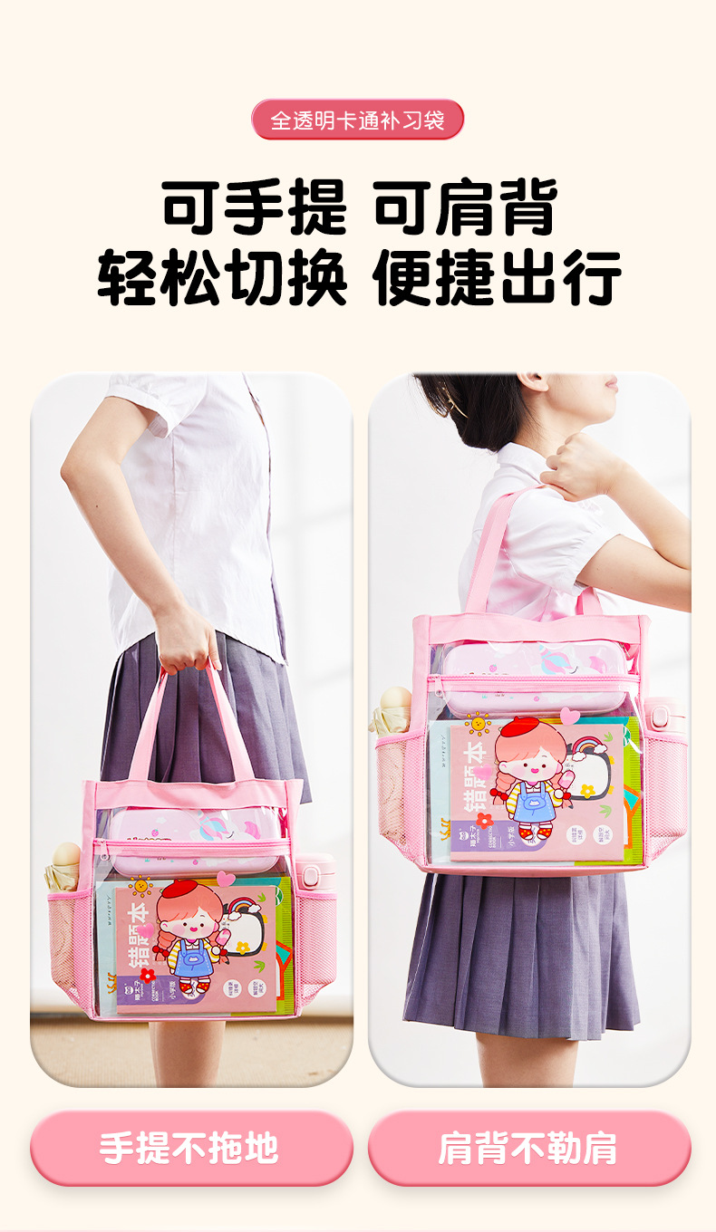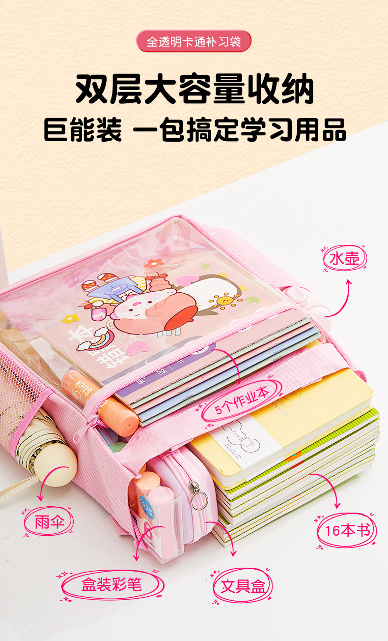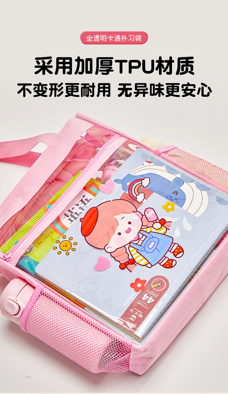 可爱卡通美术袋多层加厚补课袋高颜值拎书袋透明大容量儿童补习袋