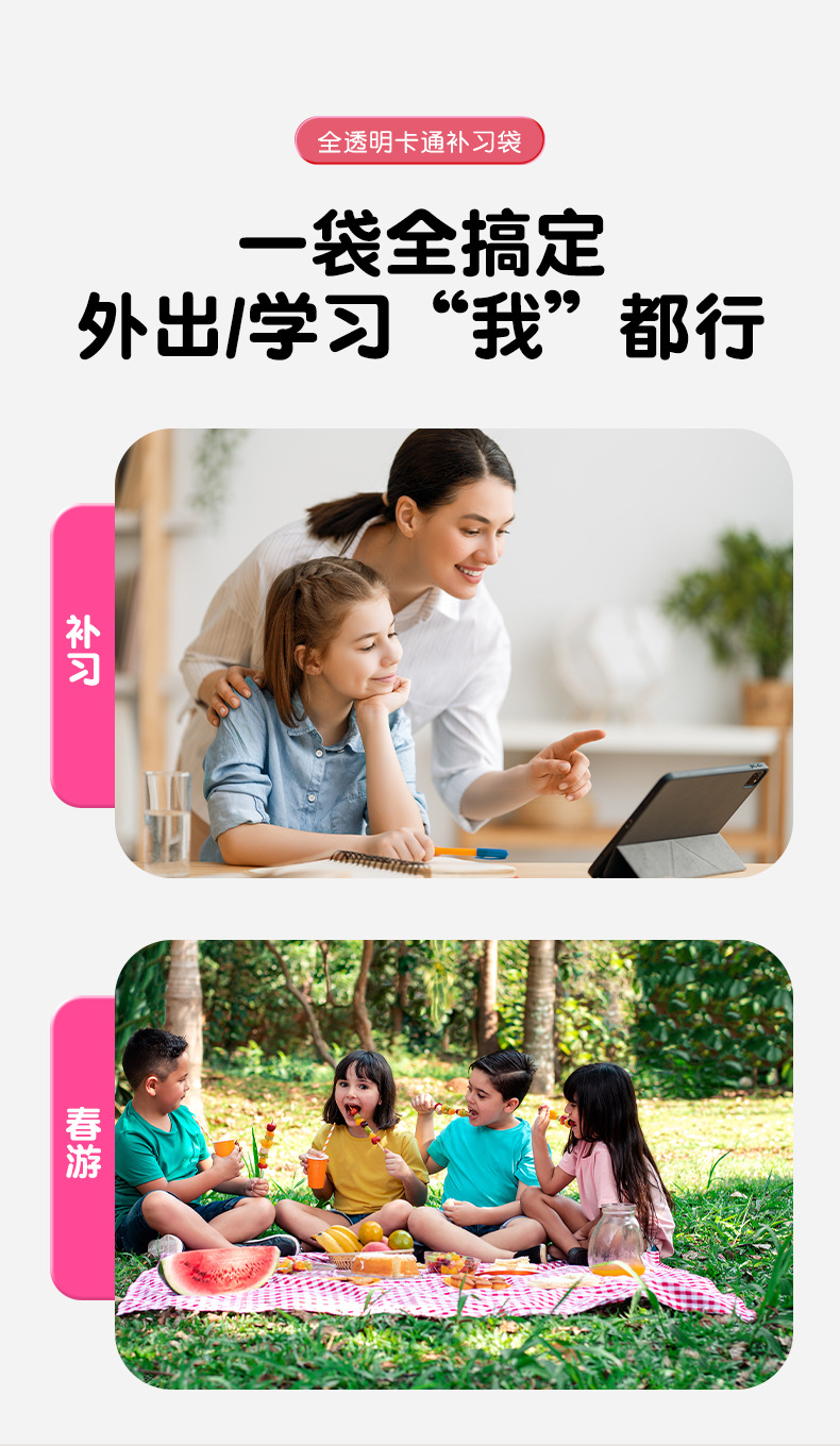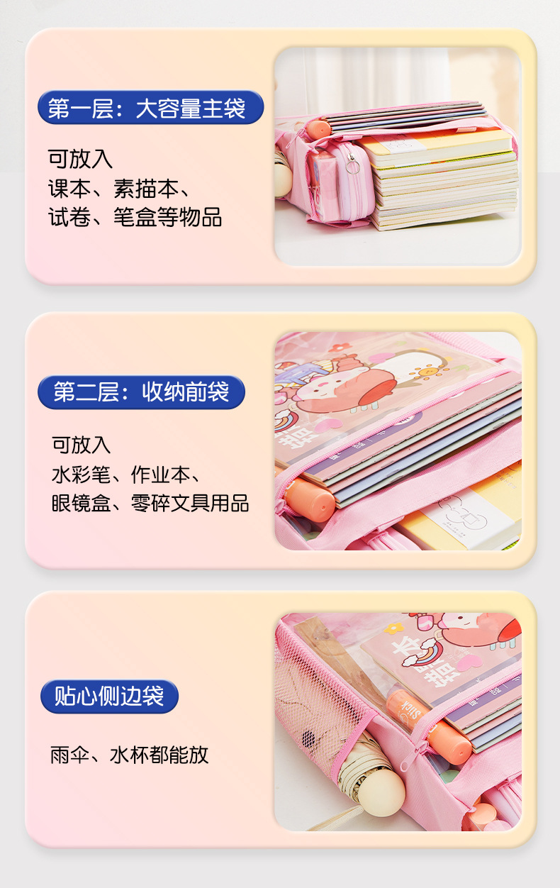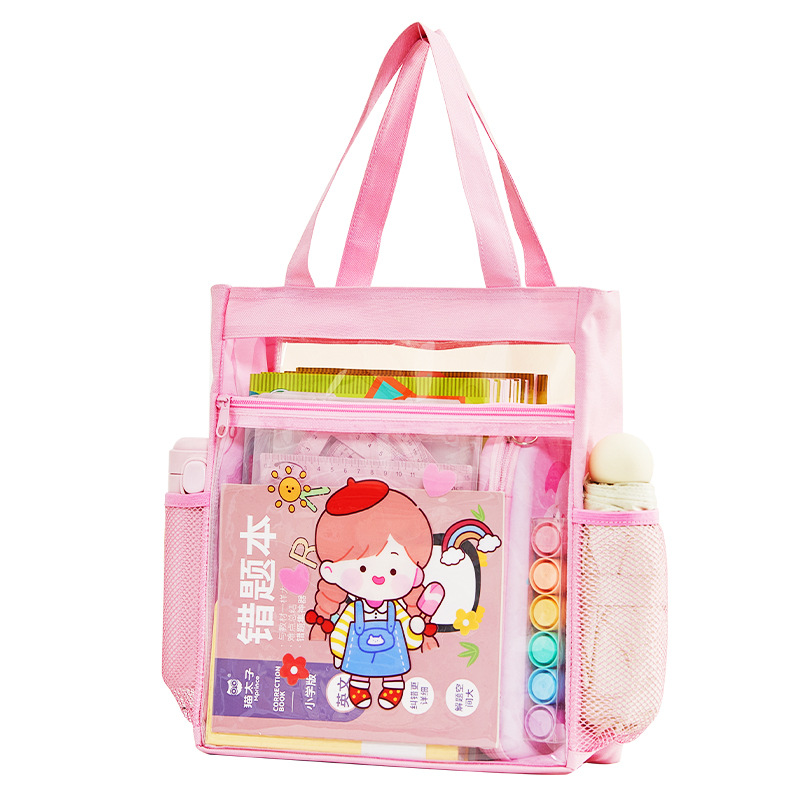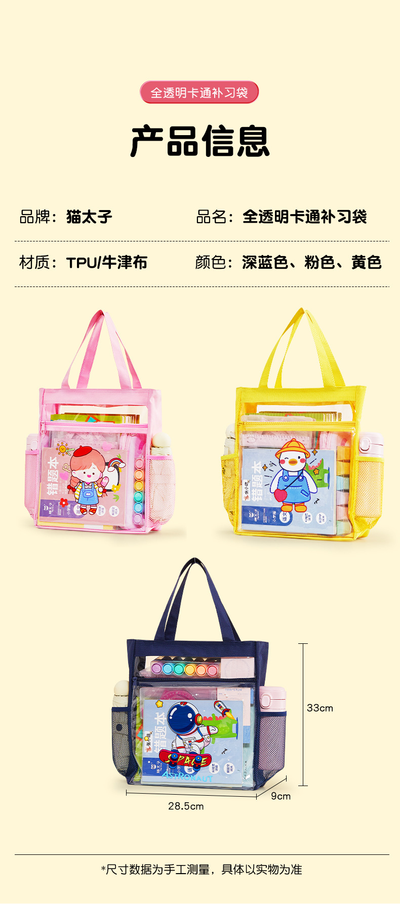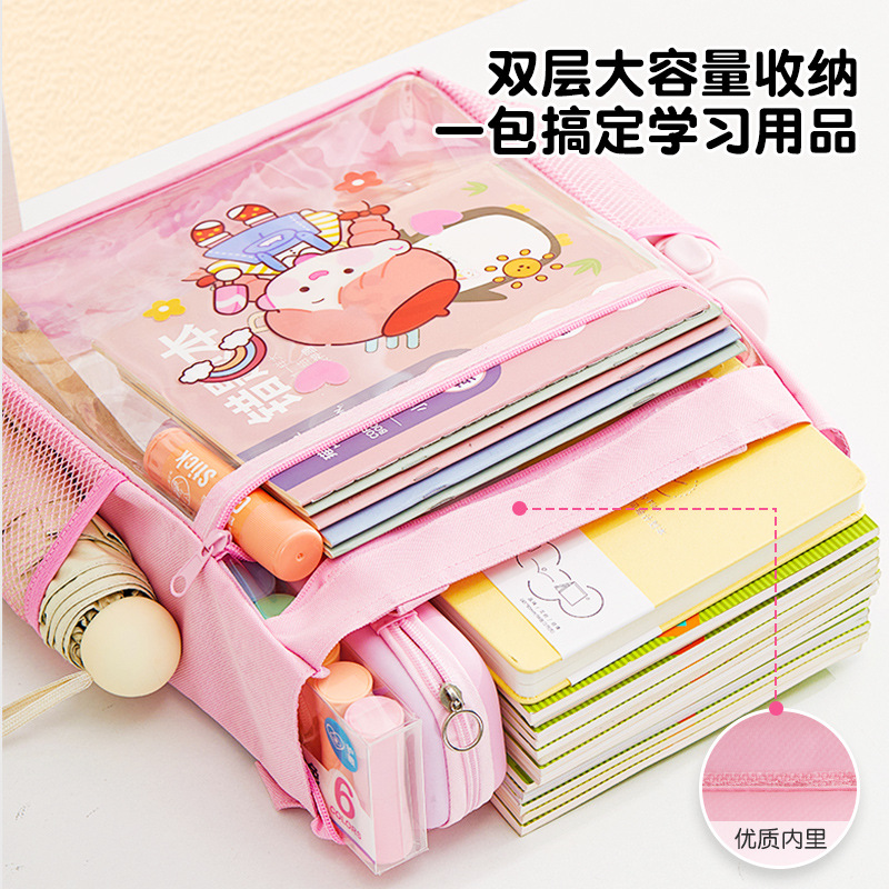 可爱卡通美术袋多层加厚补课袋高颜值拎书袋透明大容量儿童补习袋