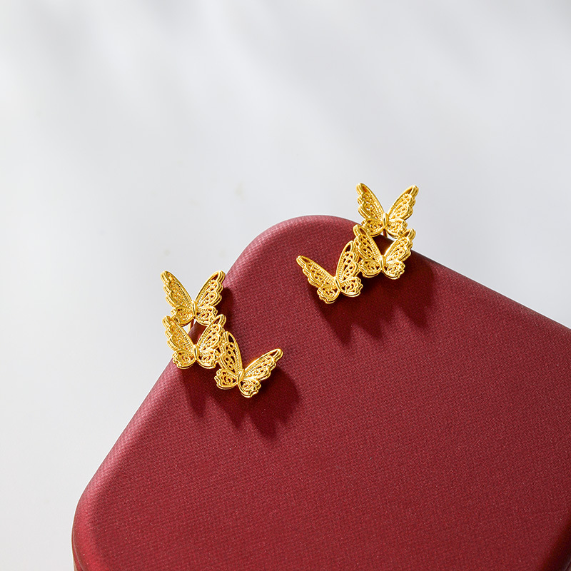 旭平铜合金电镀24k金色 简约轻奢高级感蝴蝶耳环吊坠时尚气质饰品