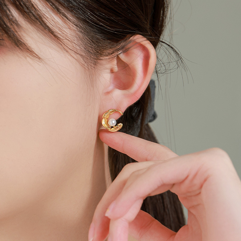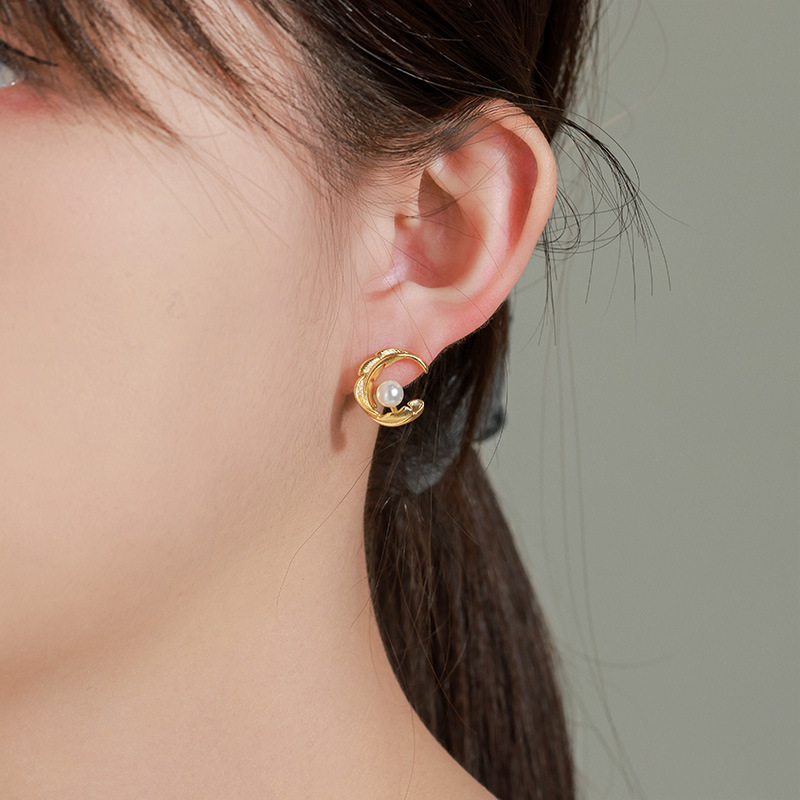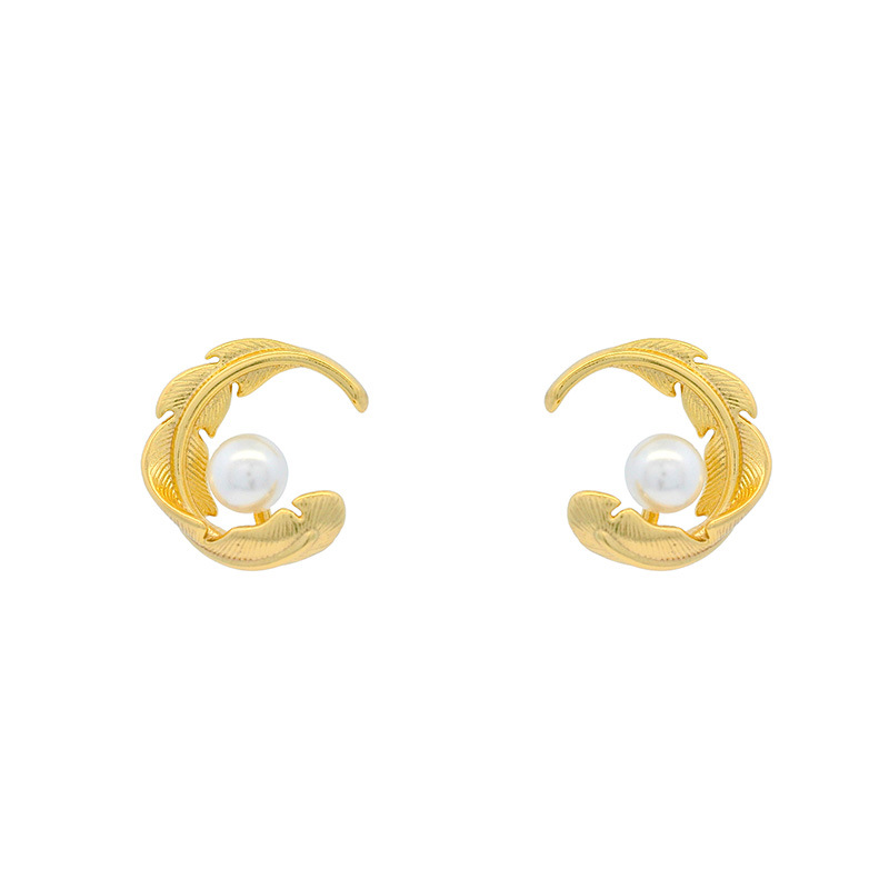 旭平新款轻奢高级感微镶仿珍珠羽毛耳钉小众气质高级感耳饰批发女