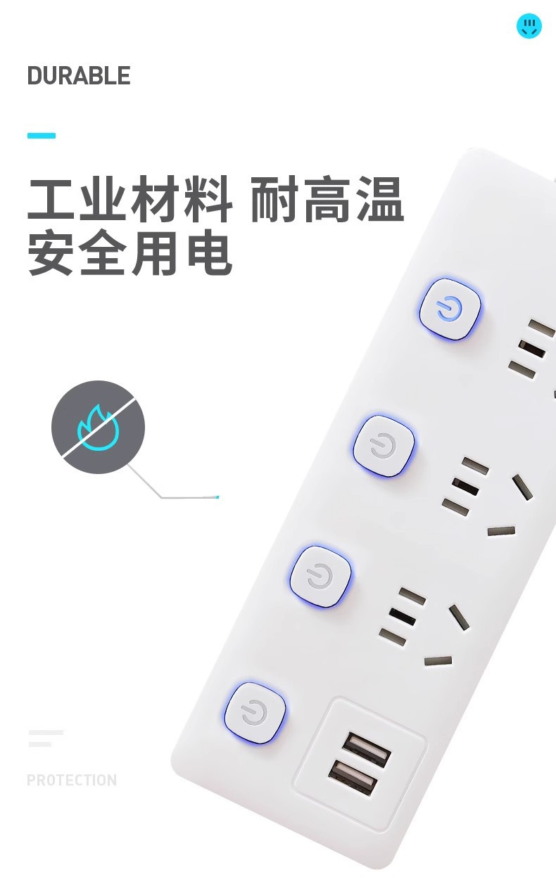 小米同款插座多功能家用插排多孔接线板带USB分控排插延长线批发