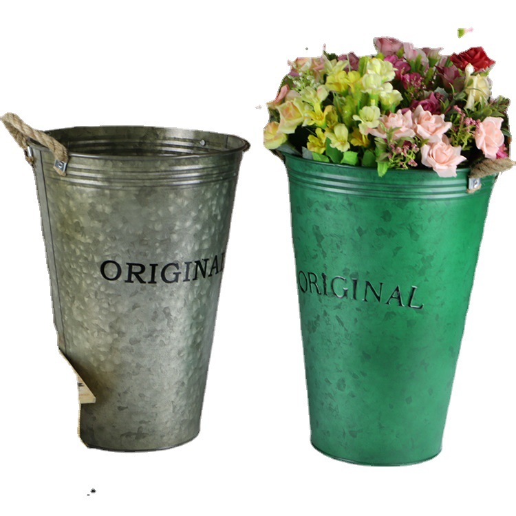 复古铁皮花盆 家居装饰花桶 酒店布景道具花桶 水培植物铁皮花桶