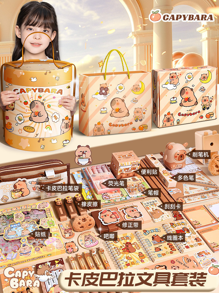 小学生开学儿童节文具套装库洛米卡皮巴拉生日礼物高颜值抱抱桶
