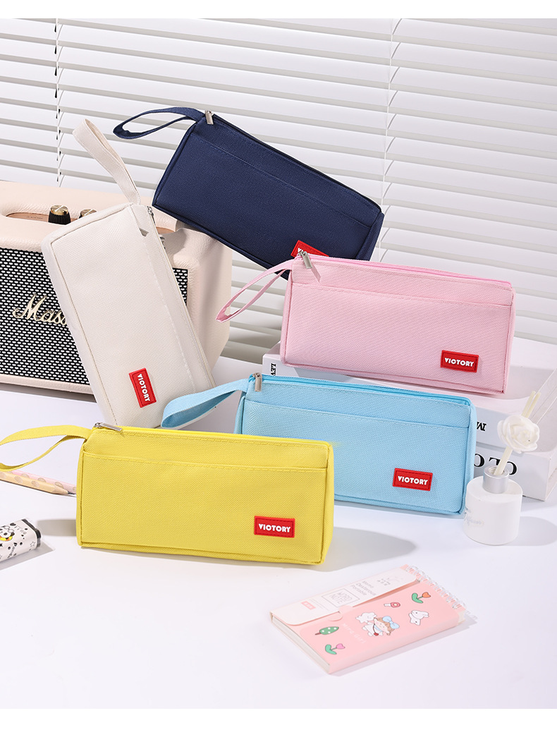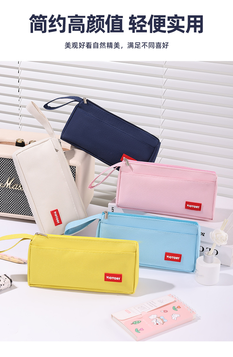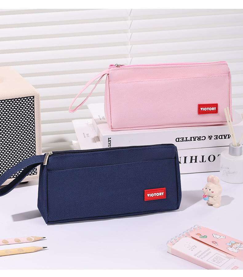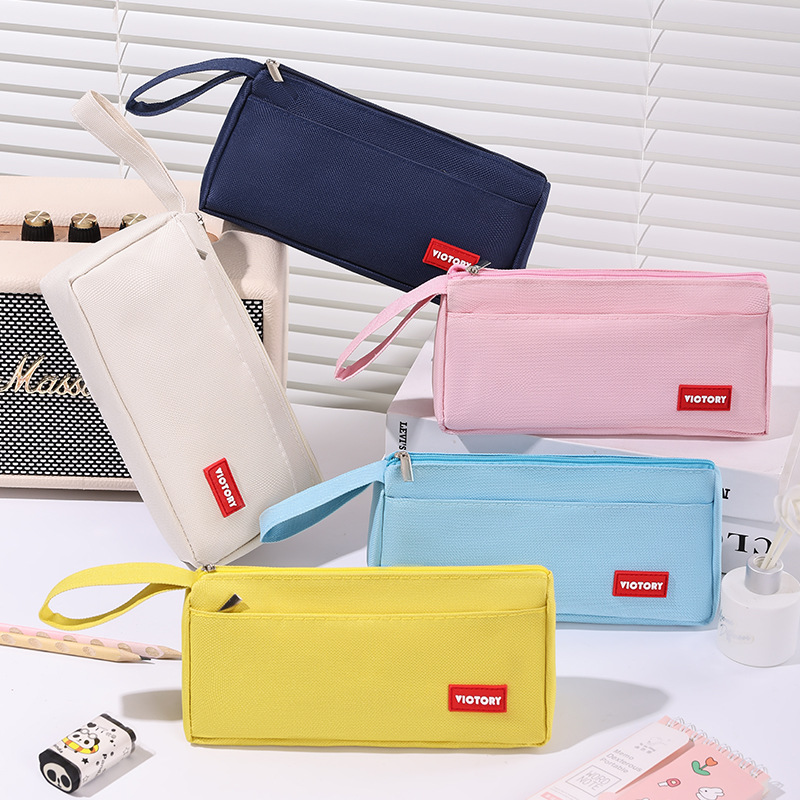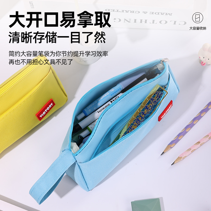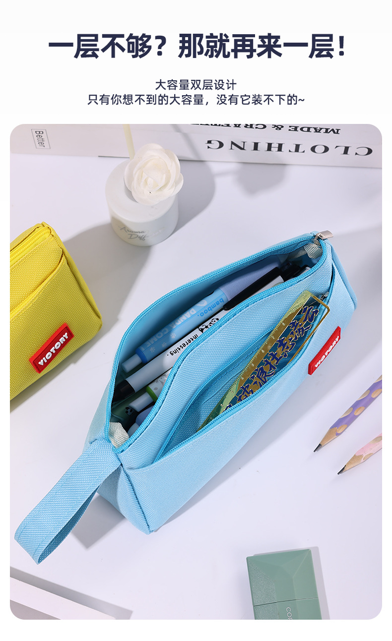 简约高颜值铅笔袋双层拉链牛津布便携文具盒学生通用大容量铅笔盒
