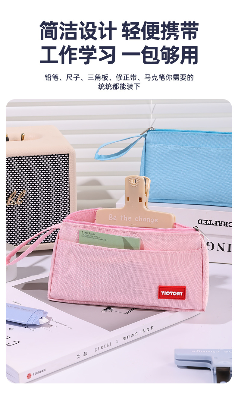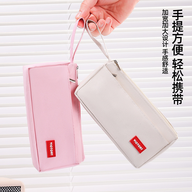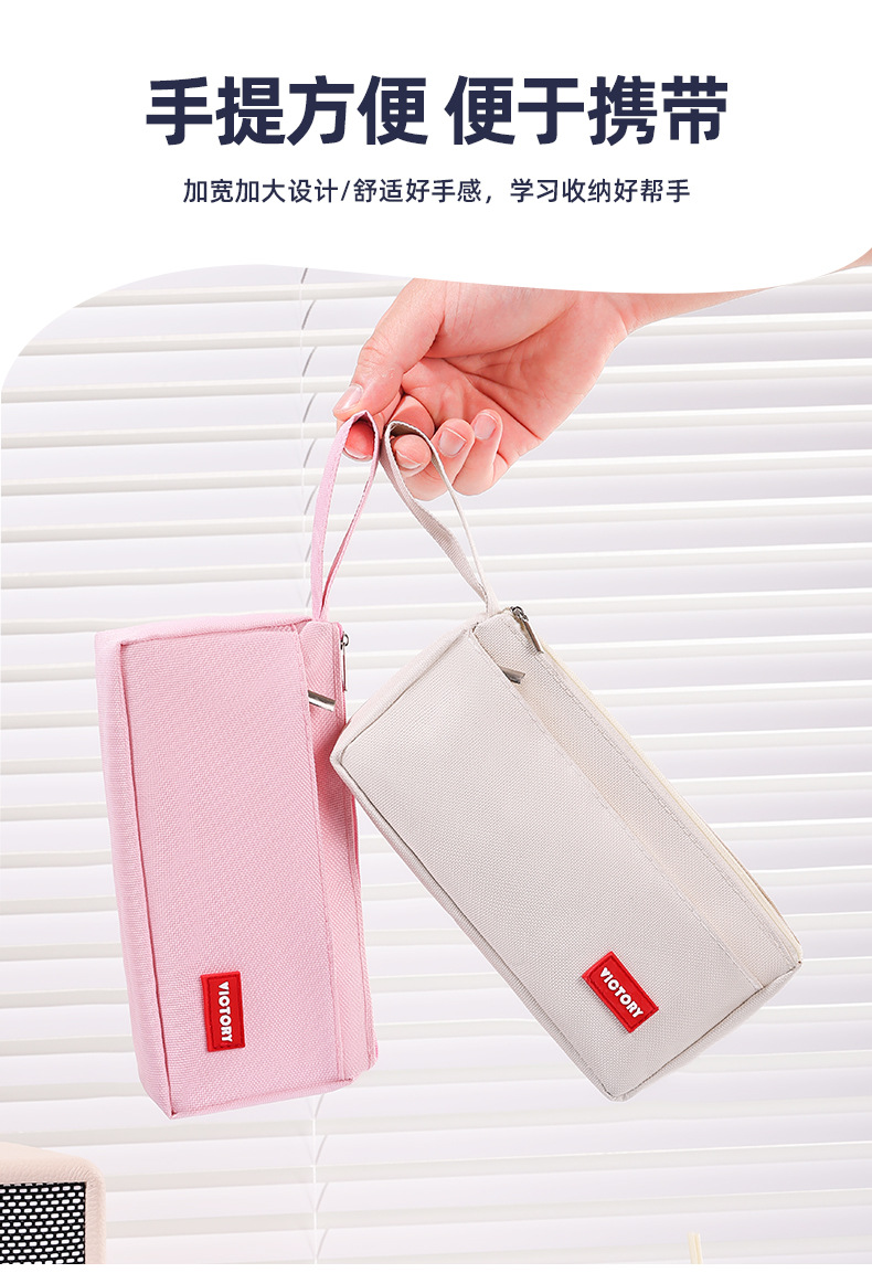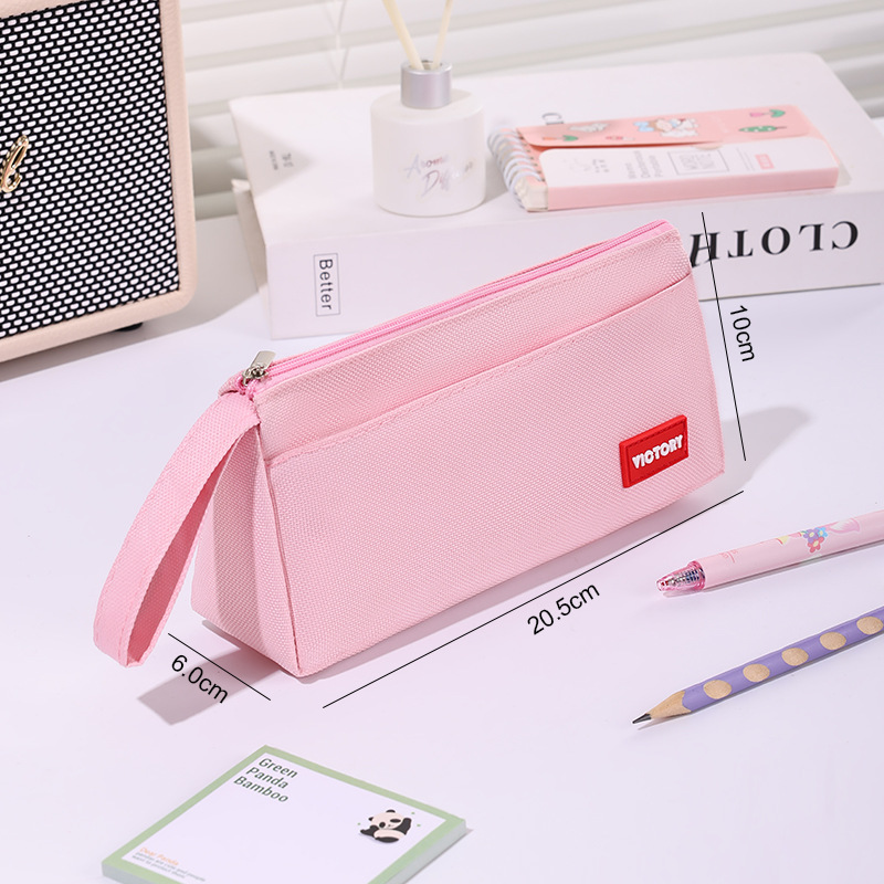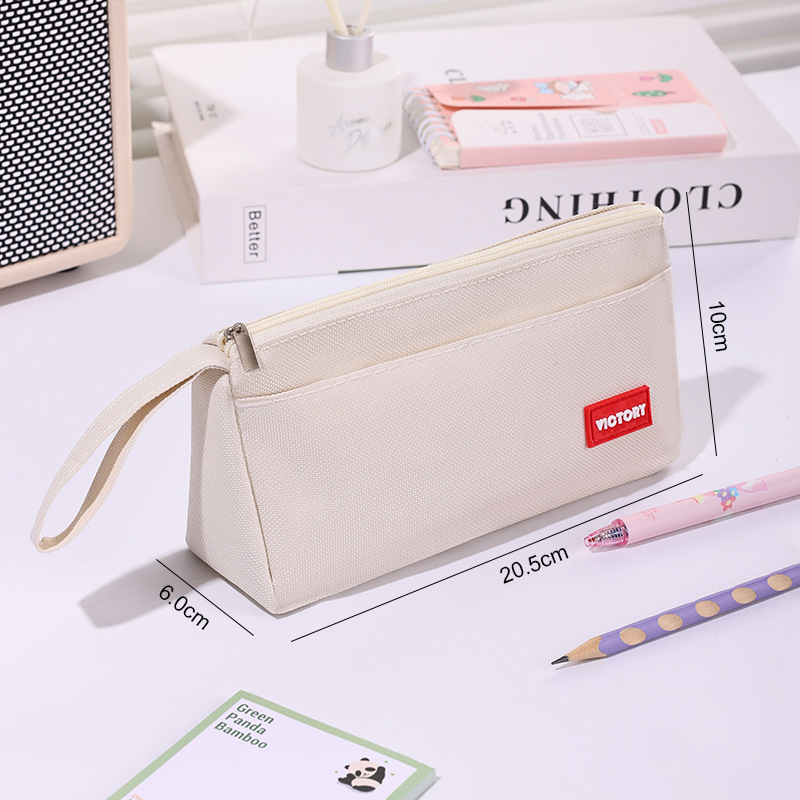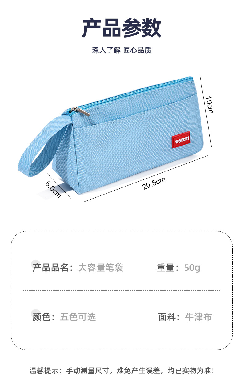 简约高颜值铅笔袋双层拉链牛津布便携文具盒学生通用大容量铅笔盒