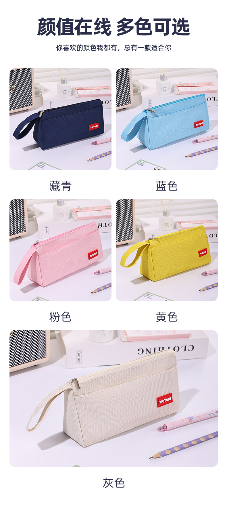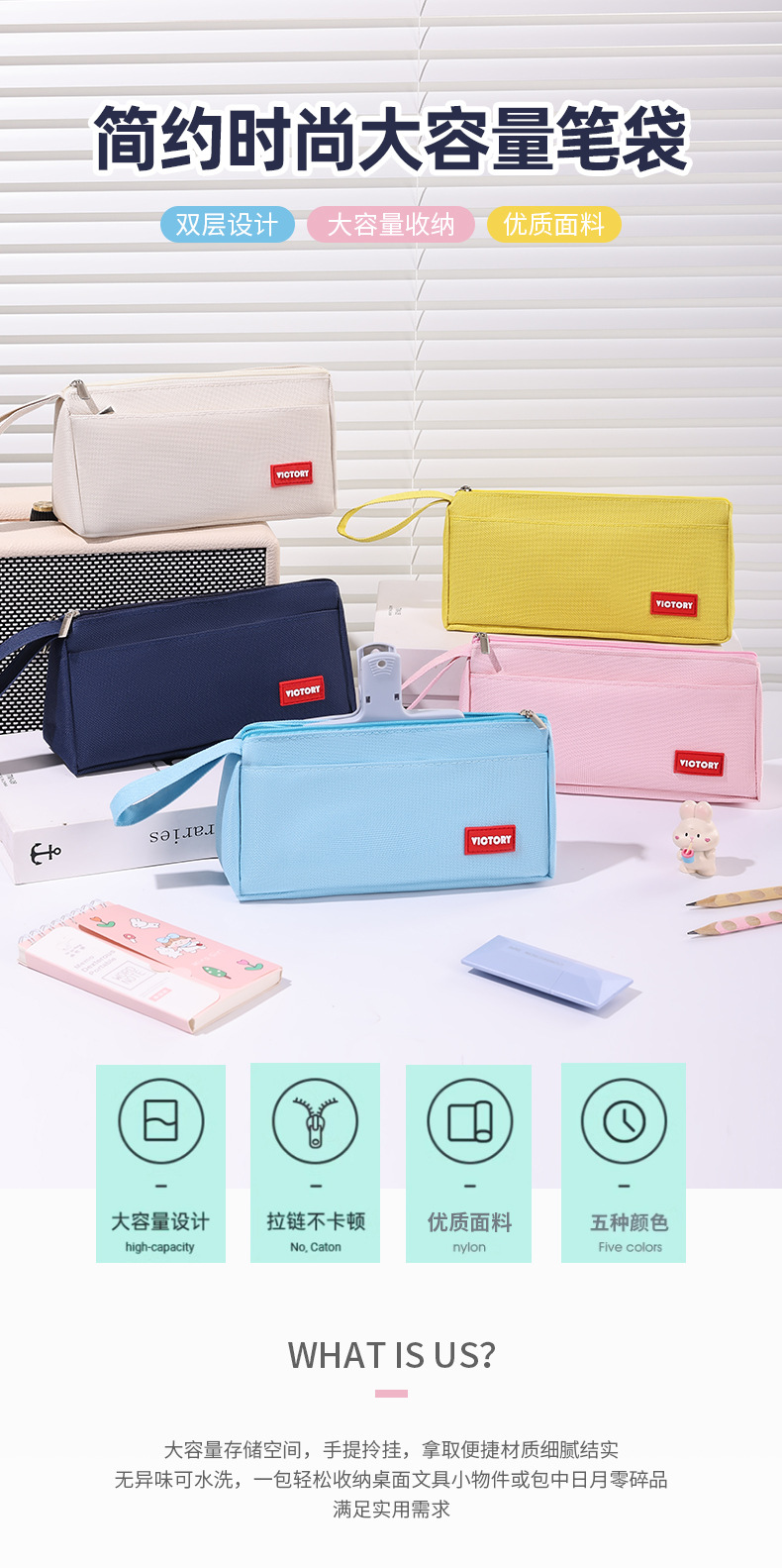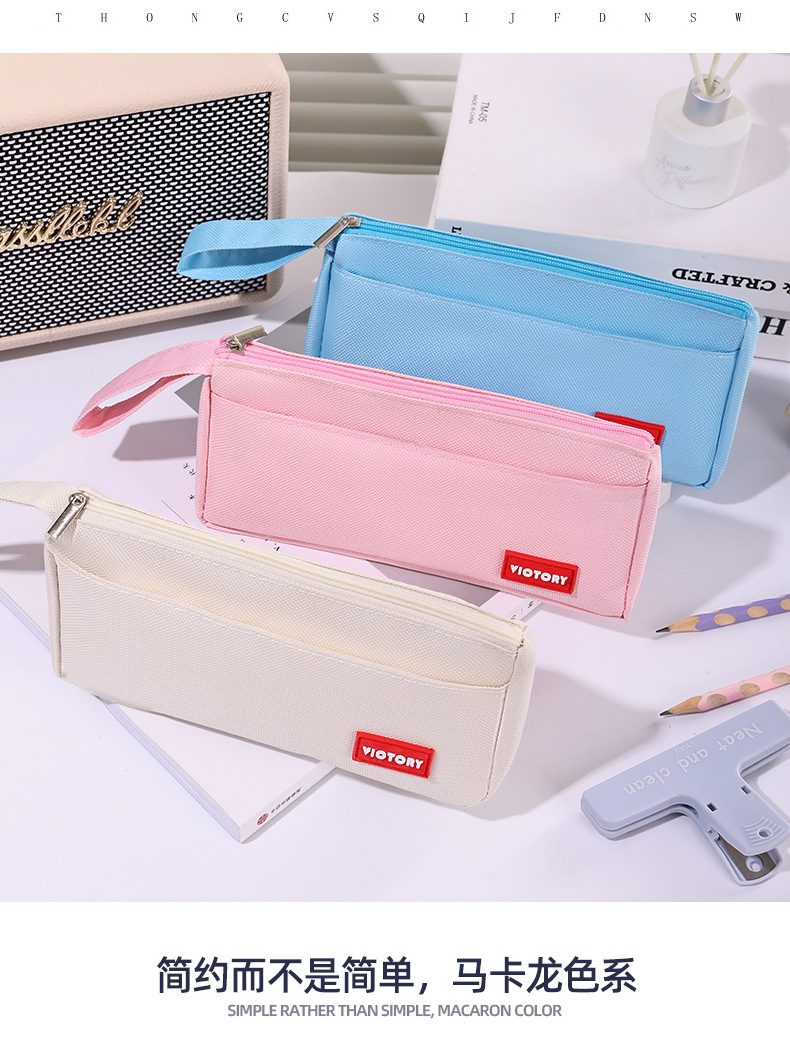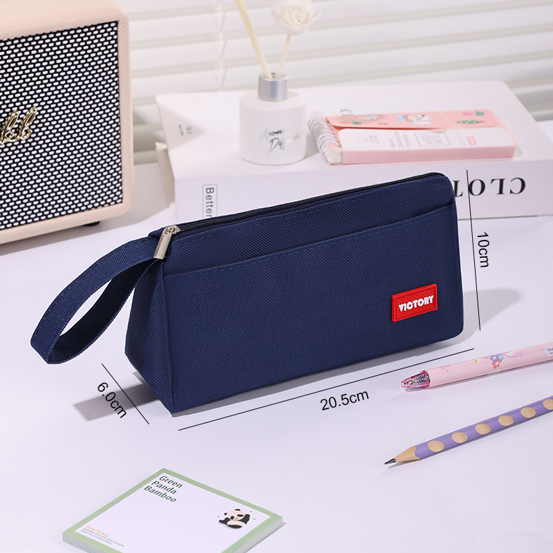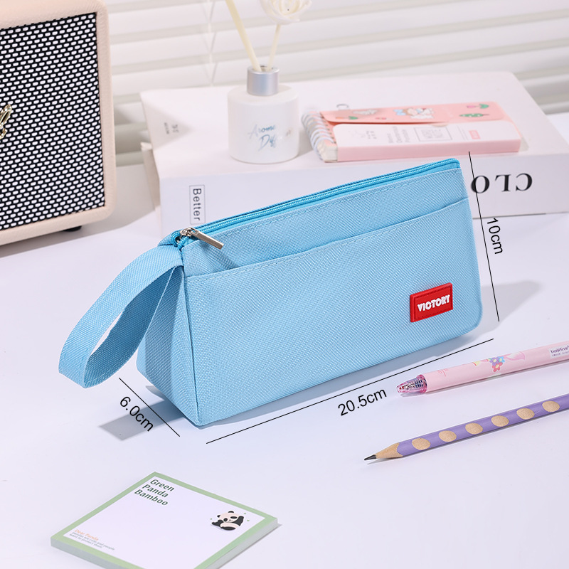 简约高颜值铅笔袋双层拉链牛津布便携文具盒学生通用大容量铅笔盒