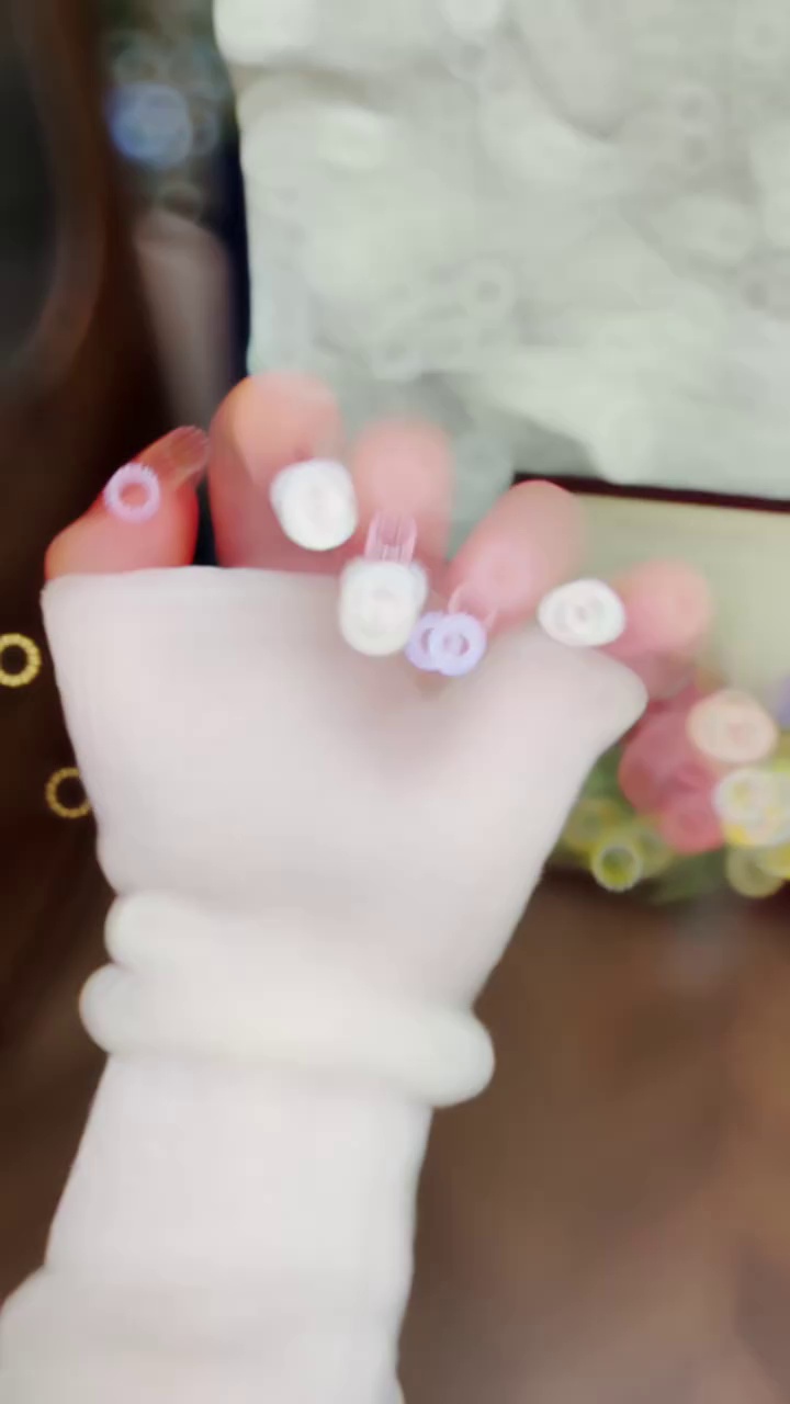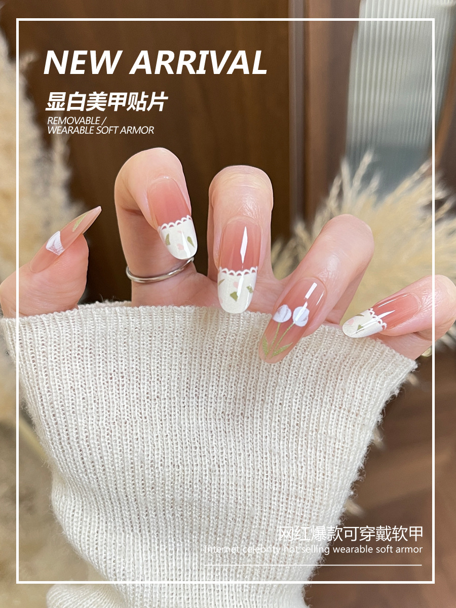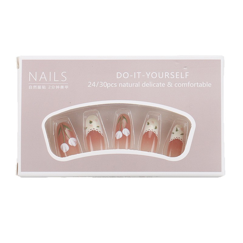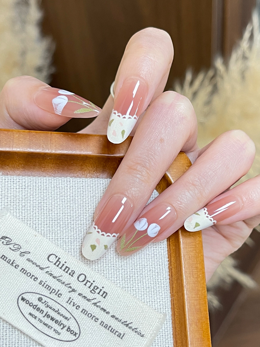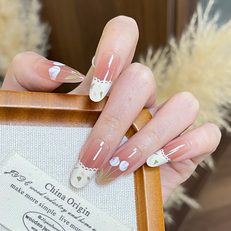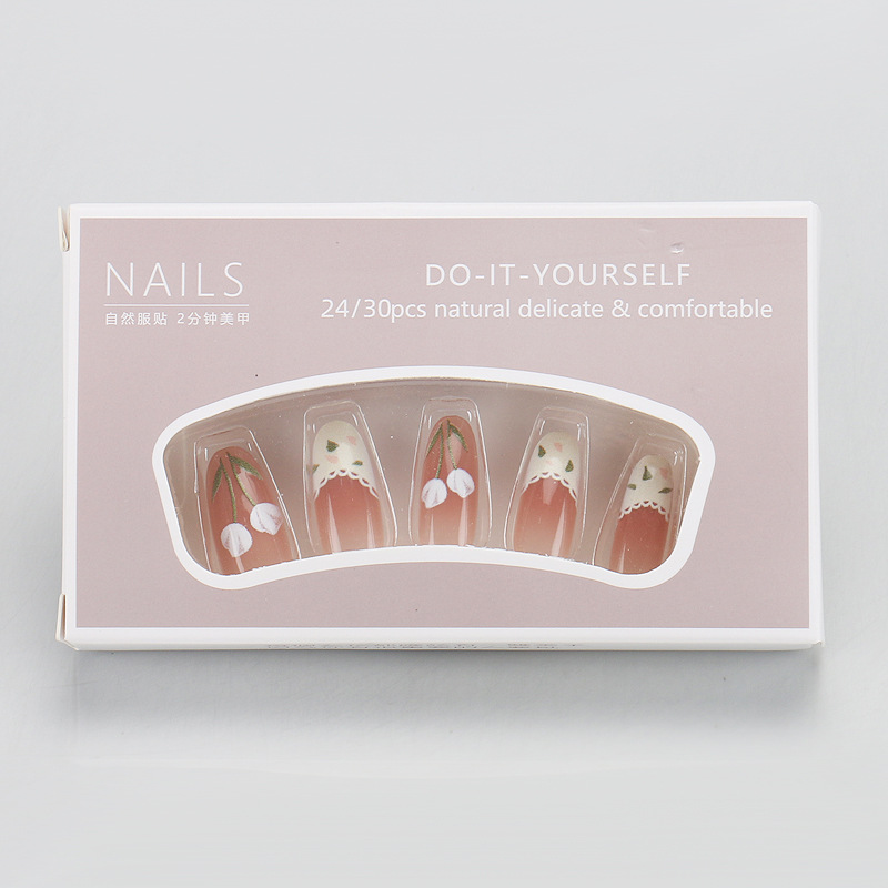 小红书爆款穿戴甲高级感粉棕渐变郁金香穿戴式甲片蕾丝花边美甲片
