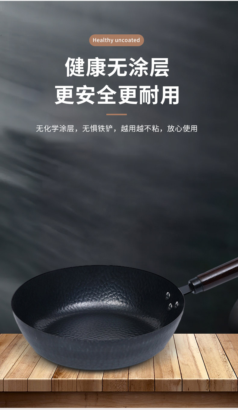 28章丘铁锅手工锻打无涂层平底煎炒锅不粘锅活动礼品小白锅现货