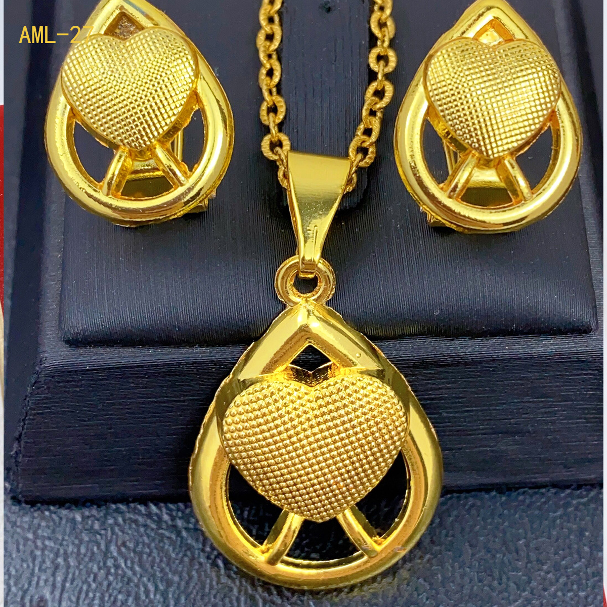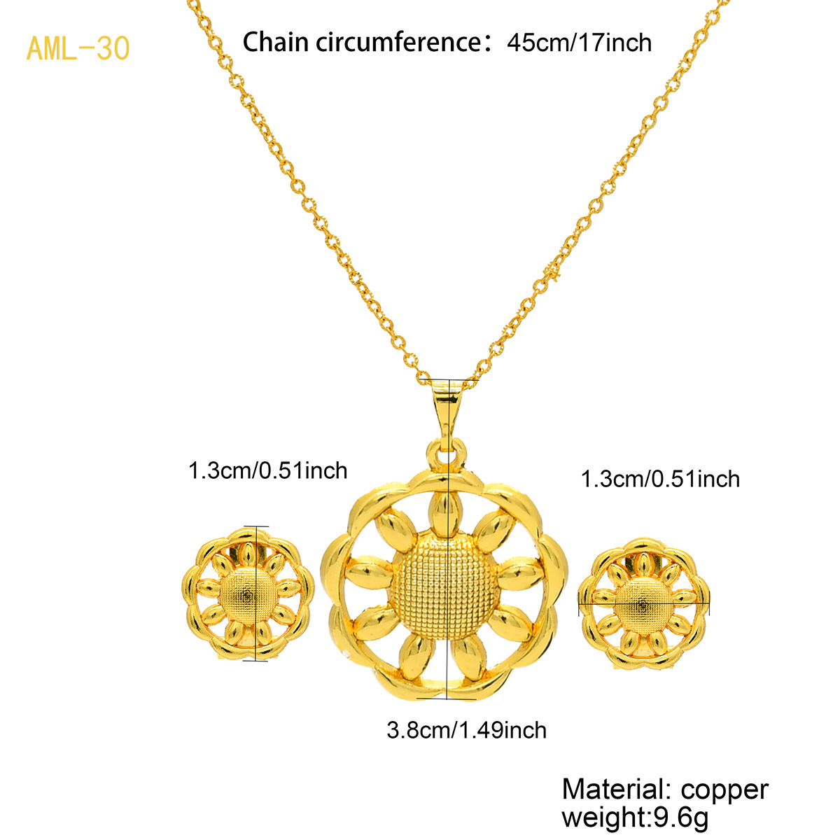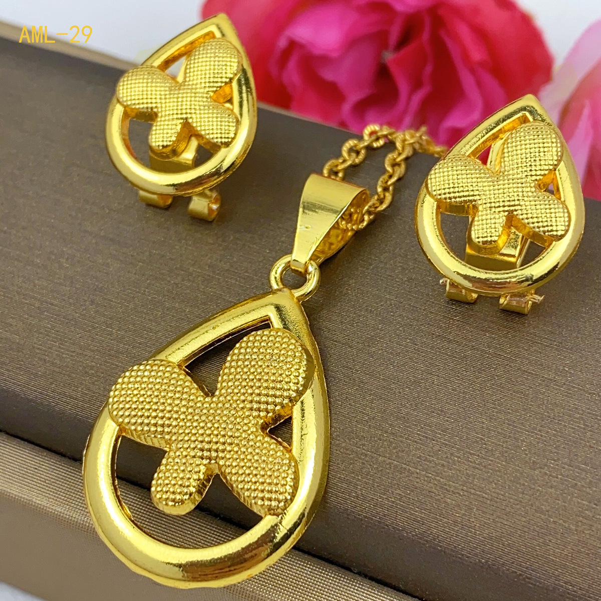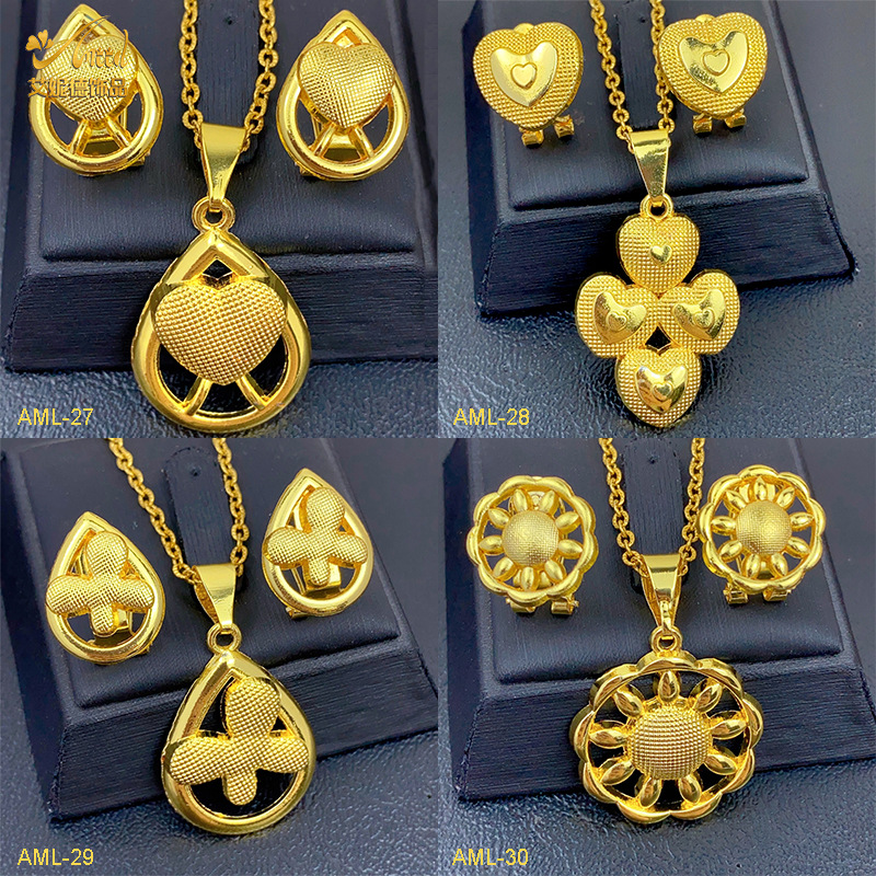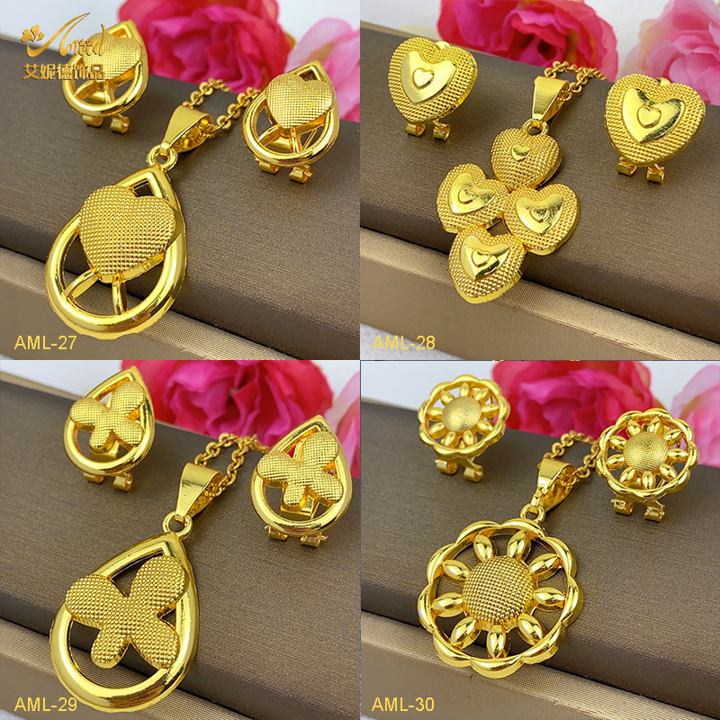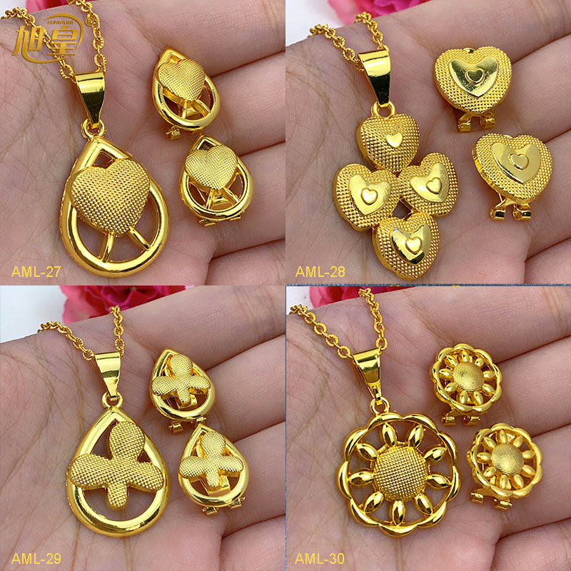 热销24k金花朵耳饰项链两件套迪拜印度非洲尼泊尔首饰套装现货批