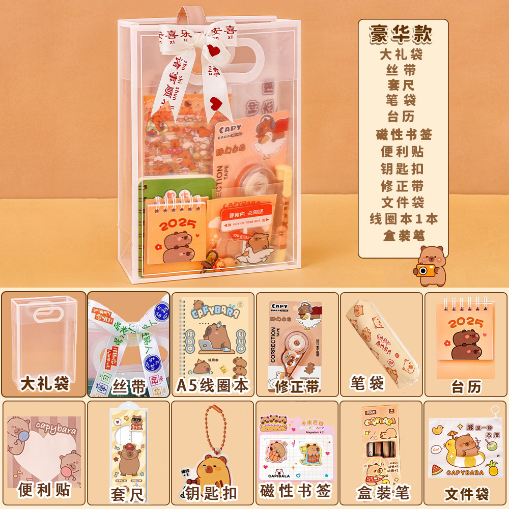 卡皮巴拉文具大礼包套装儿童幸运伴手礼开学季必备礼物奖励小礼品