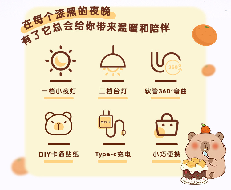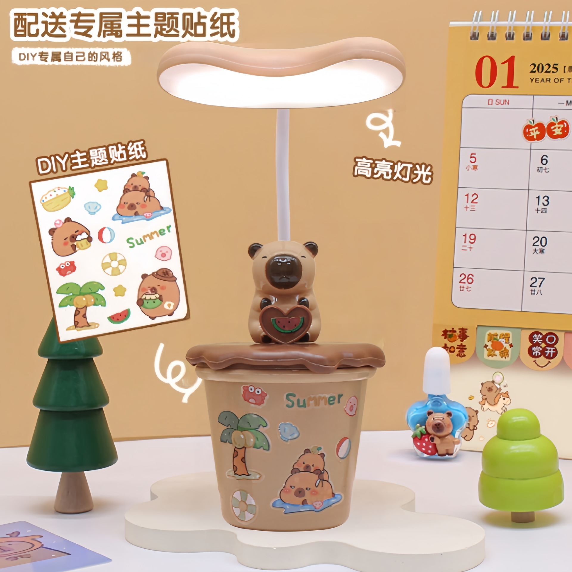 网红水豚杯子桌面小台灯 送贴纸学生卧室学习LED充电阅读台灯礼品
