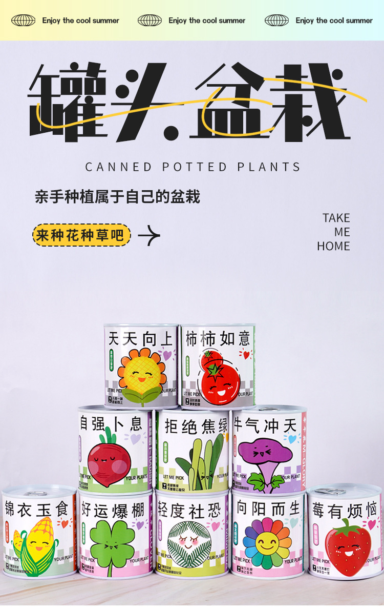 儿童种植绿植祝福易拉罐小盆栽花农幼儿园小学生植物罐头发芽种子
