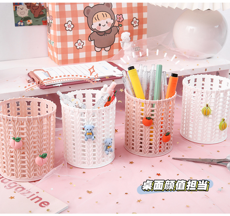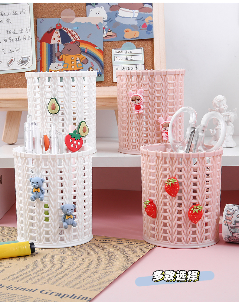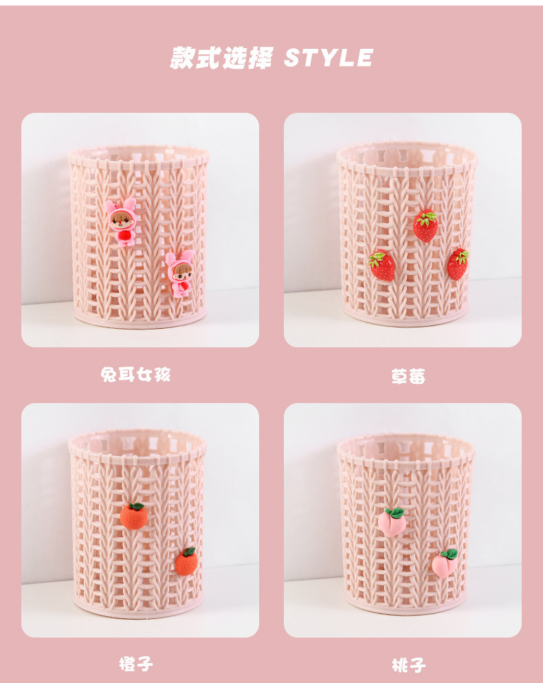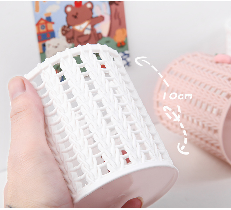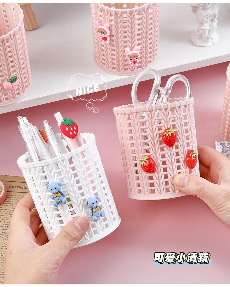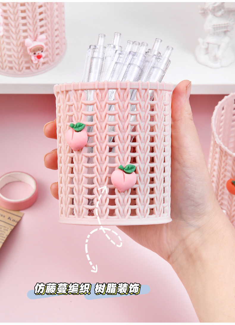 新款卡通仿藤编织笔筒学生桌面笔筒高颜值学生文具整理收纳筒批发