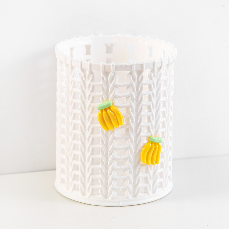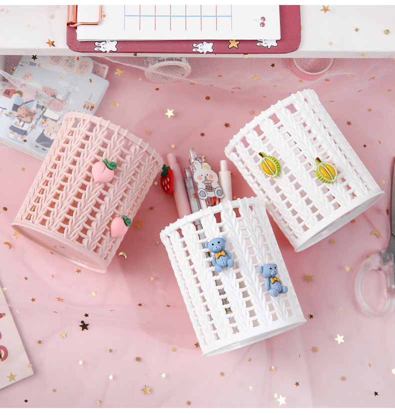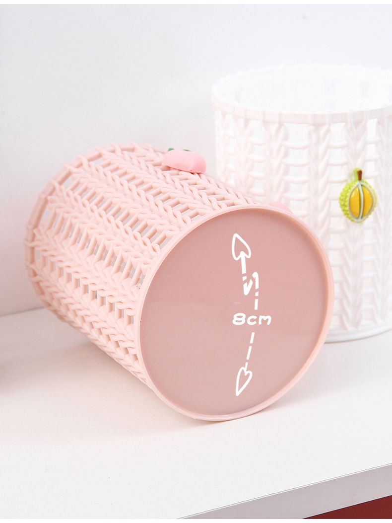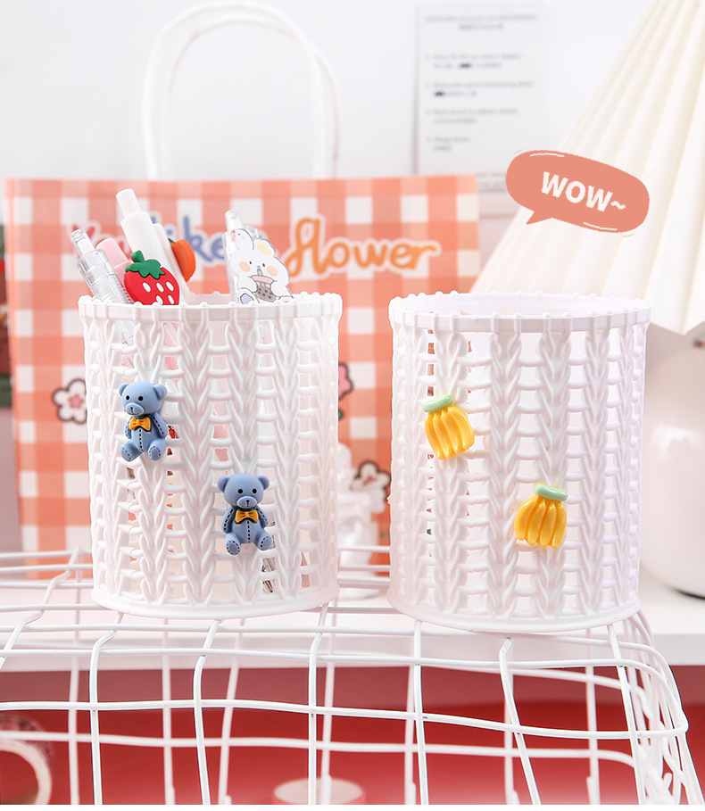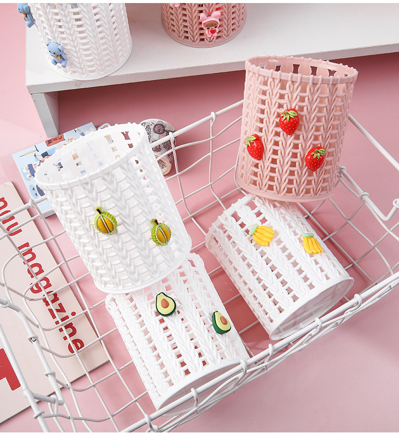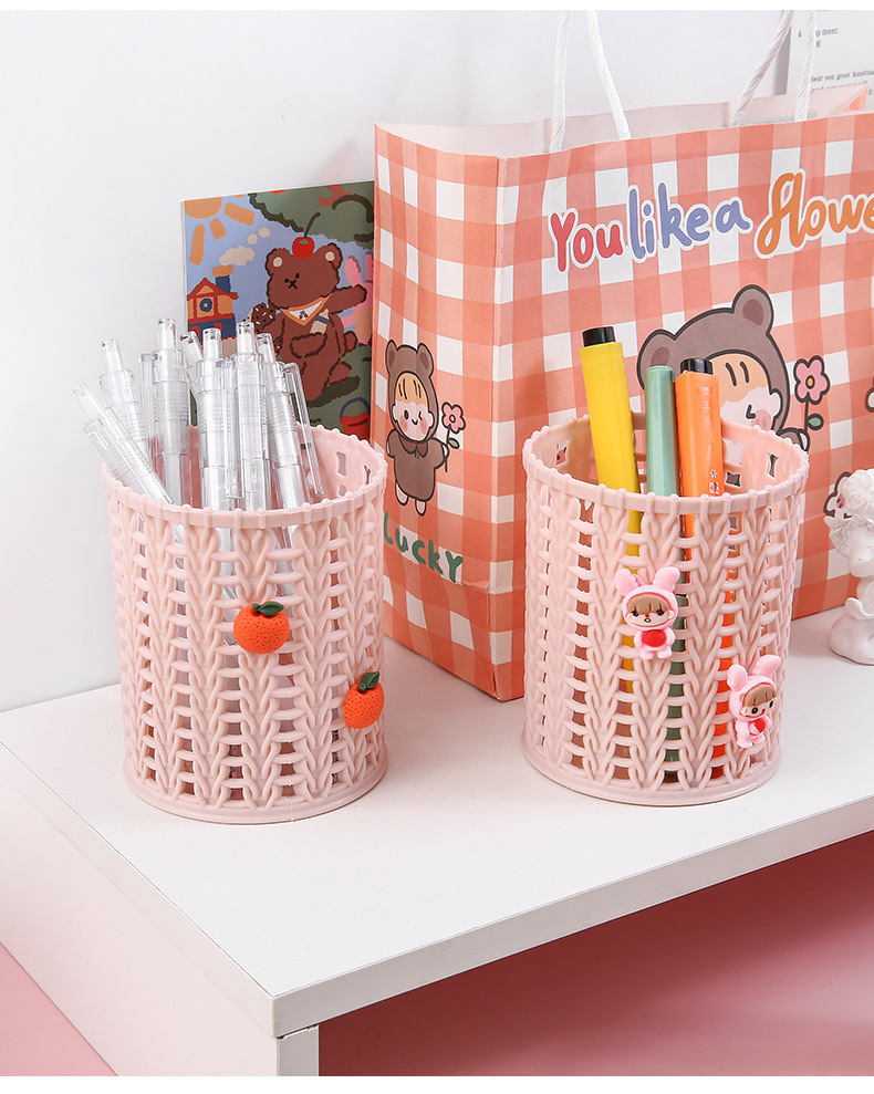 新款卡通仿藤编织笔筒学生桌面笔筒高颜值学生文具整理收纳筒批发