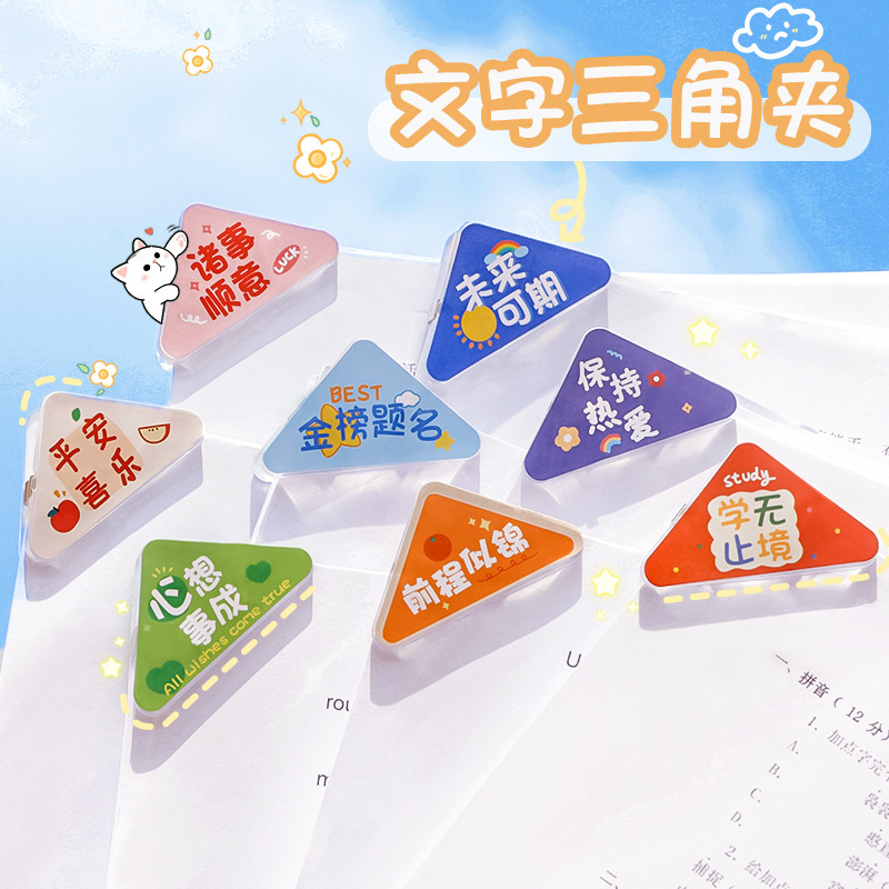 励志文字三角夹学生pp防水便签夹亚克力文件防卷夹试卷收纳边角夹