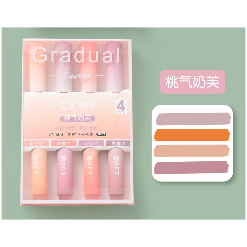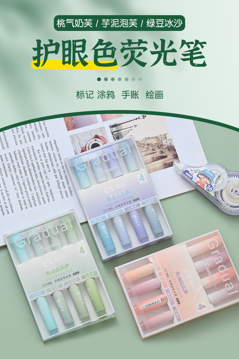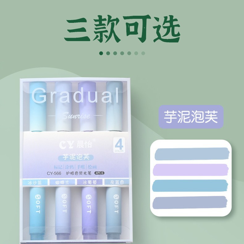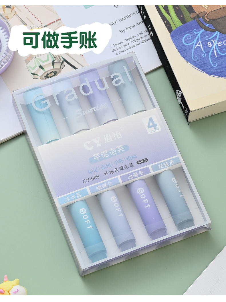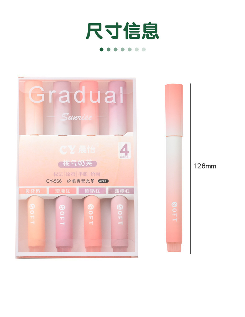 高颜值彩色渐变色荧光笔划重点记号学生标记笔护眼色大容量标志笔
