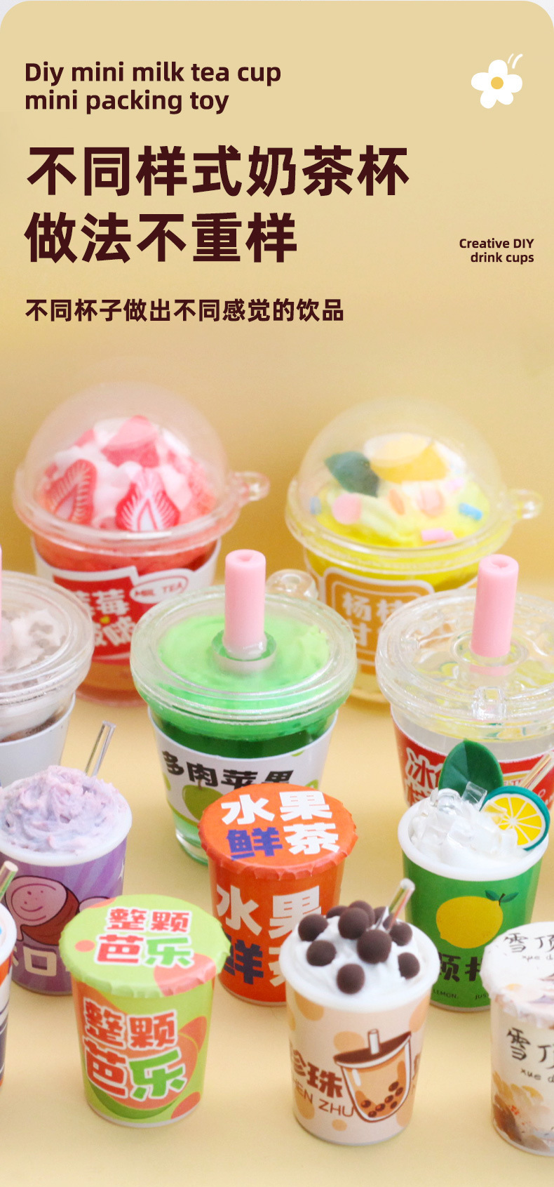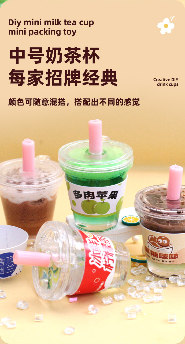 迷你奶茶杯diy玩具先生自制饮料杯手工食玩精美创意奶茶杯材料包