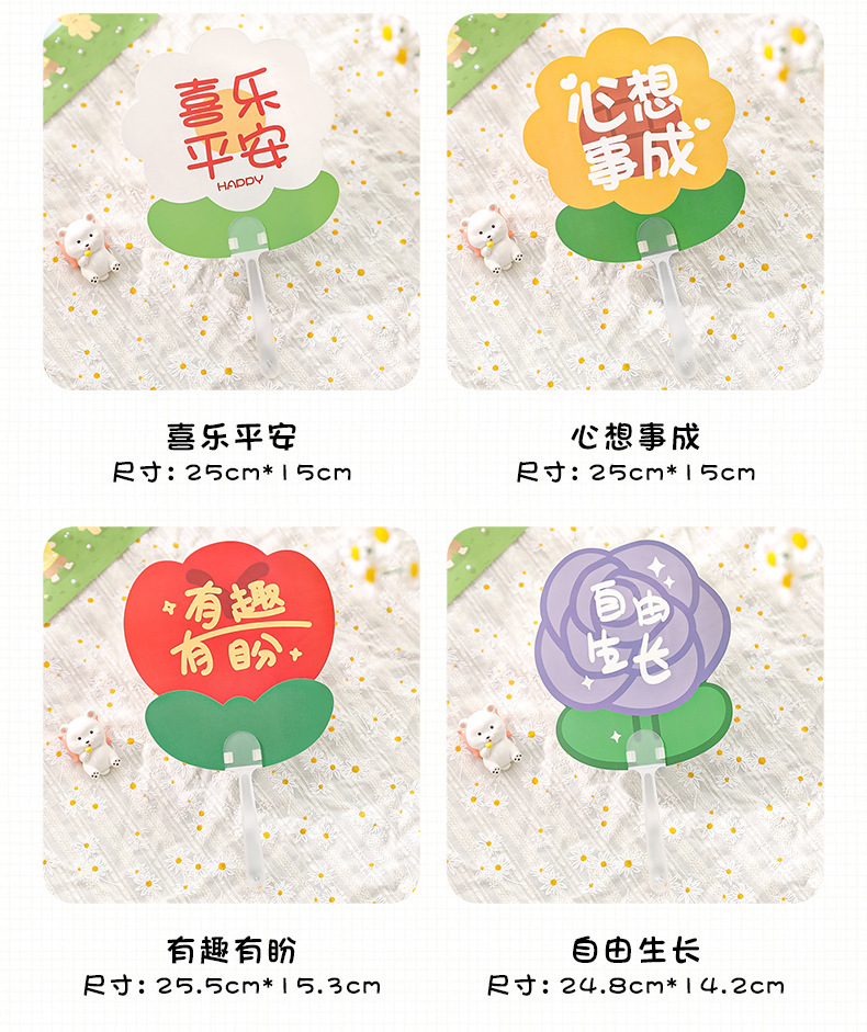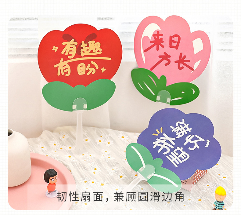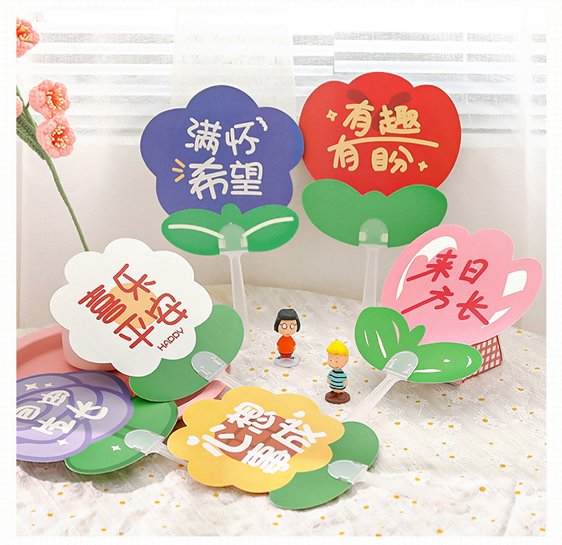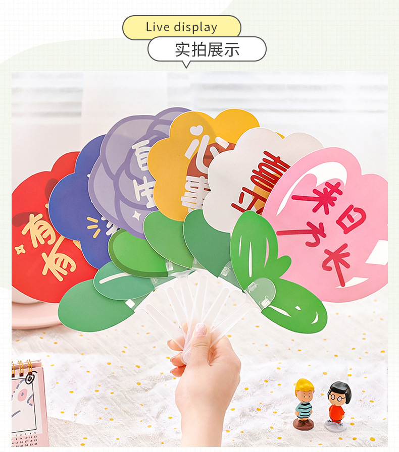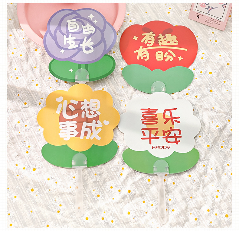 励志文字手持扇 迷你便携塑料花朵手摇扇夏季可爱小扇子促销礼品