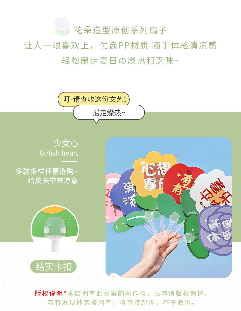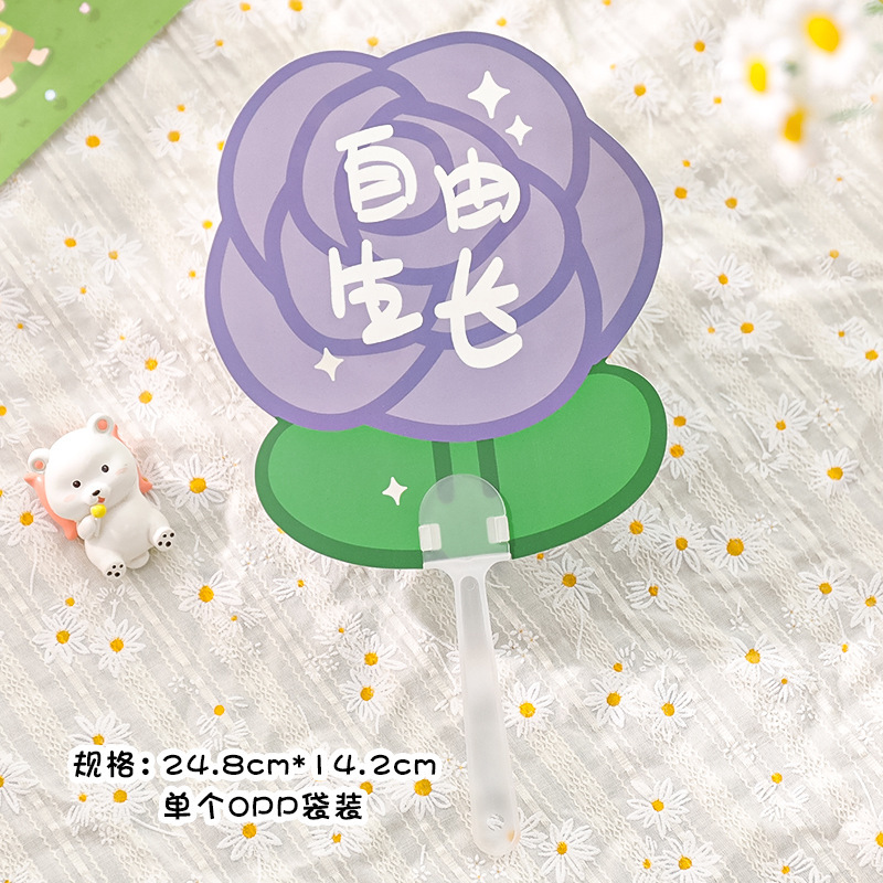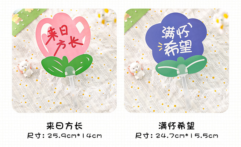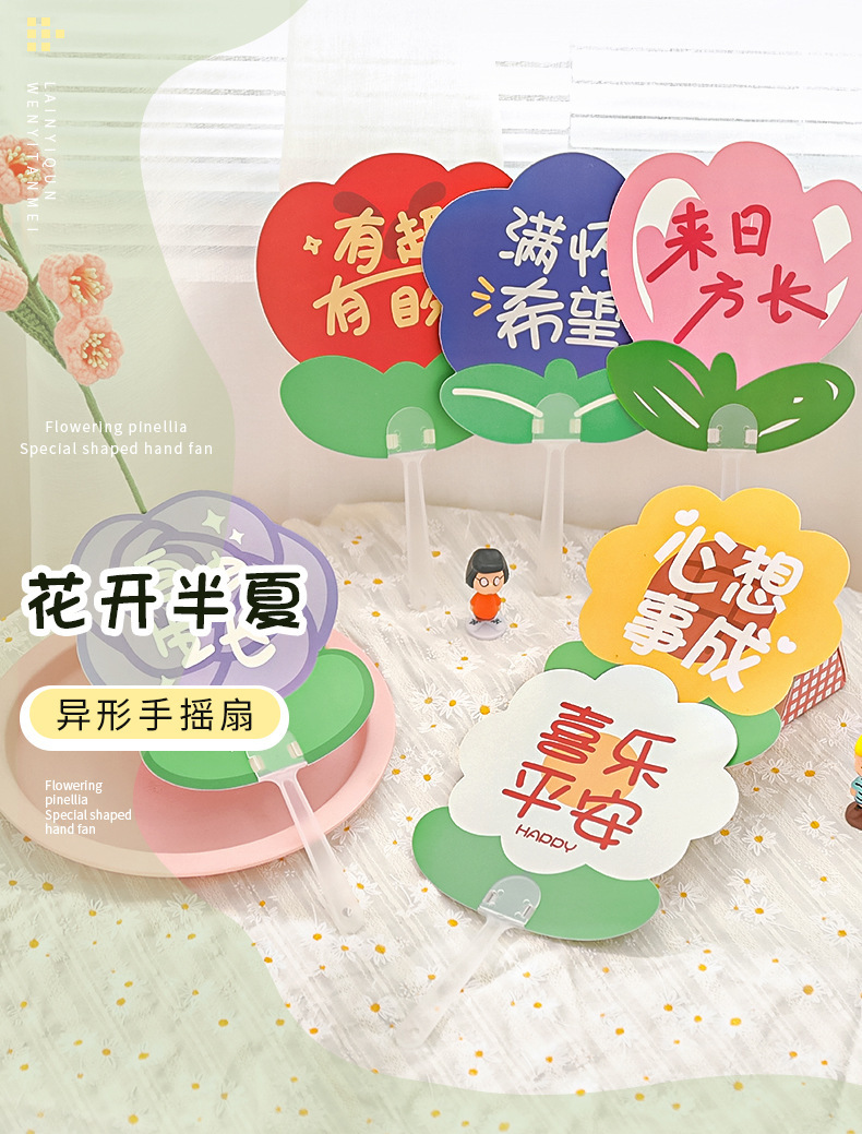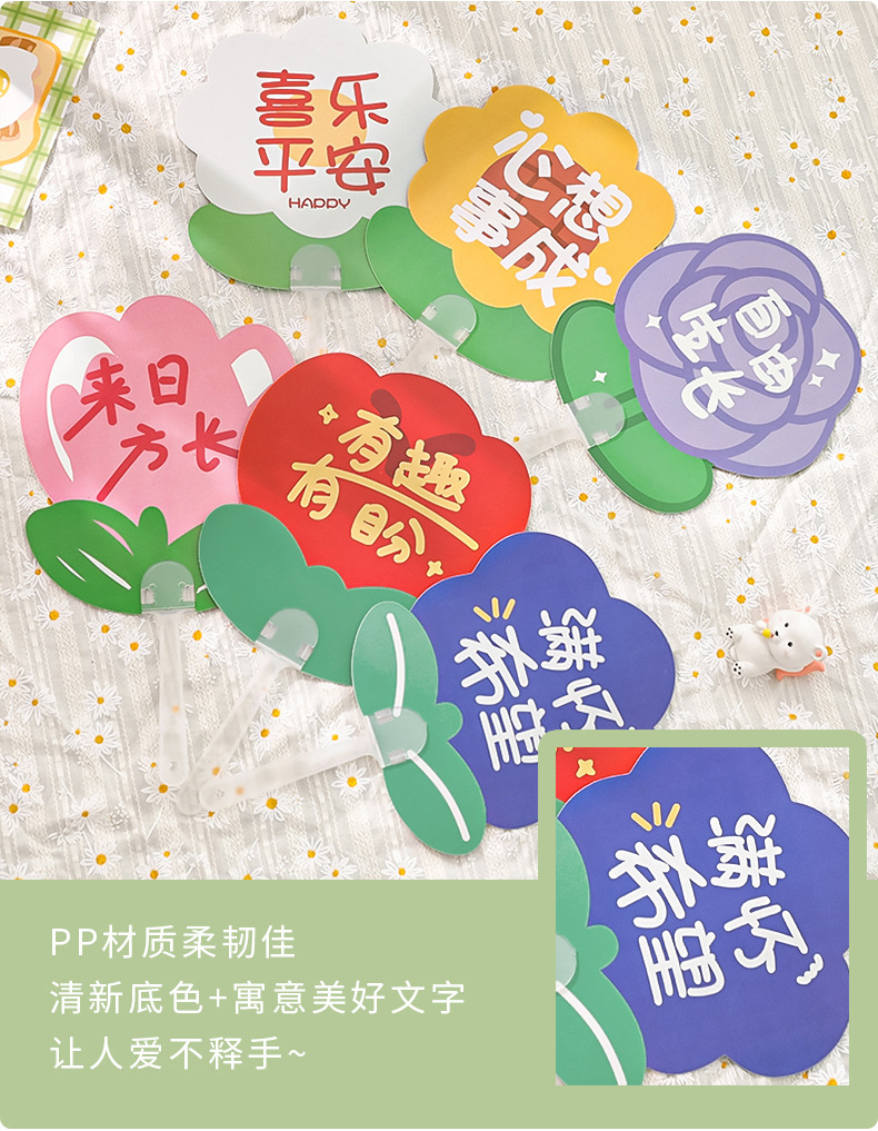 励志文字手持扇 迷你便携塑料花朵手摇扇夏季可爱小扇子促销礼品