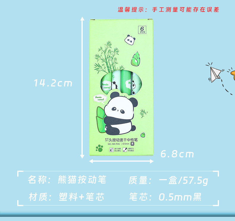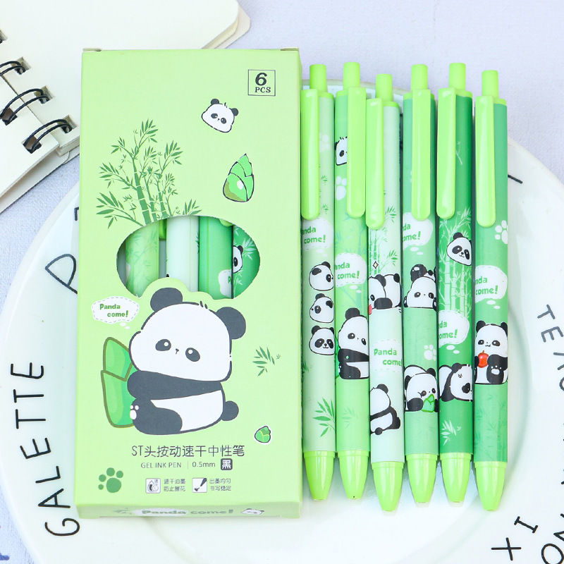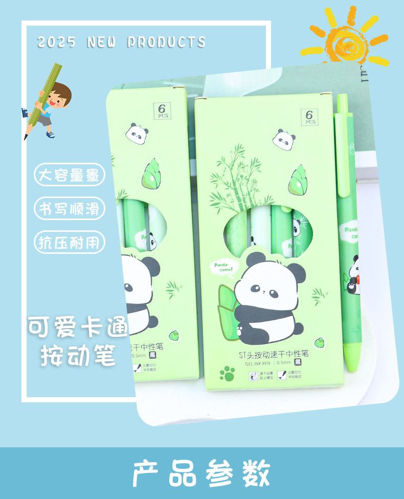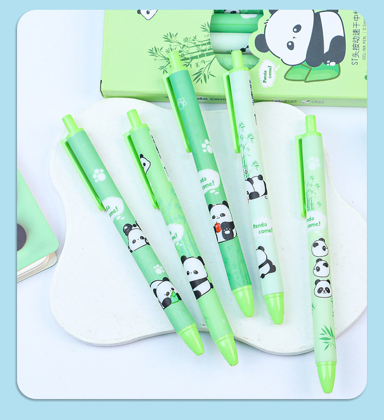 熊猫按动中性笔ins风学生实用文具刷题笔中性笔ST速干顺滑按动黑