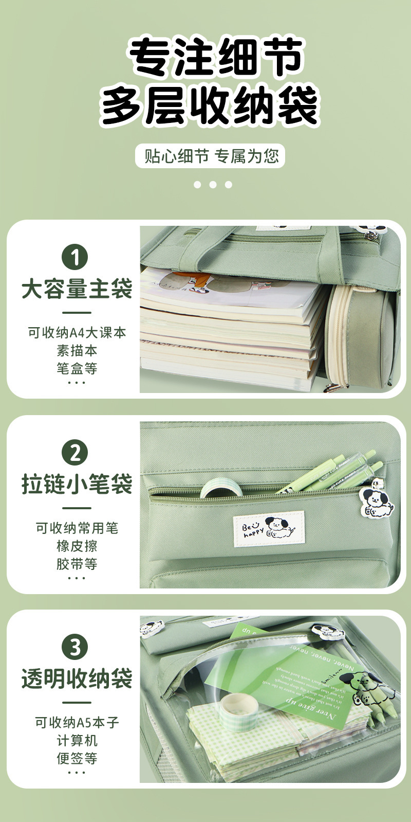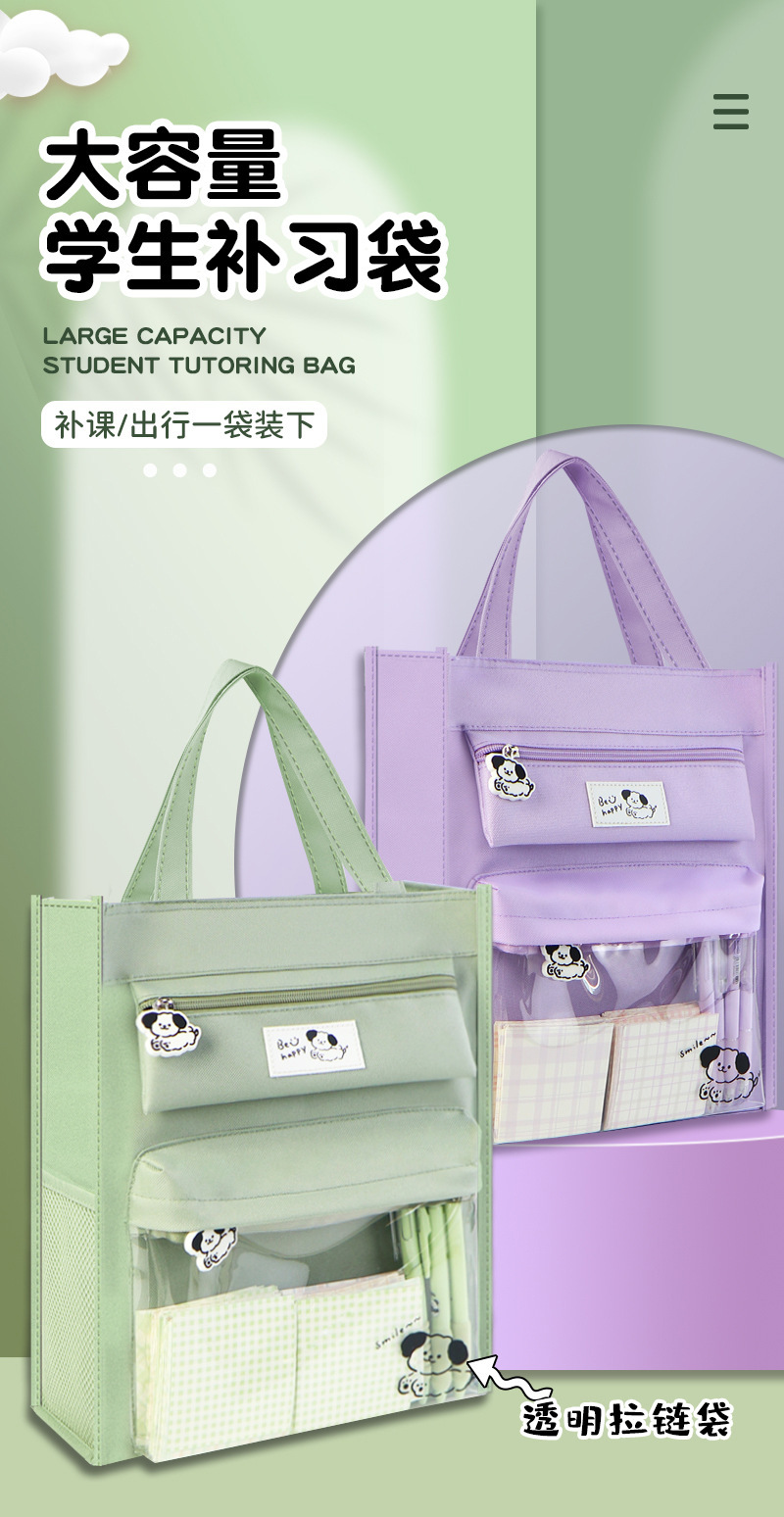 中小学生高颜值纯色补习袋防水文件袋儿童补课包卡通可爱美术袋