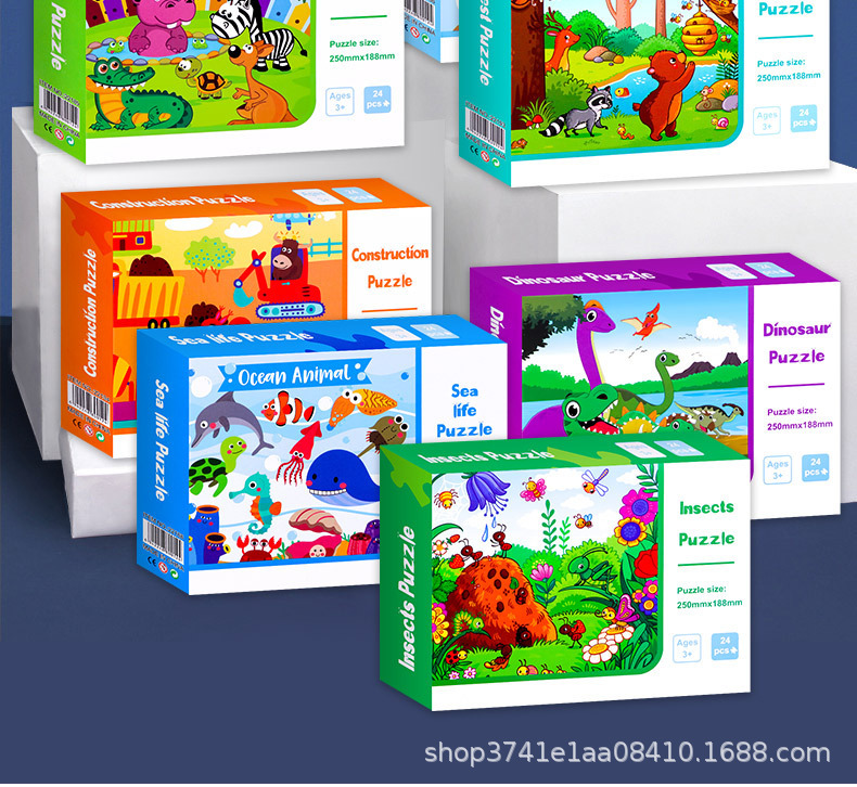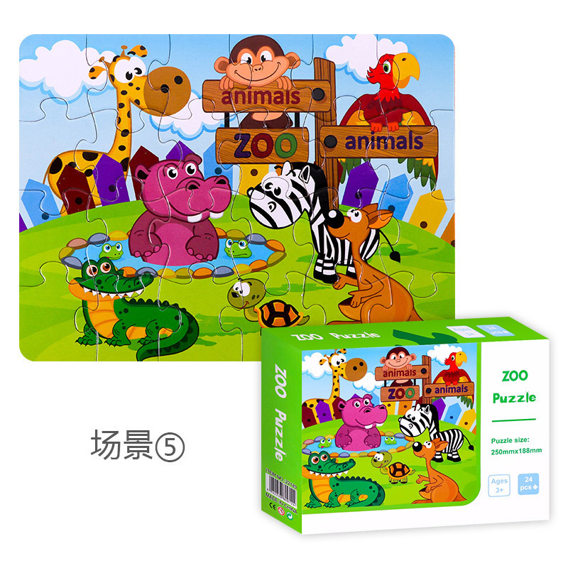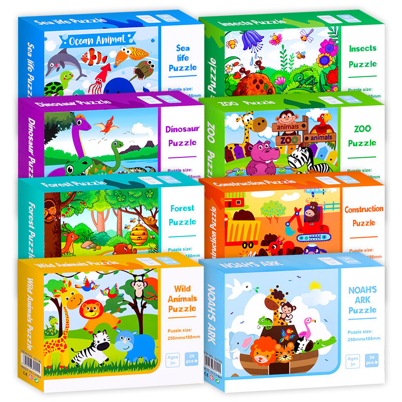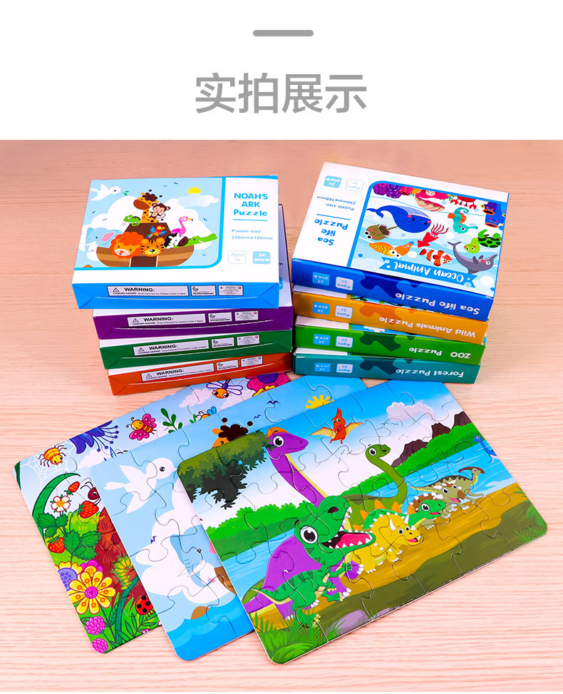 儿童24片拼图交通认知卡通恐龙拼图早教益智启蒙幼儿园礼物玩具
