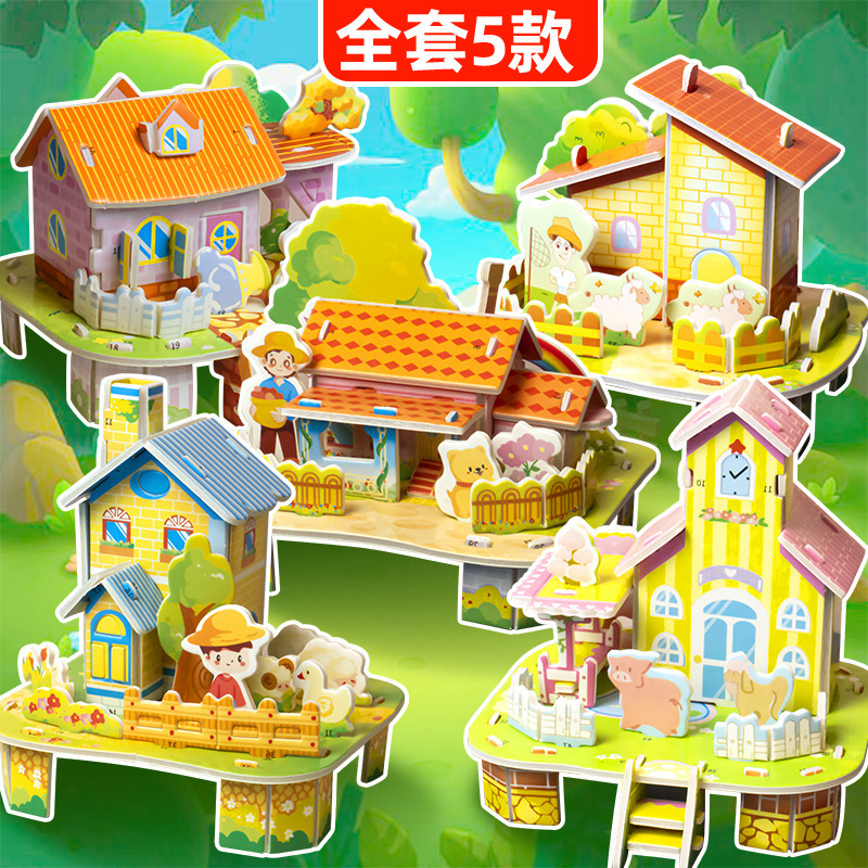 儿童3d立体拼图小屋新款早教益智diy立体拼图迷你小屋拼装玩具