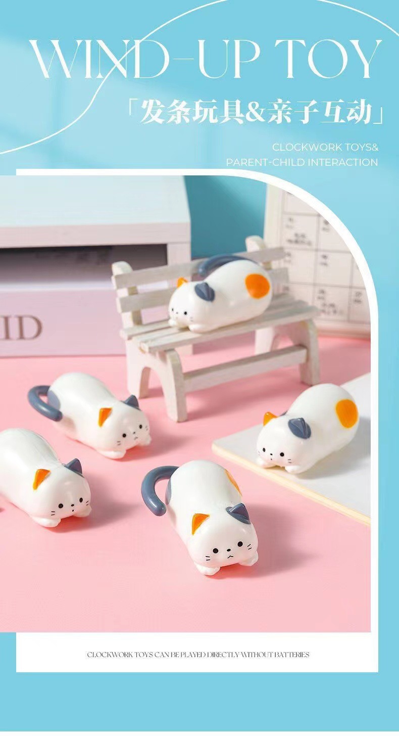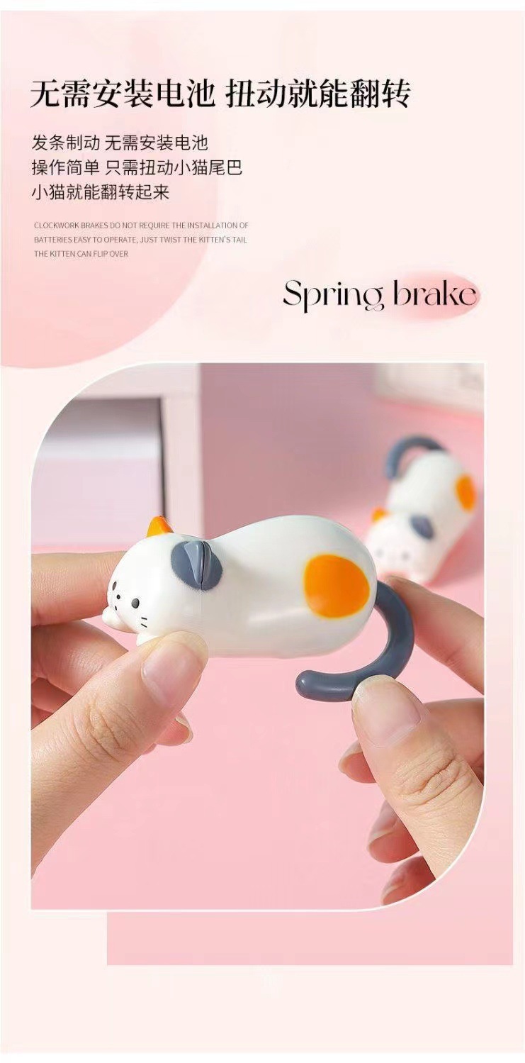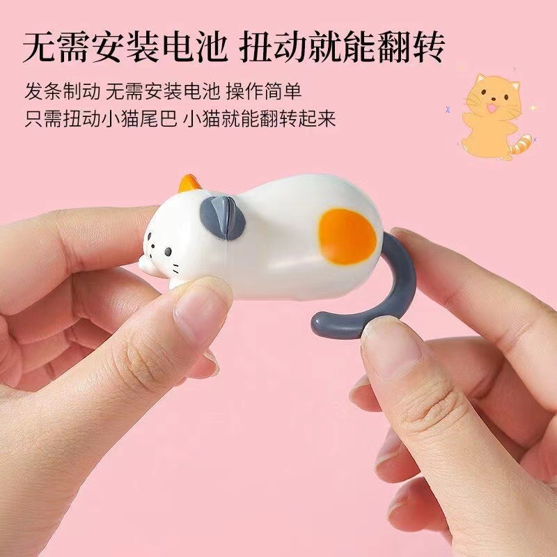 新款翻滚吧小猫解压回力发条小猫玩具摆件可动小猫创意小礼物玩具