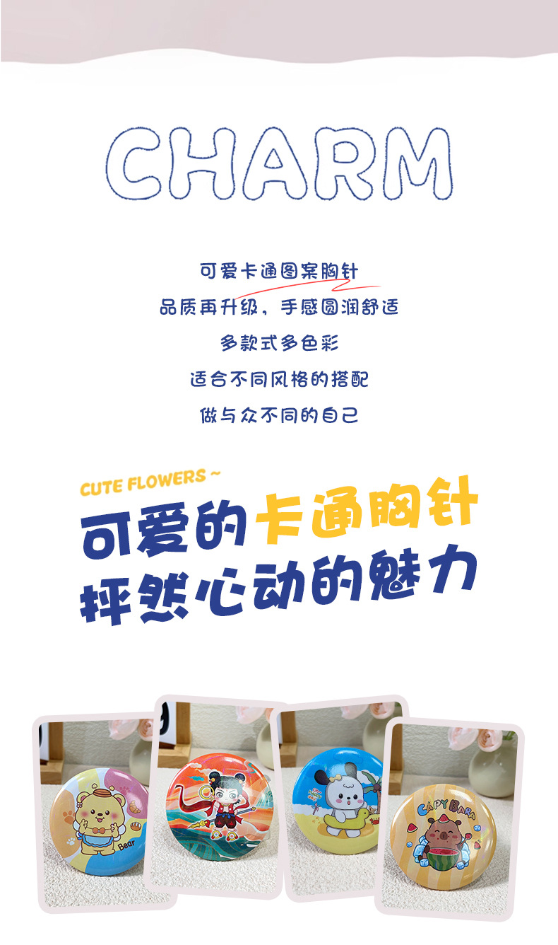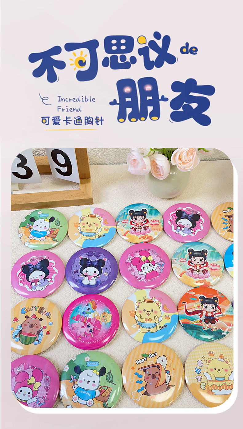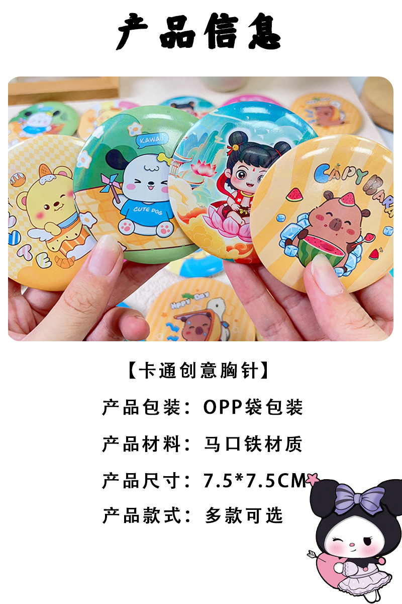 大号卡皮巴拉吧唧谷子可爱周边镭射工艺高颜值胸针徽章精美小挂饰