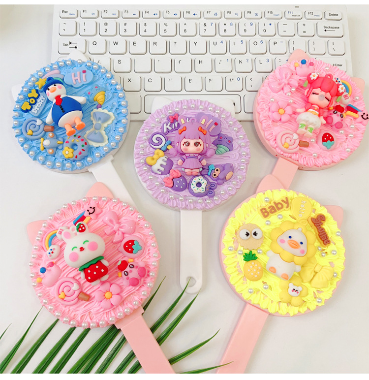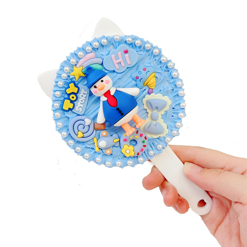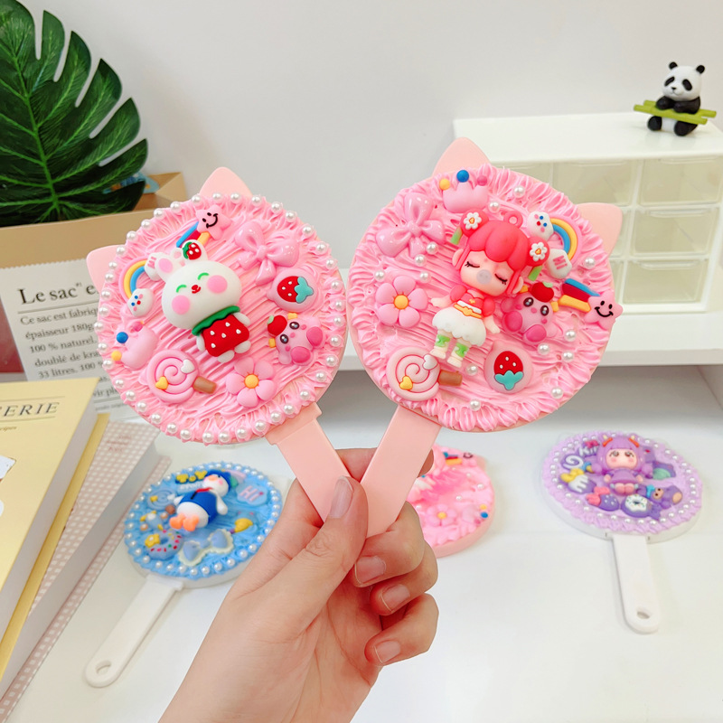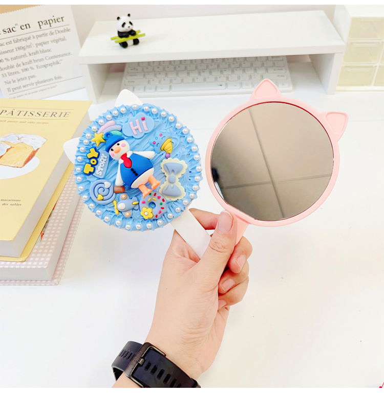 手工制作diy镜子材料包便携奶油胶手持化妆镜随身化妆镜梳一体
