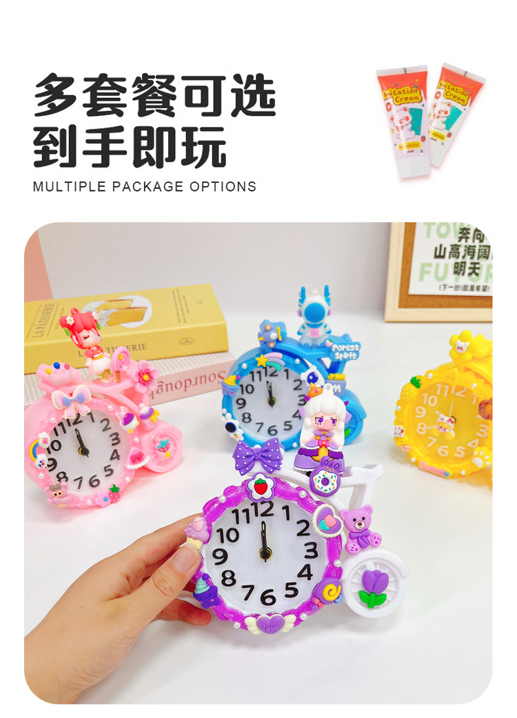 儿童手工DIY创意奶油胶闹钟材料包学生宿舍可爱桌面装饰闹钟益智