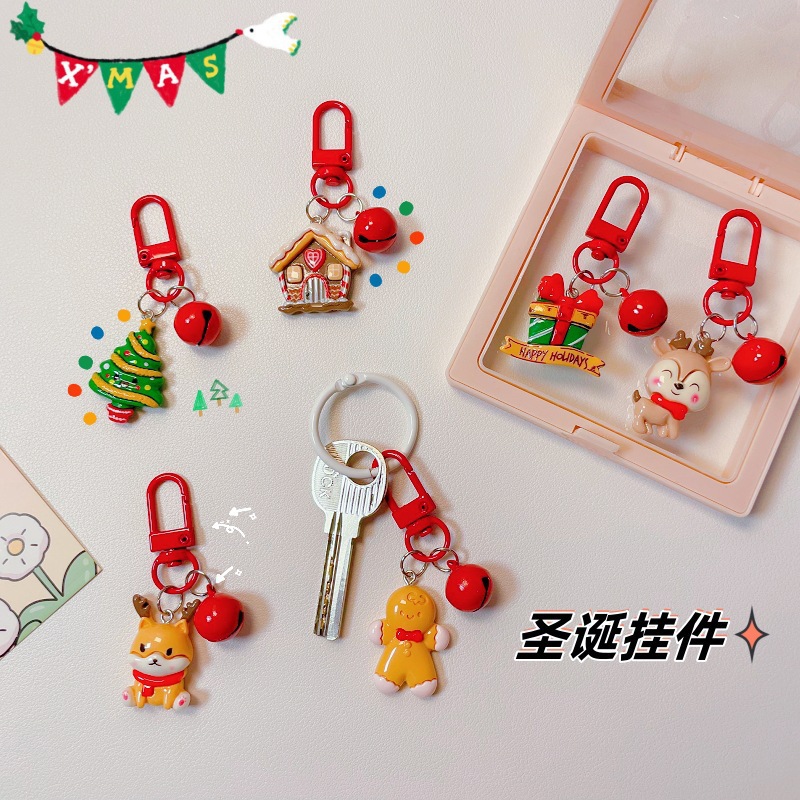 圣诞系列钥匙扣卡通少女心百搭包包挂件耳机套挂饰品创意礼品批发