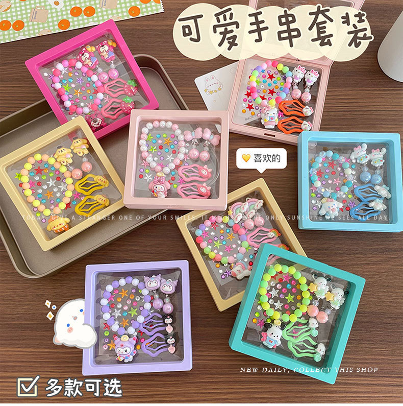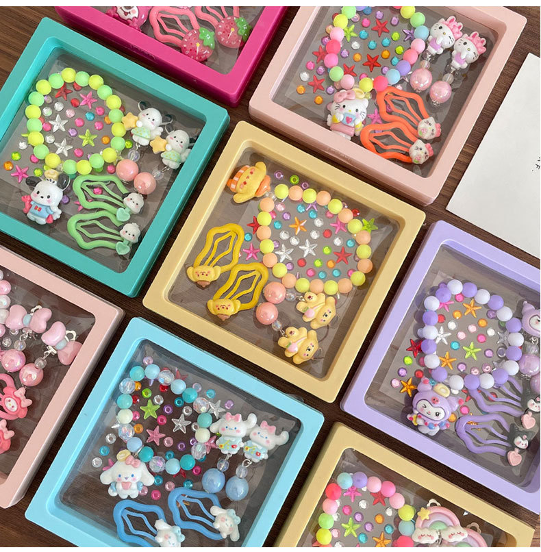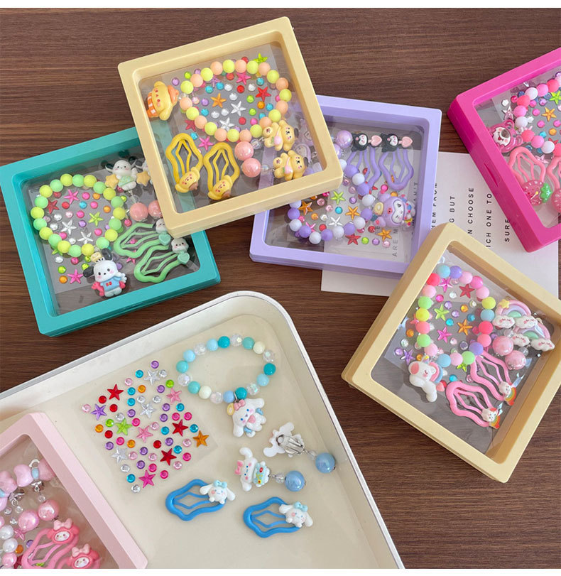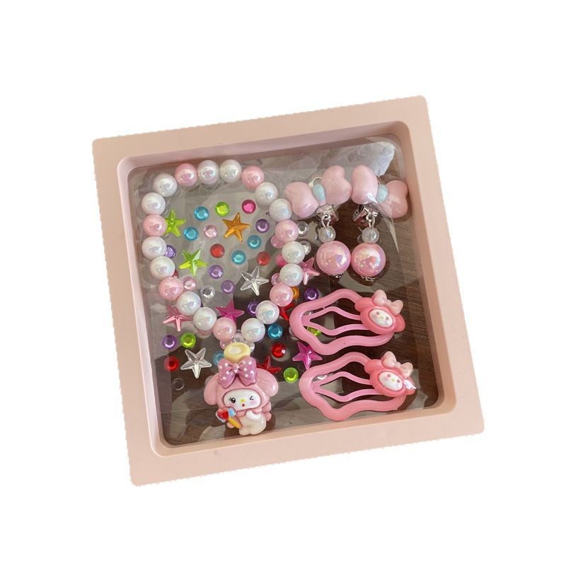 儿童DIY幻彩手链耳环套装可爱卡通百搭小女孩水晶发夹手串套装