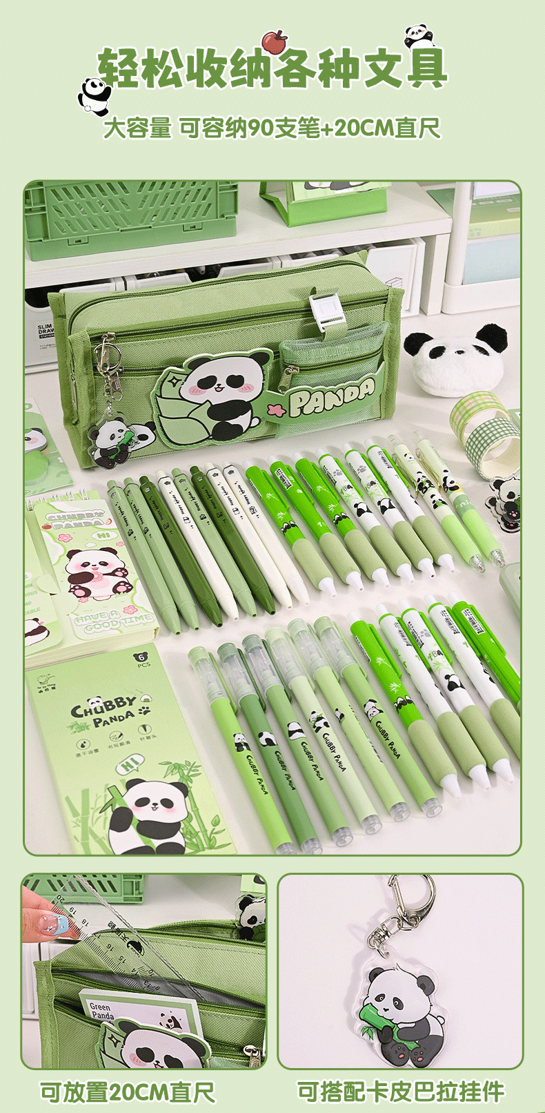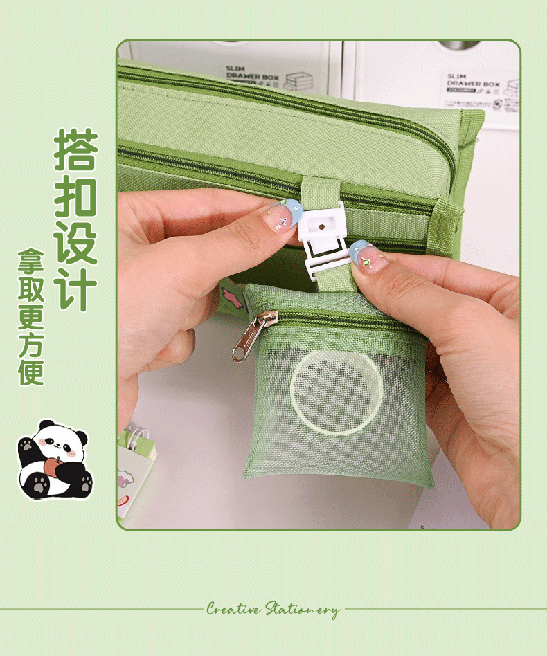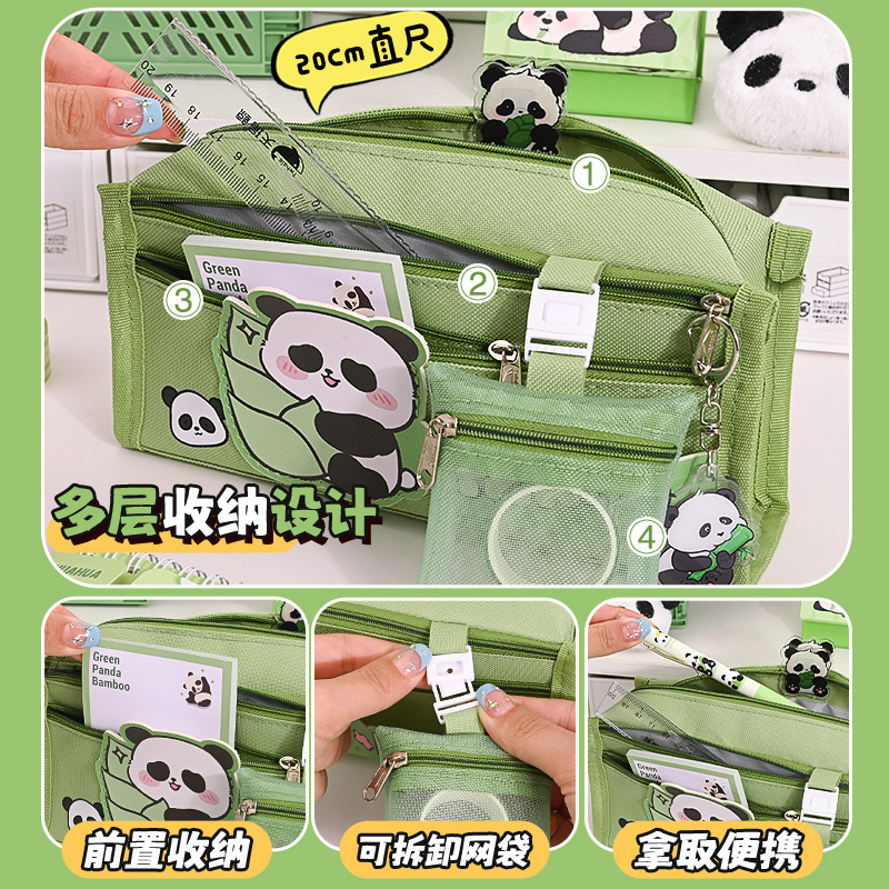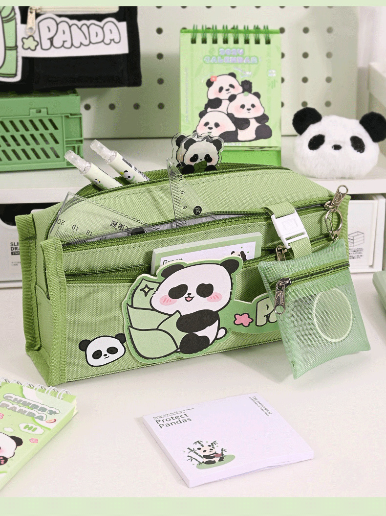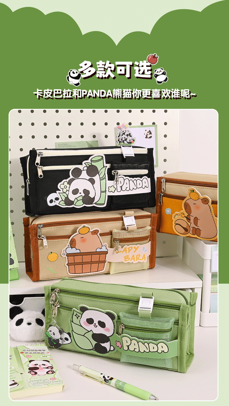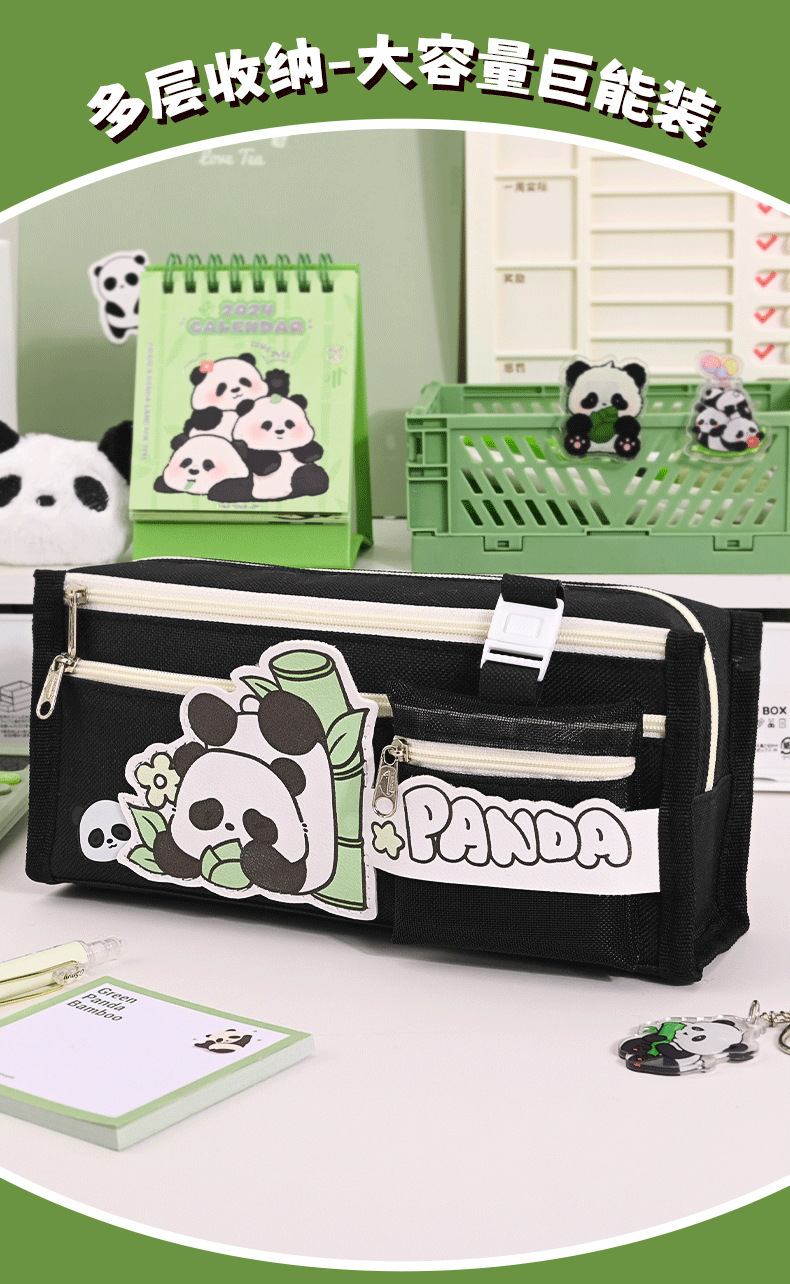 卡通风学生大容量文具袋男孩高颜值可爱防水耐脏文具盒女孩熊猫笔
