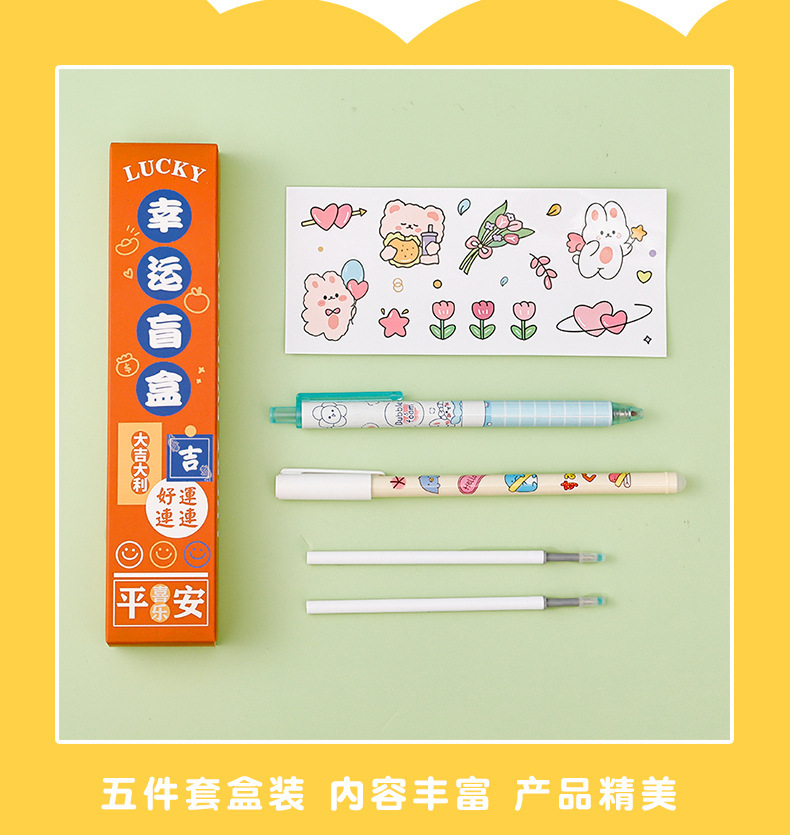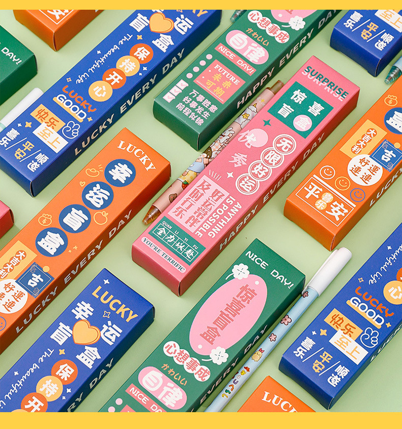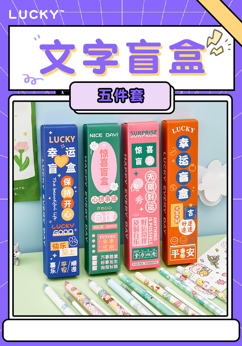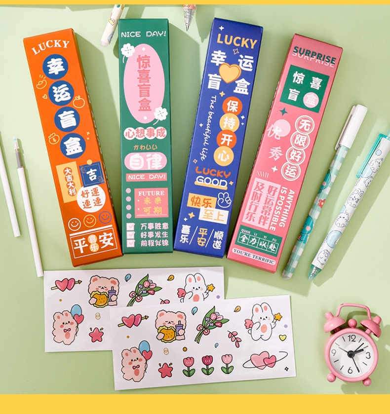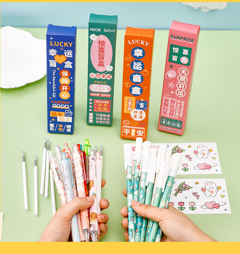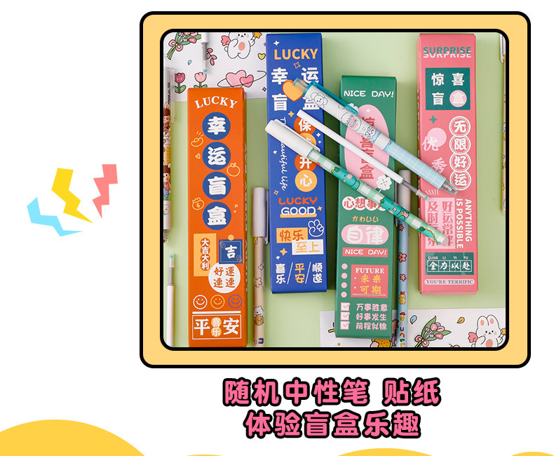 中性笔盲盒小学生文具套装奖品儿童黑色水笔励志文字按动签字笔