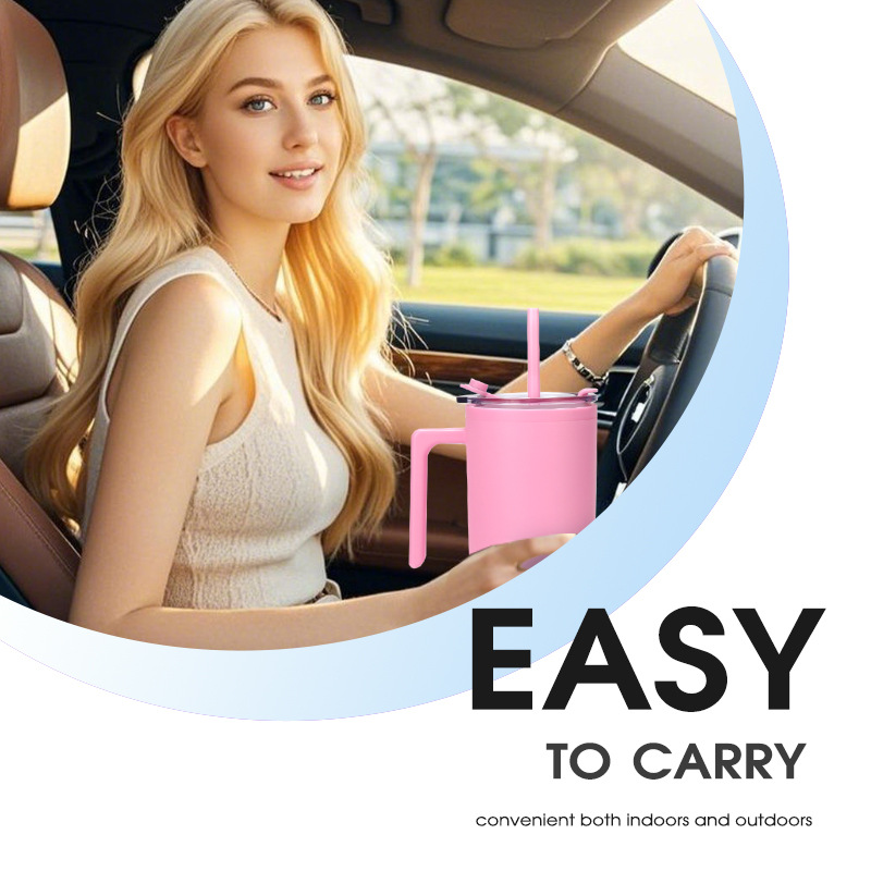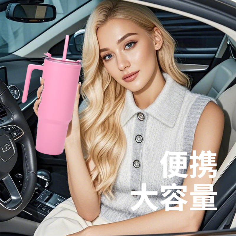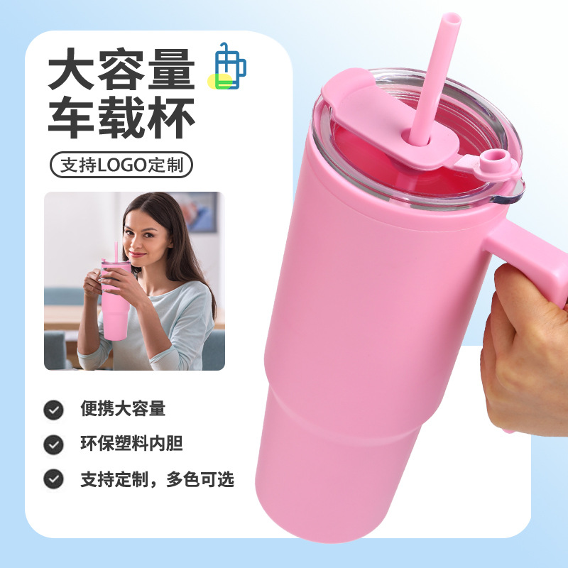 2025年新款跨境40oz车载汽车杯双层塑料pp杯水钻高颜值吸管杯批发