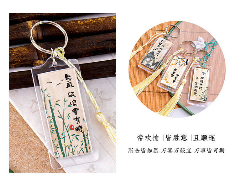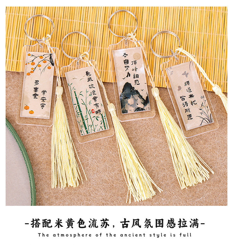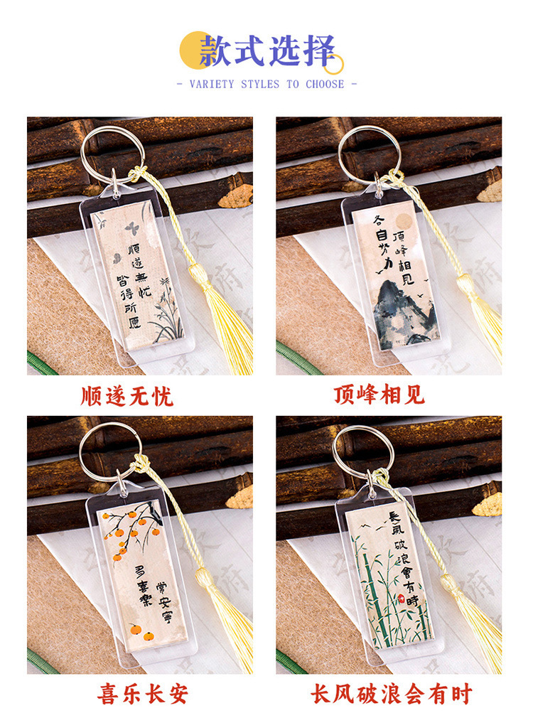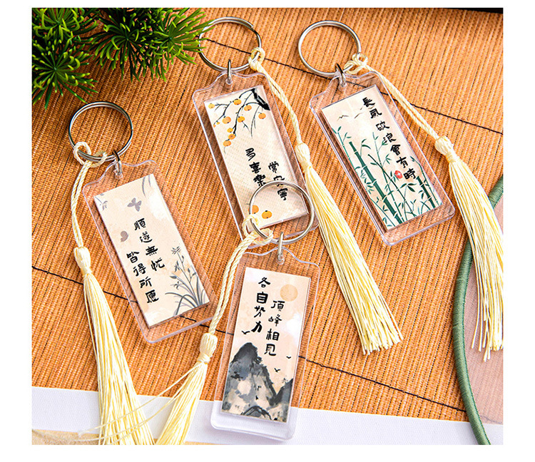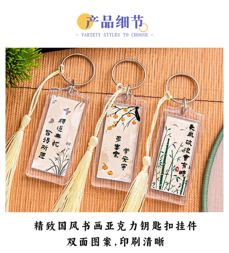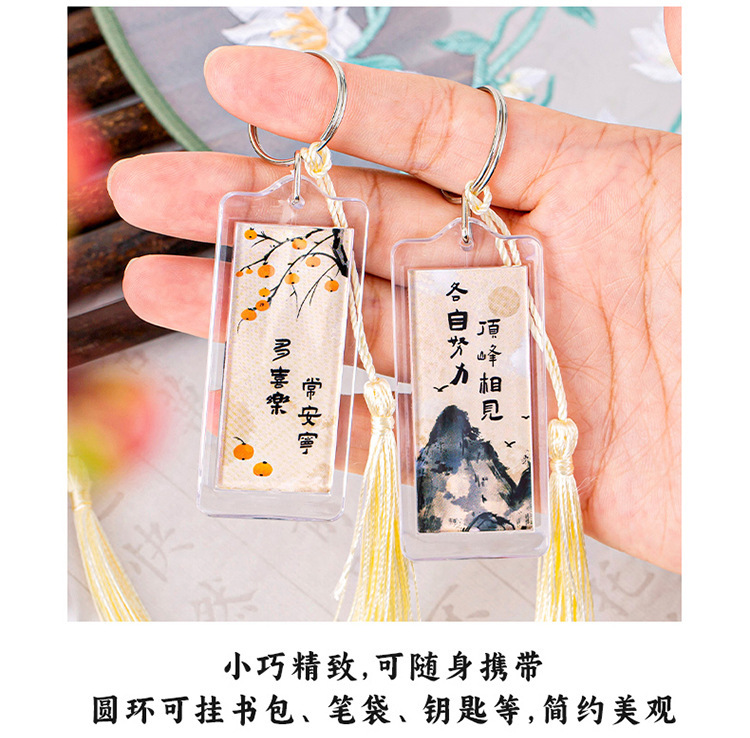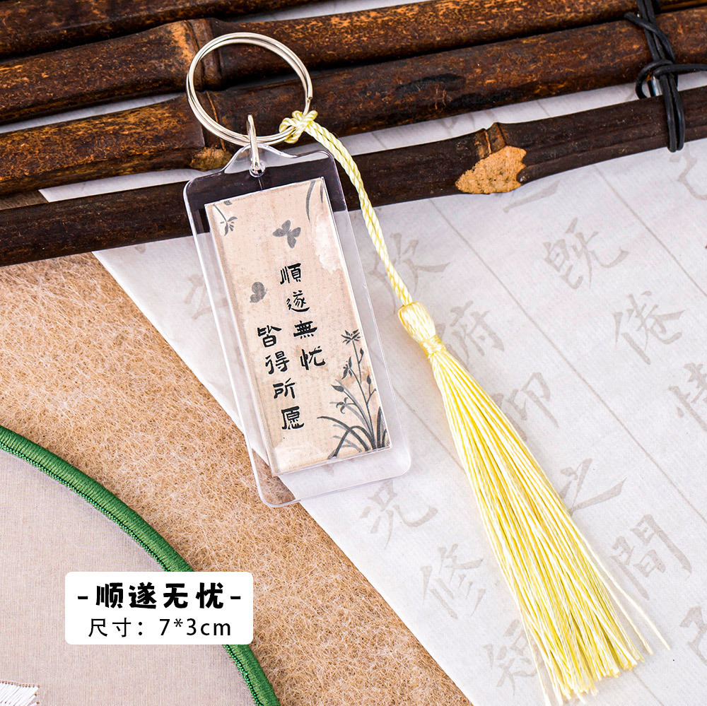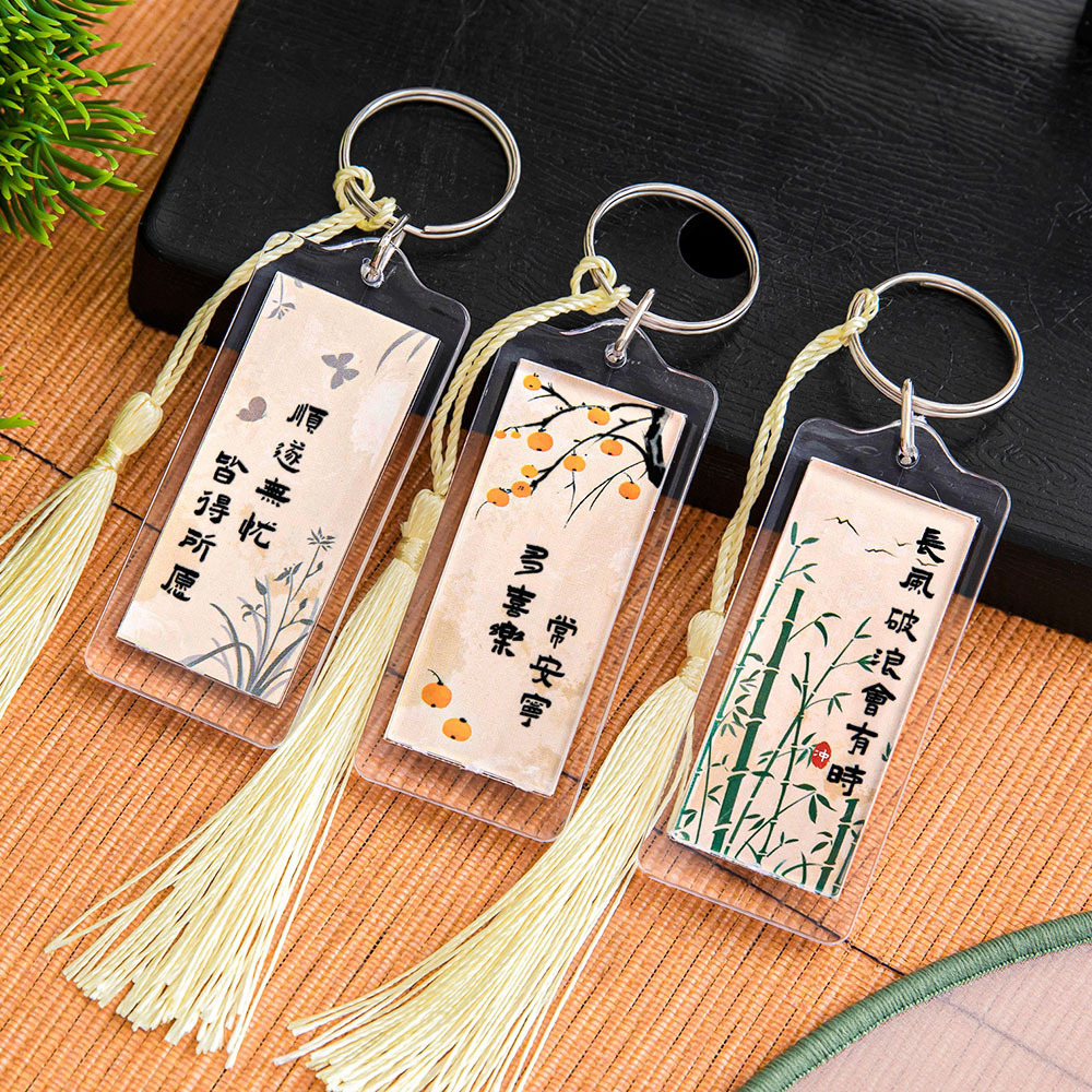 古风流苏钥匙扣挂件学生书法文字挂饰亚克力包包装饰挂件毕业礼品