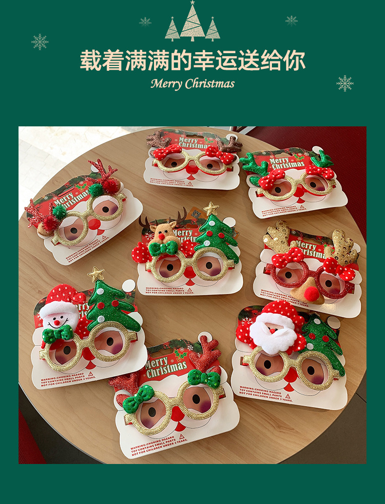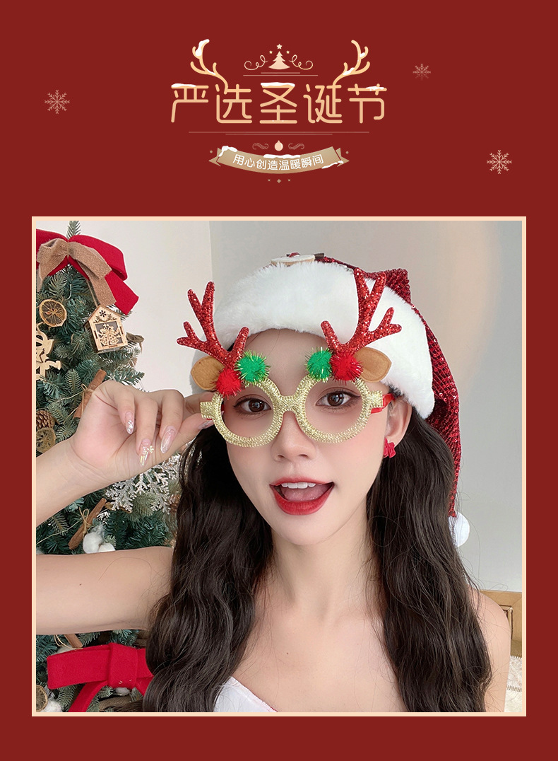 圣诞老人眼镜框批发派对装饰品麋鹿眼镜成人儿童节日装扮氛围道具