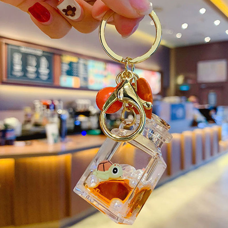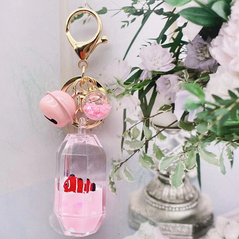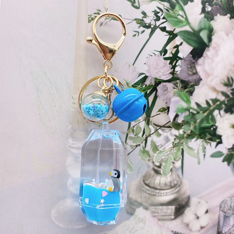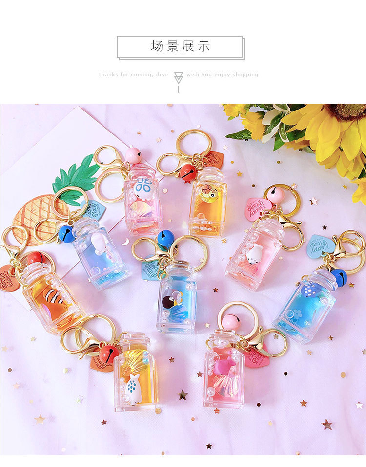 网红ins海洋流沙瓶亚克力钥匙扣可爱挂件精致漂浮瓶挂饰批发情侣