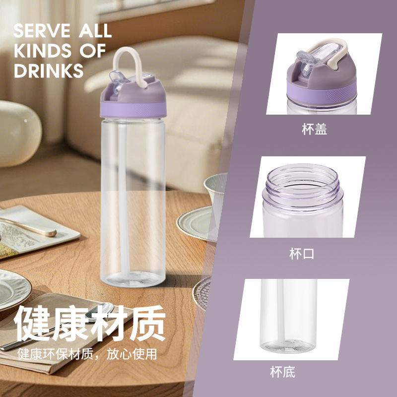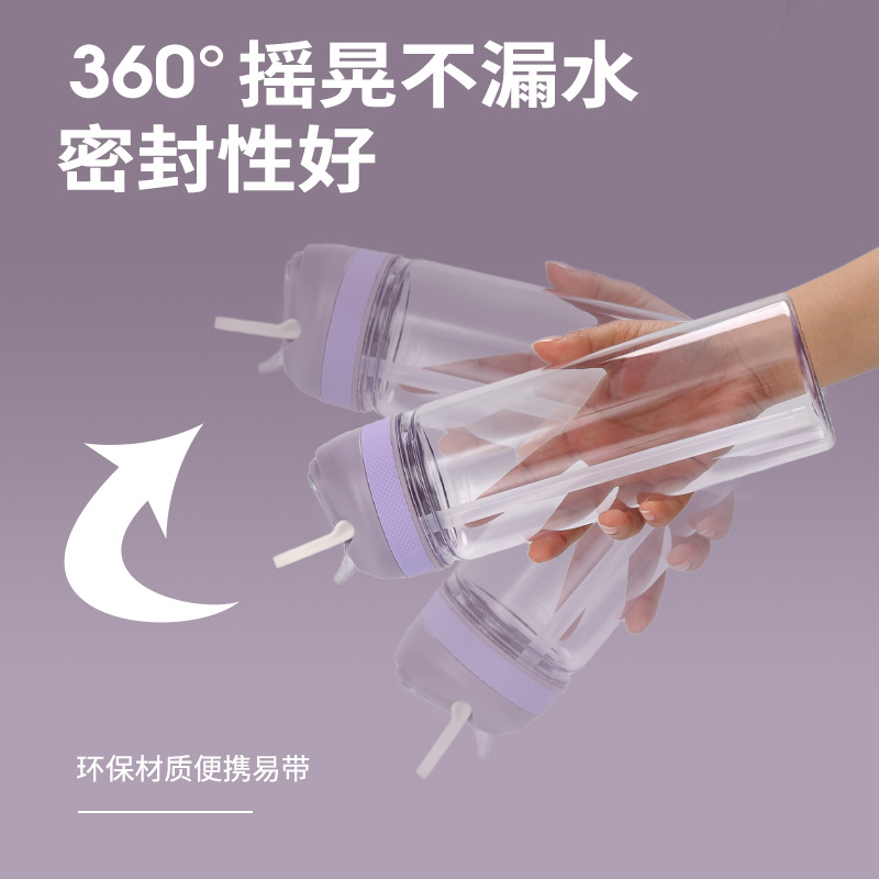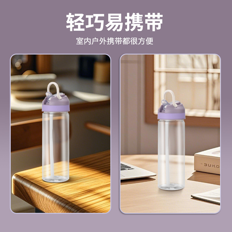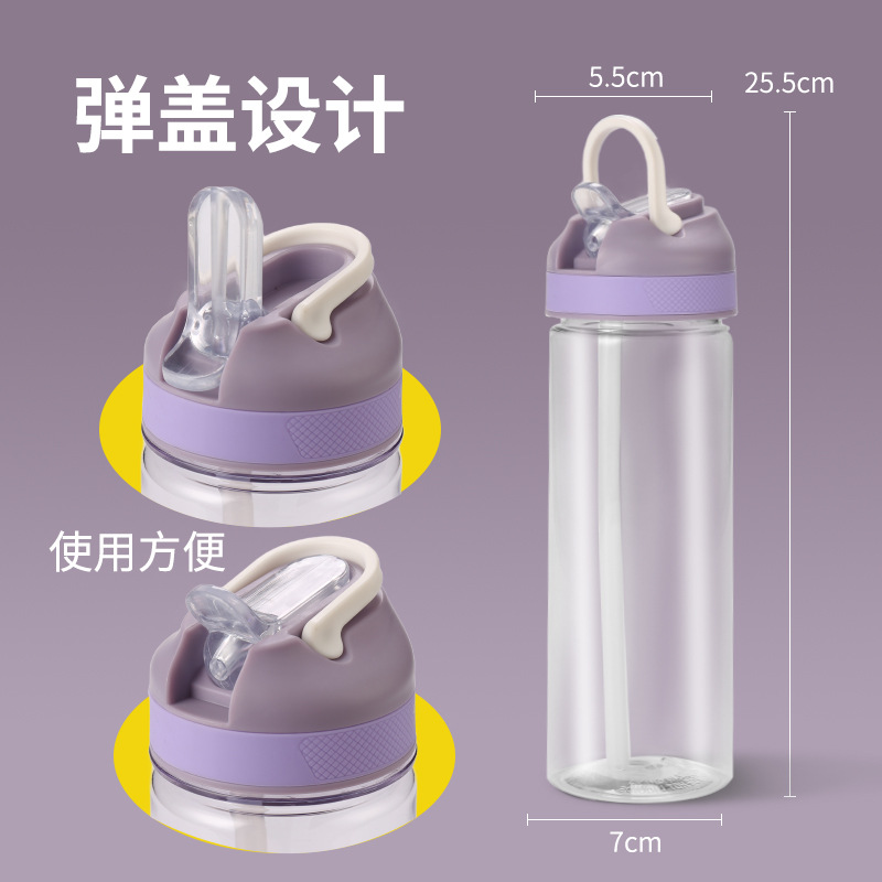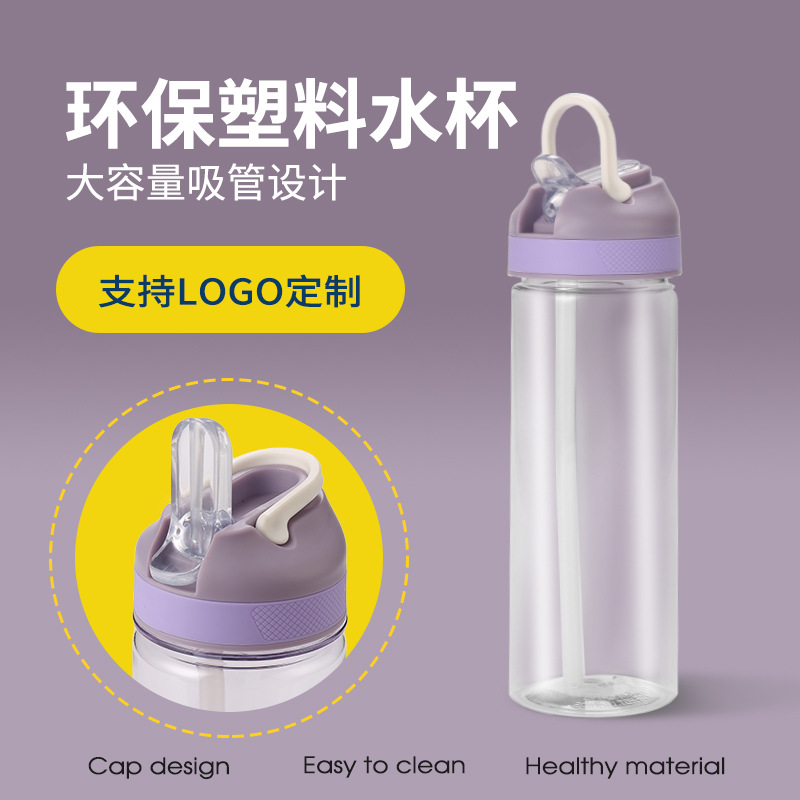 400毫升儿童塑料吸管杯带提手便携户外运动水壶PS太空杯子log批发