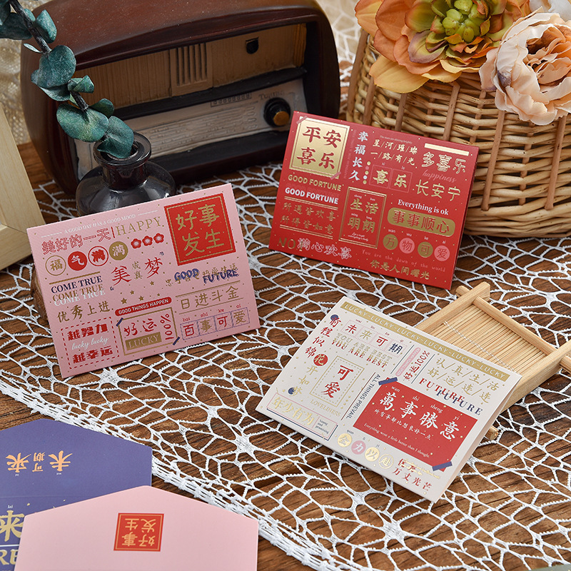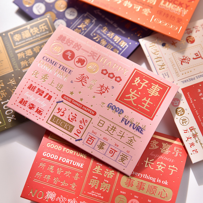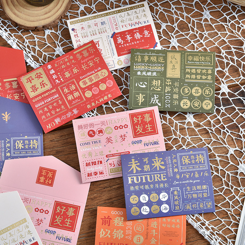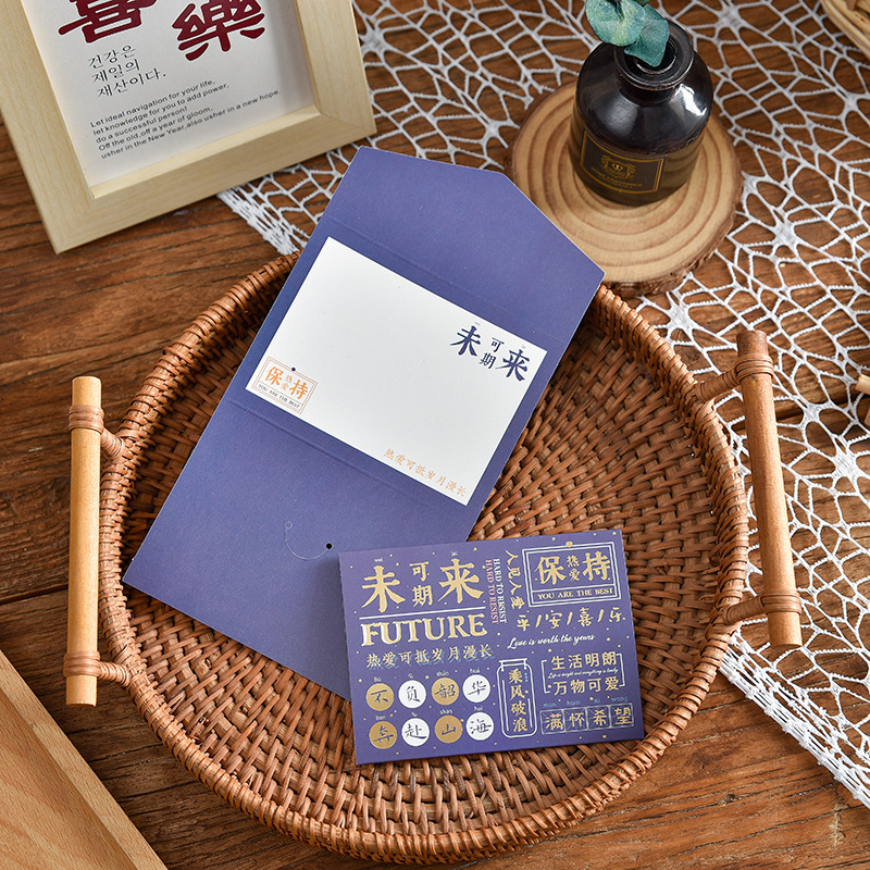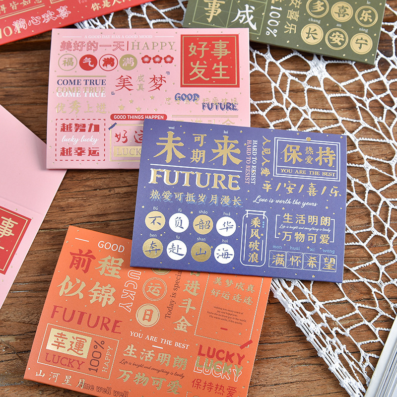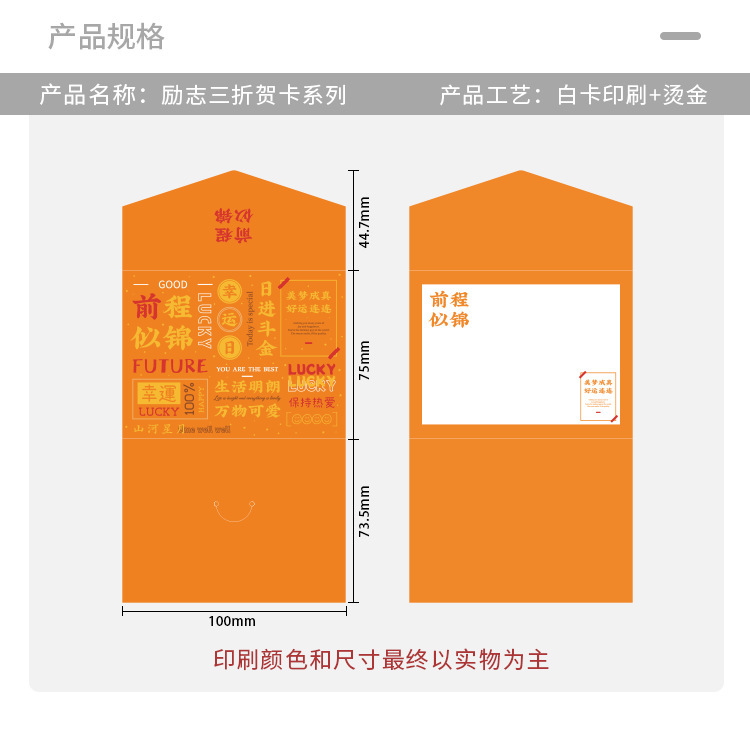 毕业季前程似锦贺卡三折信封式烫金卡节日祝福手写折叠留言卡现货