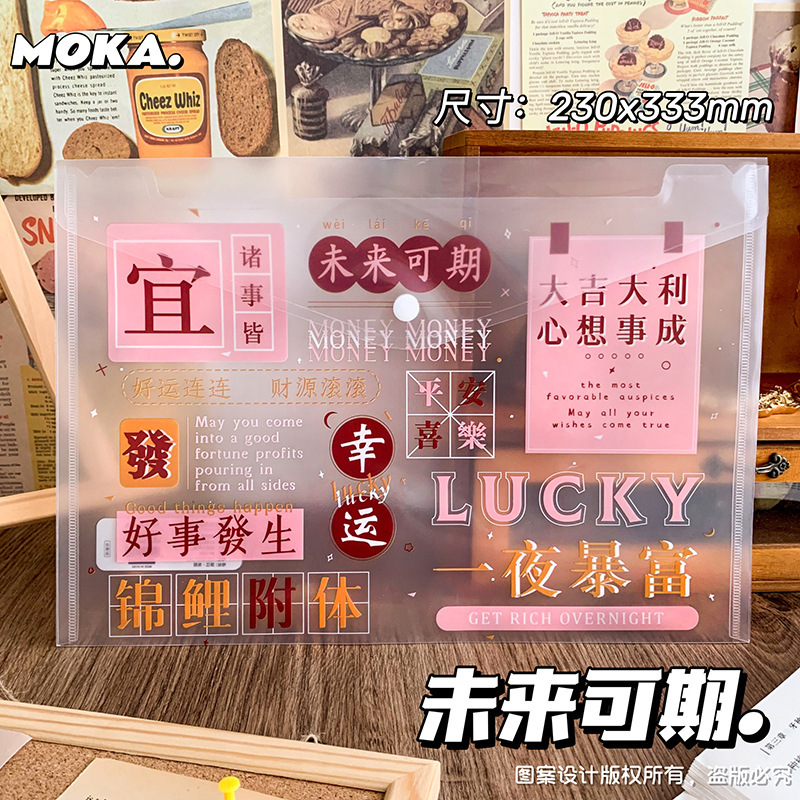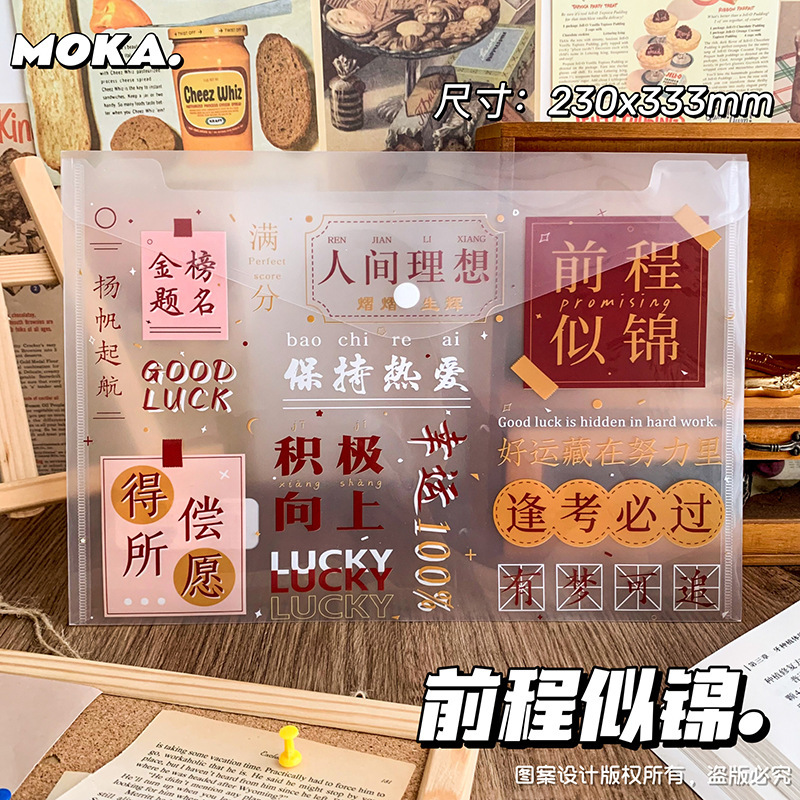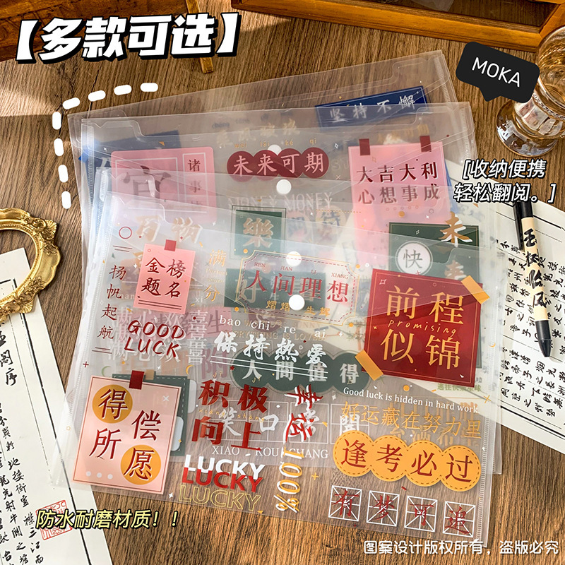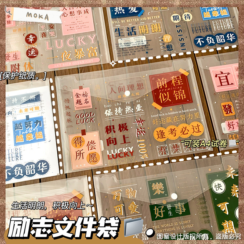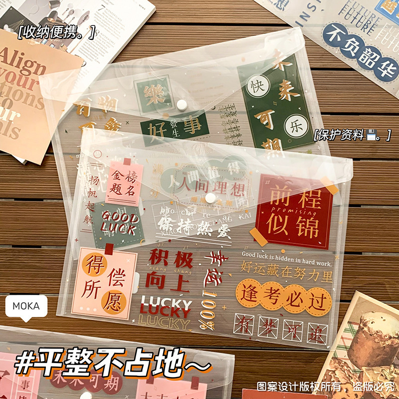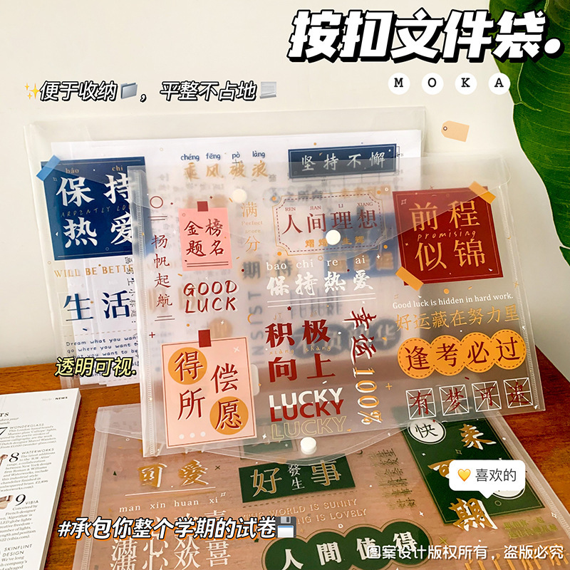 按扣大容量文件袋ins风文字控加厚试卷袋学生励志文字文具收纳袋
