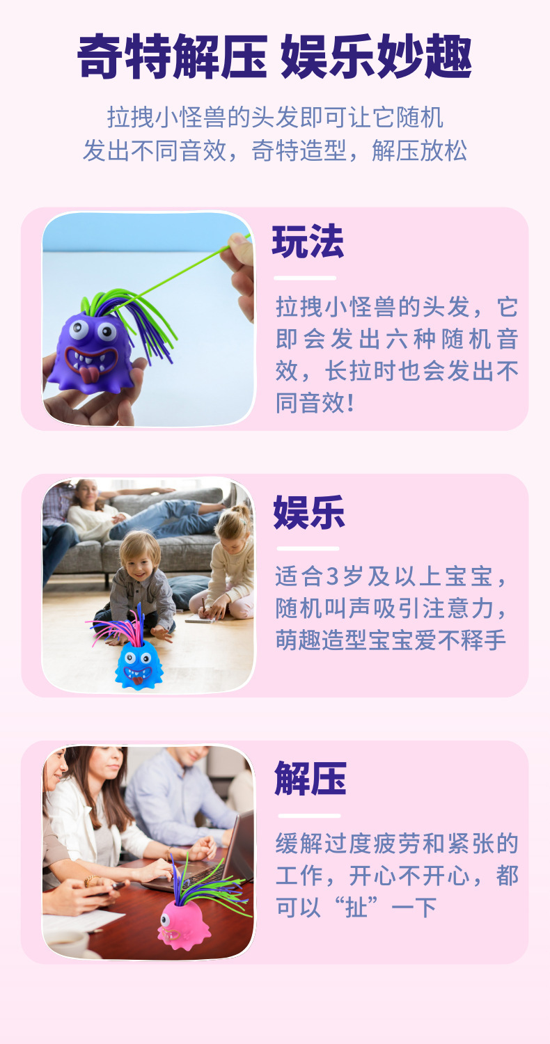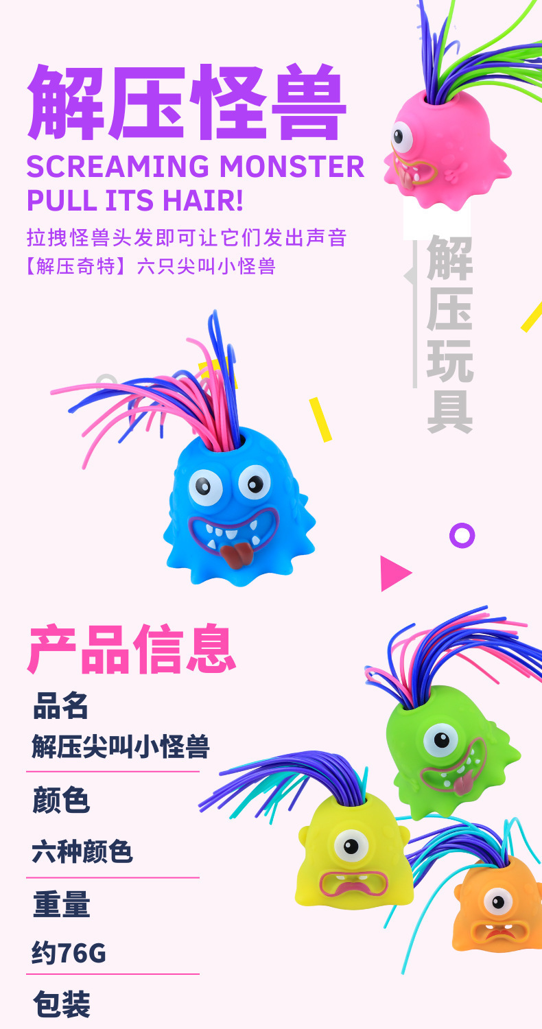 抖音爆款扯头发会叫小怪兽新奇特解压发泄儿童益智减压小玩具跨境